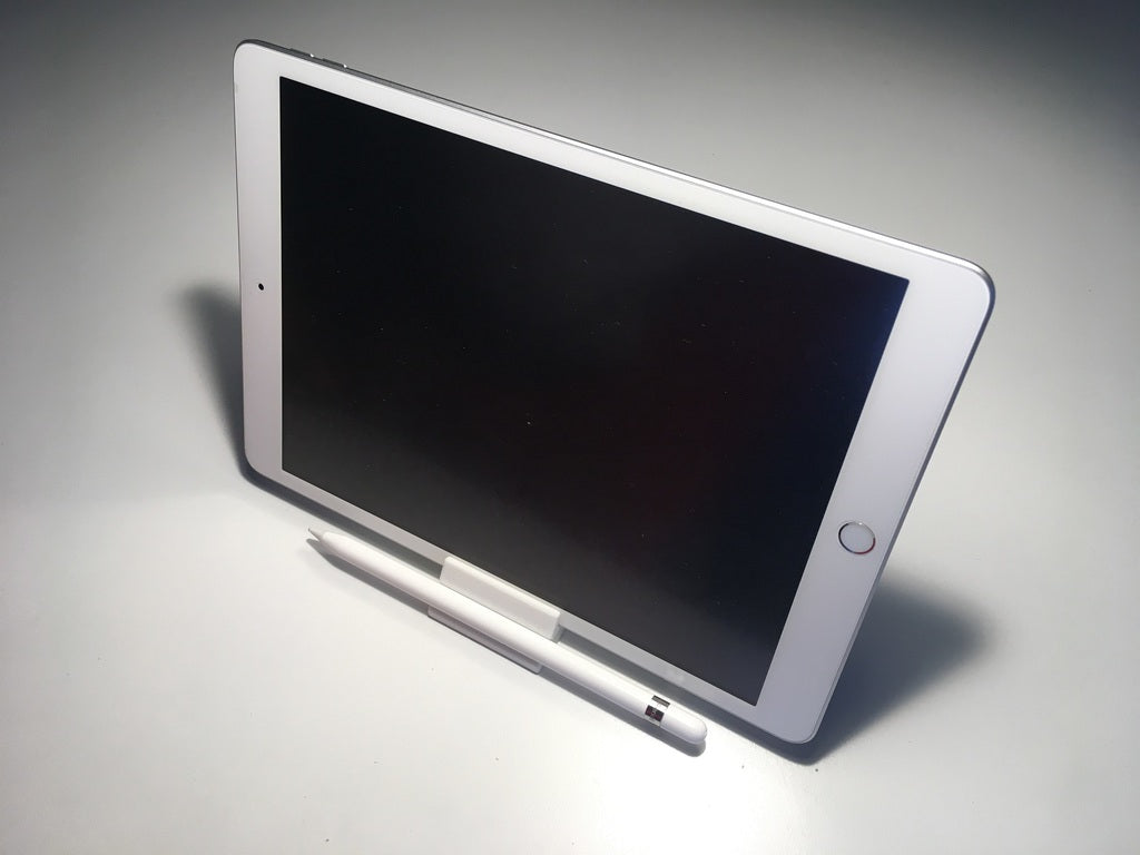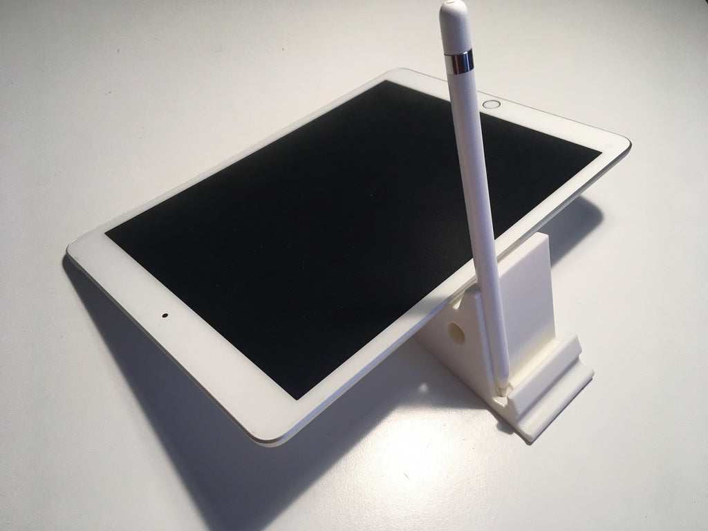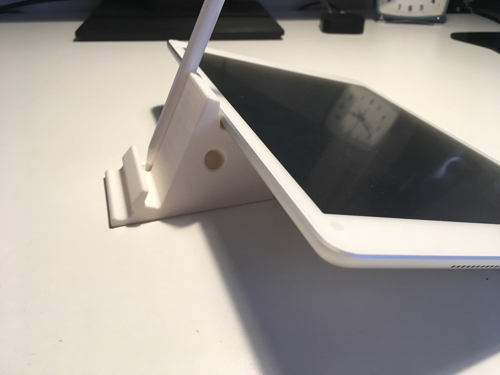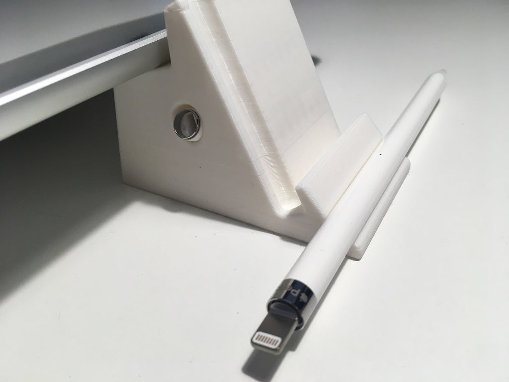 2-vejs iPad stativ med holder til Apple-blyant og dens hætte. Stativet kan holde din iPad i en komfortabel position for at se videoer, mens Apple-blyantsholderen holder din blyant og hætte organiseret og inden for rækkevidde.