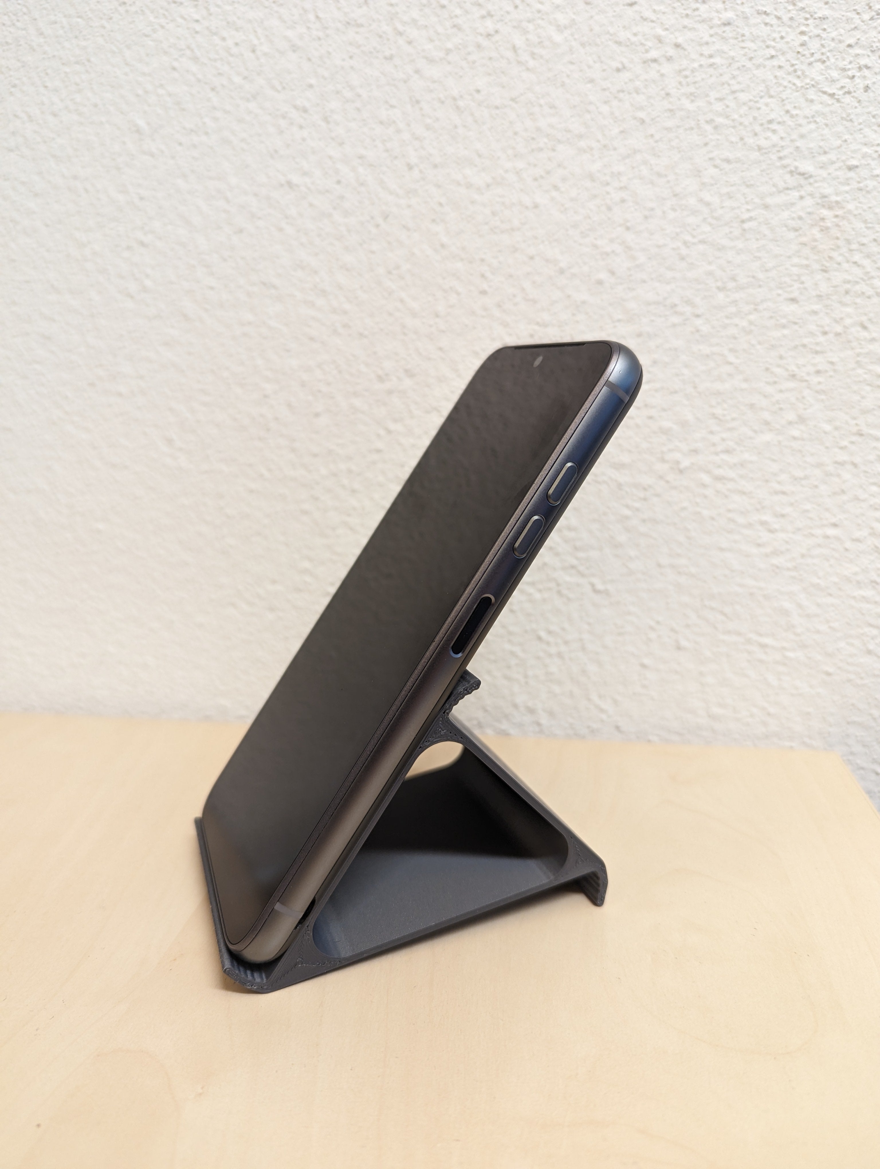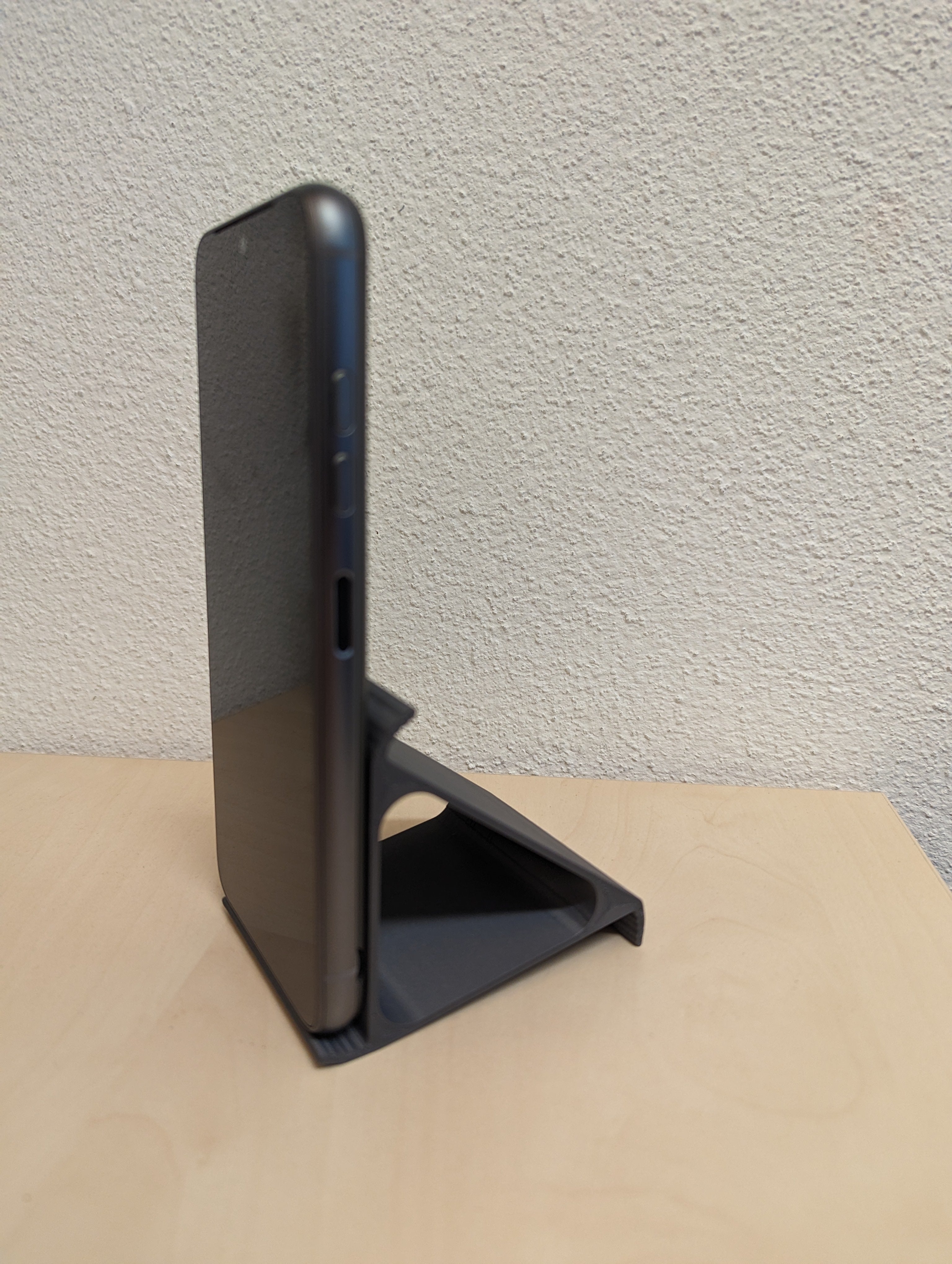 En 3-vinklet Smartphone Stand, der kan bruges på tre forskellige måder. Den første vinkel muliggør fotografering eller videooptagelse af genstande på en overflade. Den anden vinkel er perfekt til 1-til-1 videoforbindelser, eller for at tage fotos / videoer af højere ting på en overflade. Den tredje vinkel er ideel til gruppevideoforbindelser, eller til fotos/videos af objekter foran.