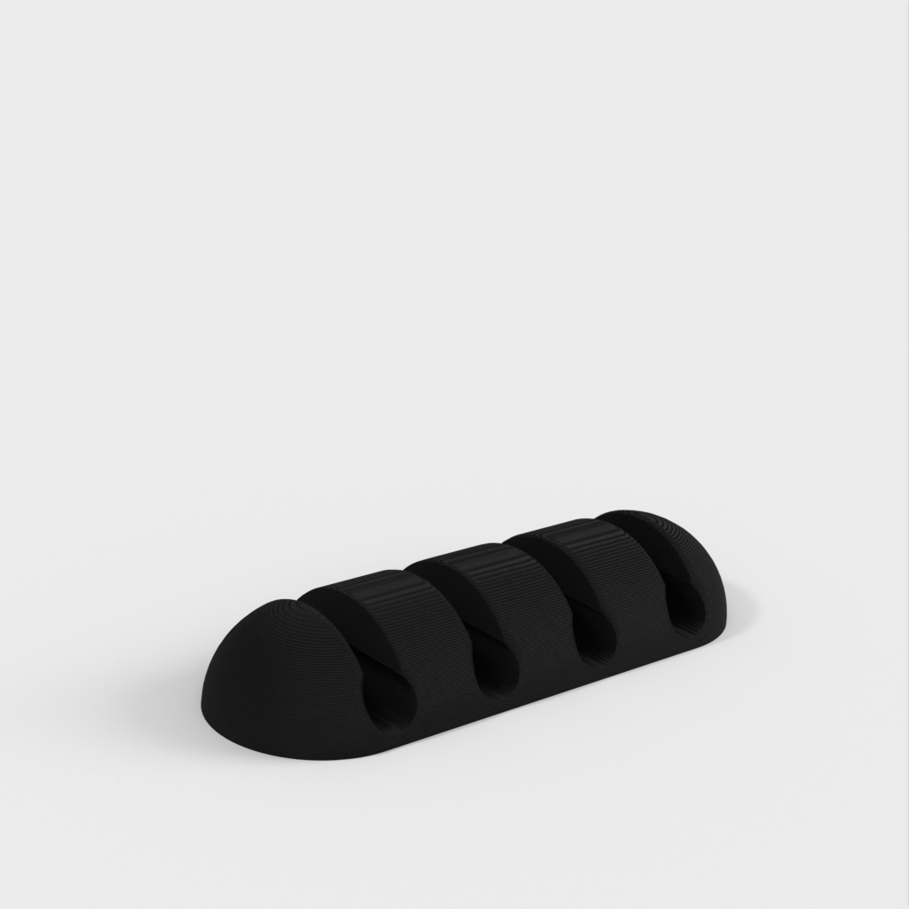 Dette er et sæt af 5mm kabelholdere, der er designet til at rumme en bred vifte af kabler, herunder tyndere HDMI-kabler og laptopopladere. Holderen giver mulighed for et organiseret og ryddeligt kabelforløb, da kabelholderne kommer i mindre versioner med forskellige antal rum for en skræddersyet kabelforvaltning.