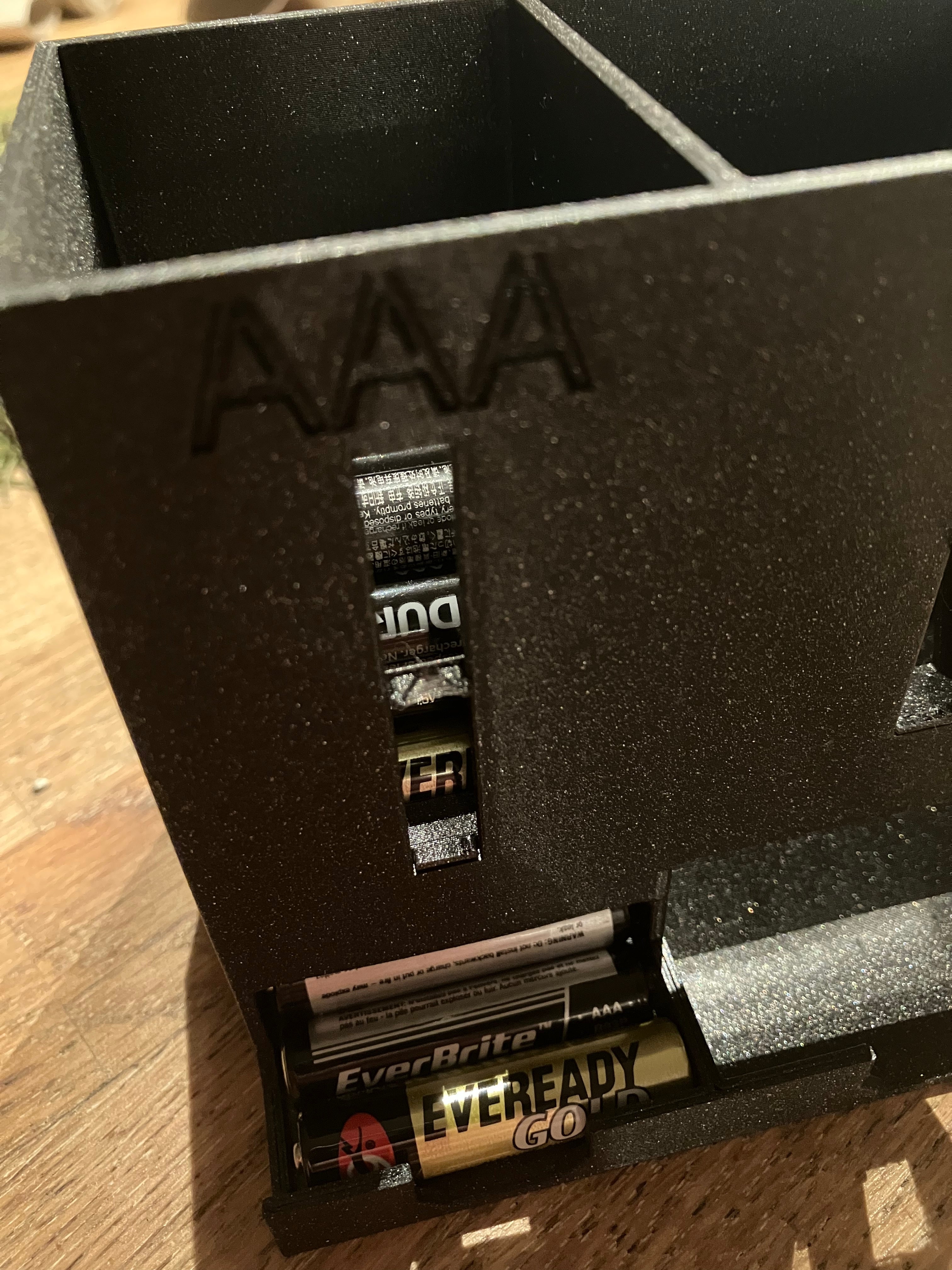 Dette er små indlæg, der passer i AA og AAA batteriholderen fremstillet af fafabienman. De forhindrer blokering af batterierne og forbedrer derved den oprindelige designs funktion. Du kan nemt klikke disse ind i de slots, der allerede er trykt.