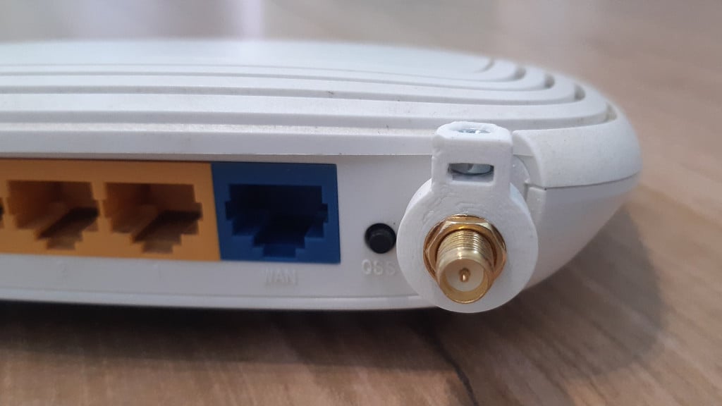 Dette er en holder til RP-SMA-stik til TP-Link-routere (TL-WR841N, TL-WR740N). Holderen bruges til at konvertere en router med fast antenne til en aftagelig antenne. Den er designet til at bruge en M2.5 konhovedsbolt for at skrue holderen fast.