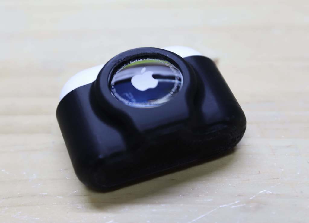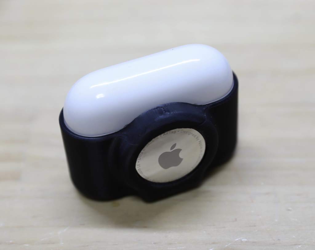 Etui til at fastgøre AirTags på AirPods Pro. Trådløs opladning er også mulig.