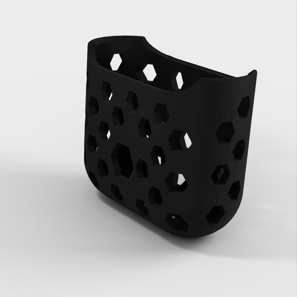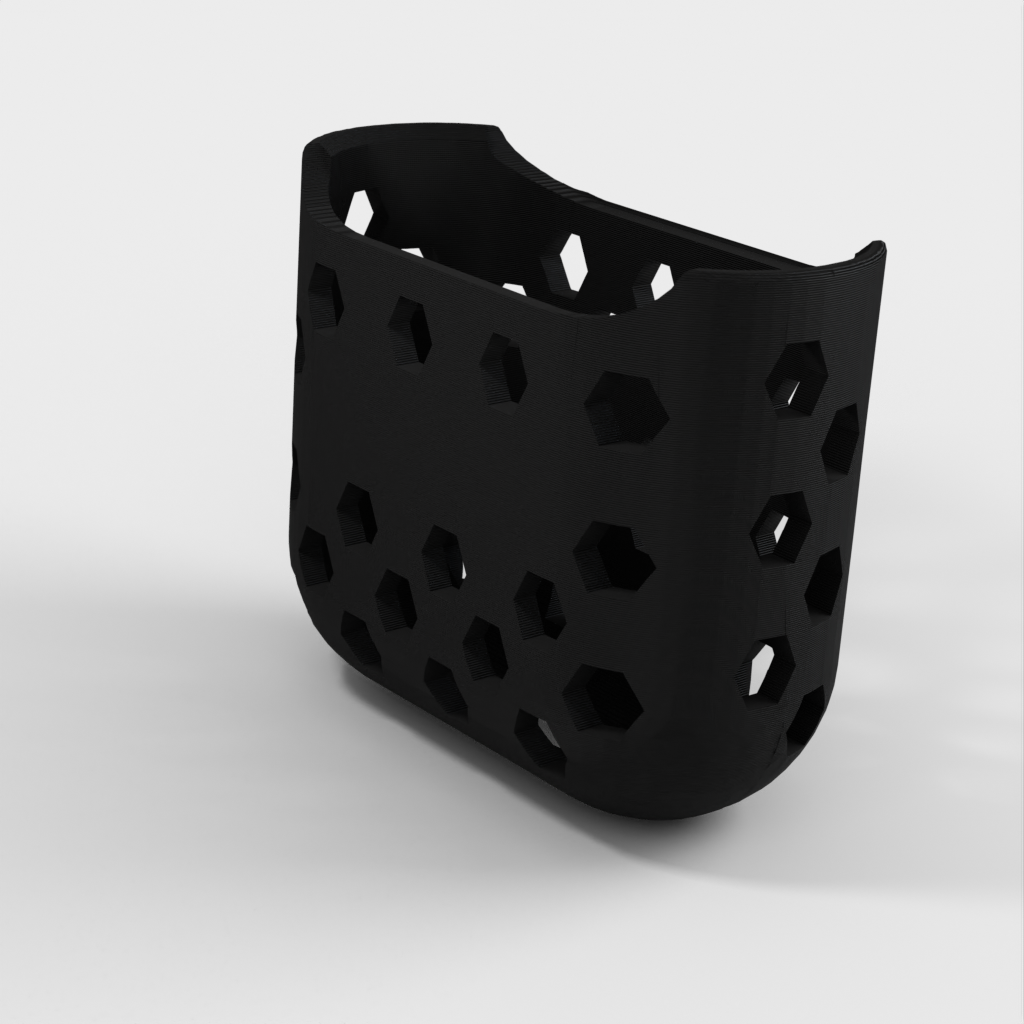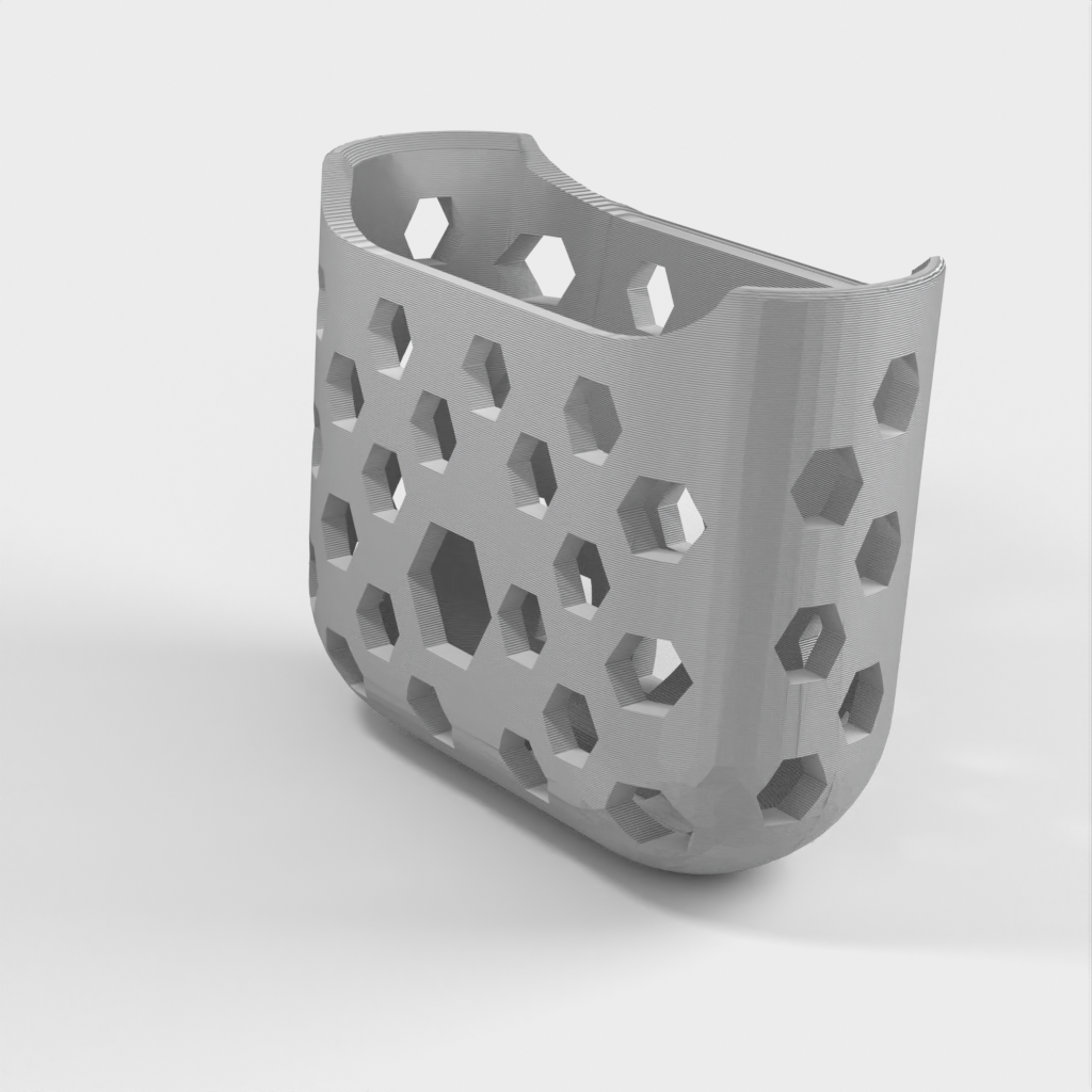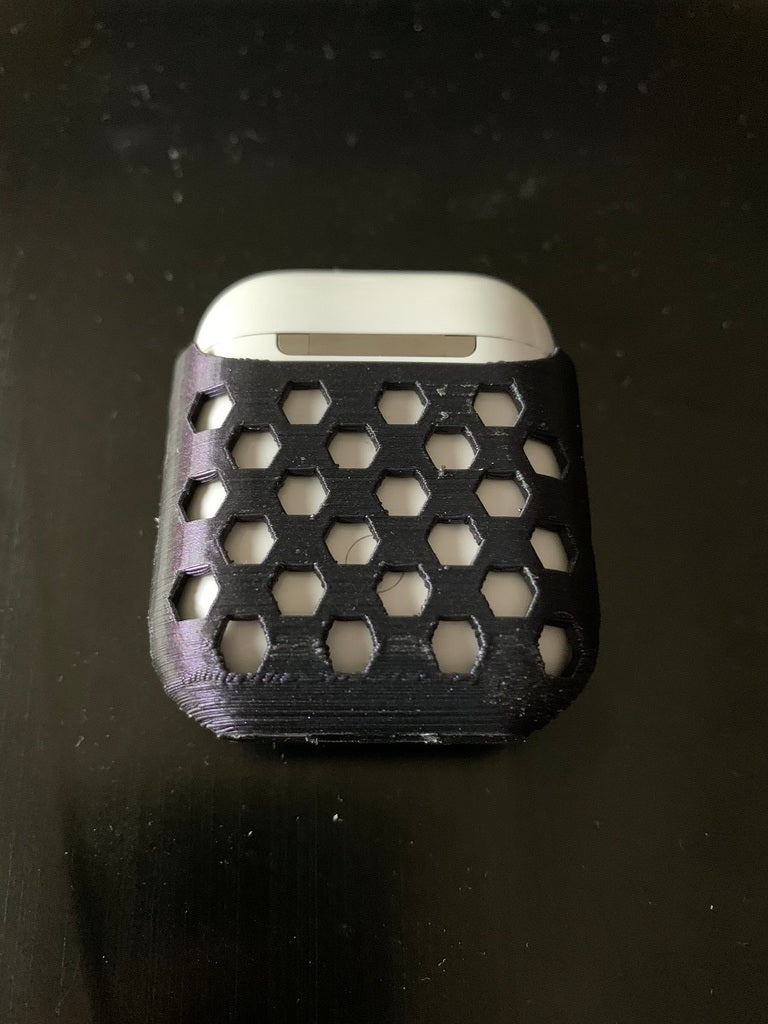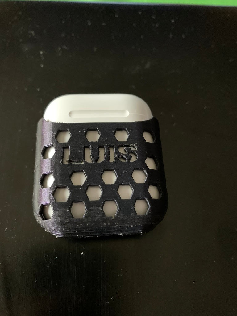 En Airpods v2 hexagon etui. Der findes to versioner af filen, med og uden et sted, hvor du kan indsætte dit navn.