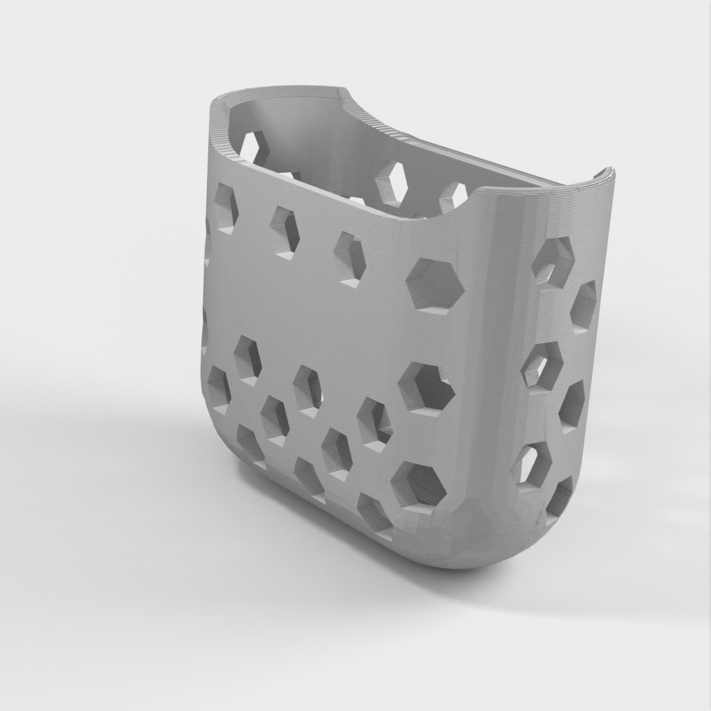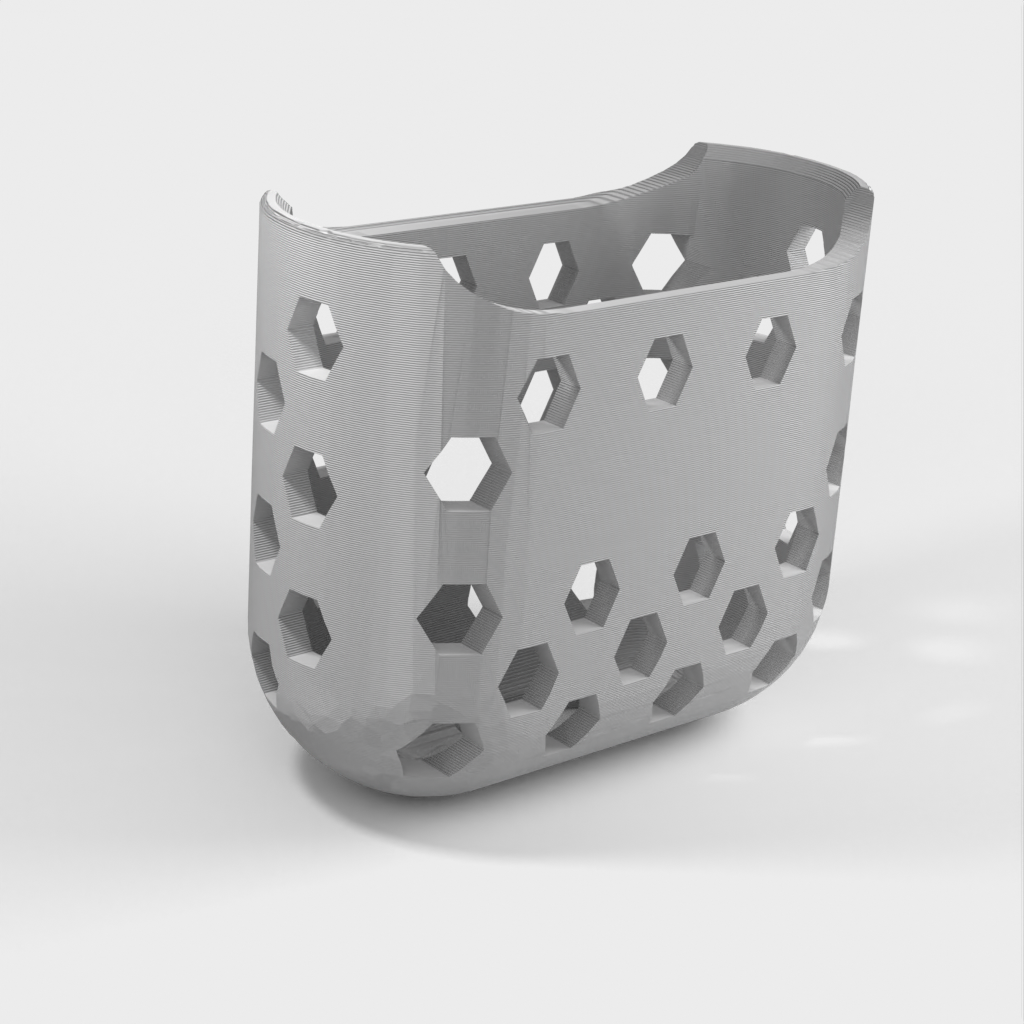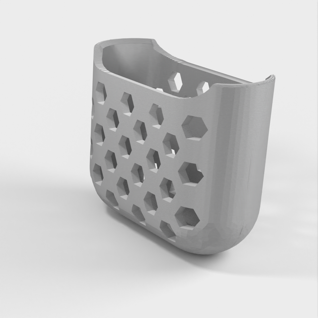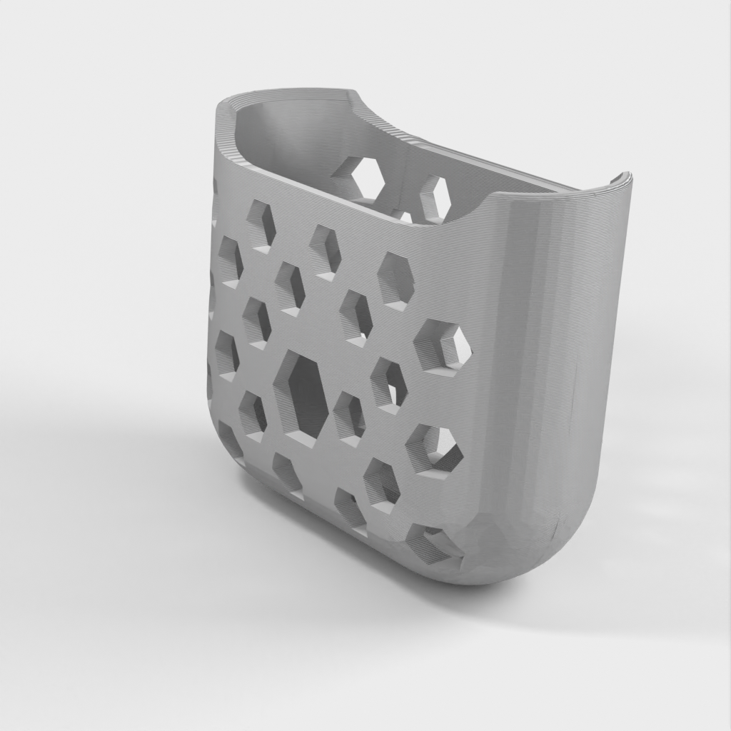 En Airpods v2 hexagon etui. Der findes to versioner af filen, med og uden et sted, hvor du kan indsætte dit navn.