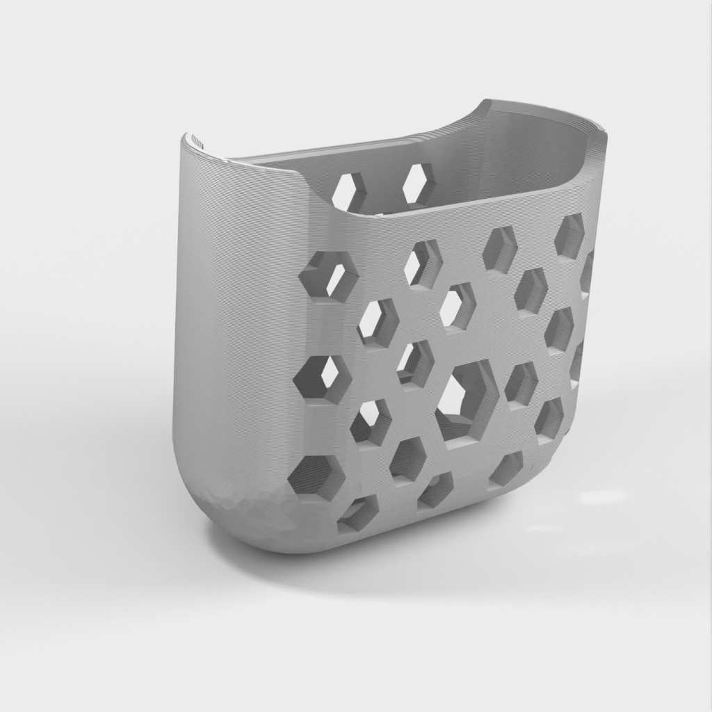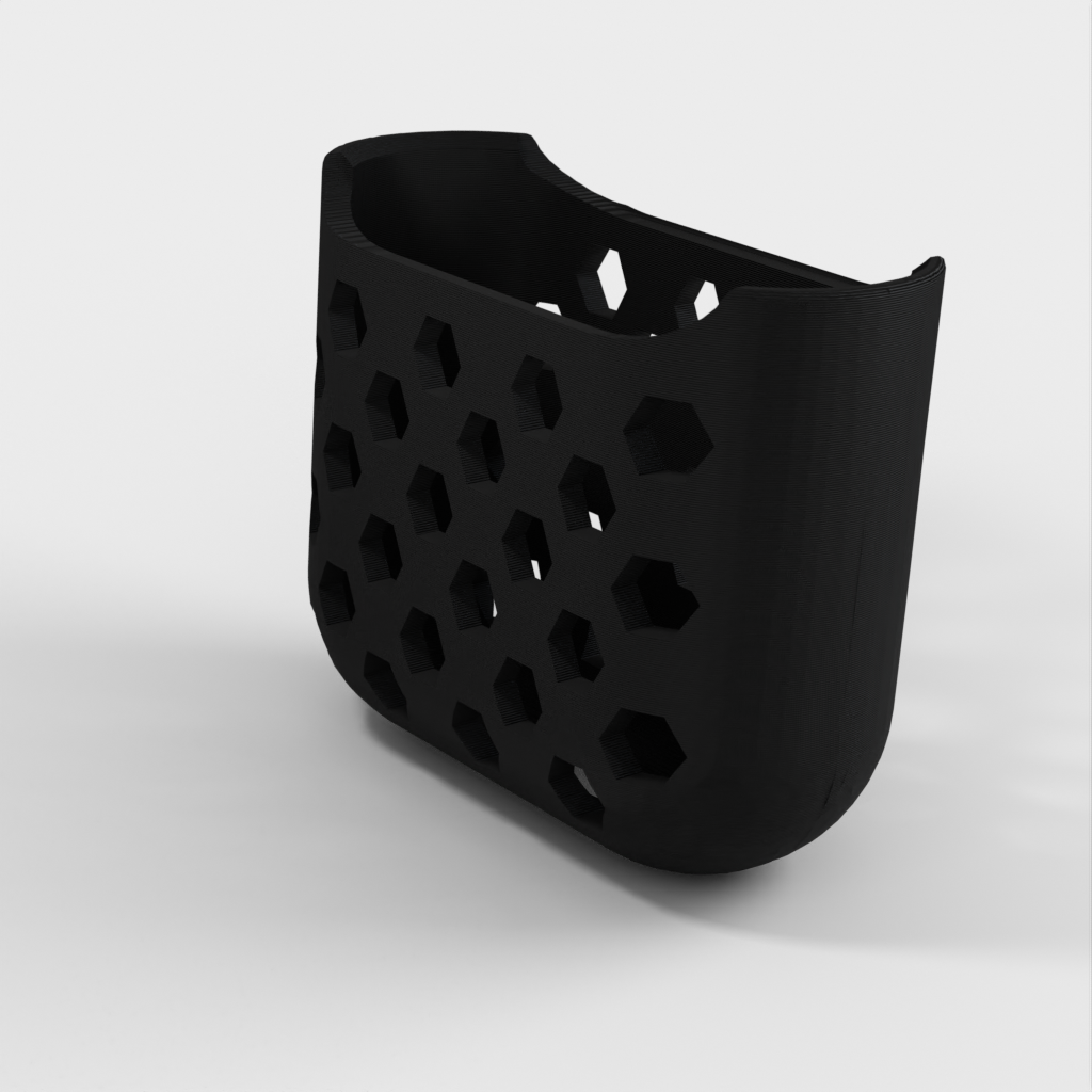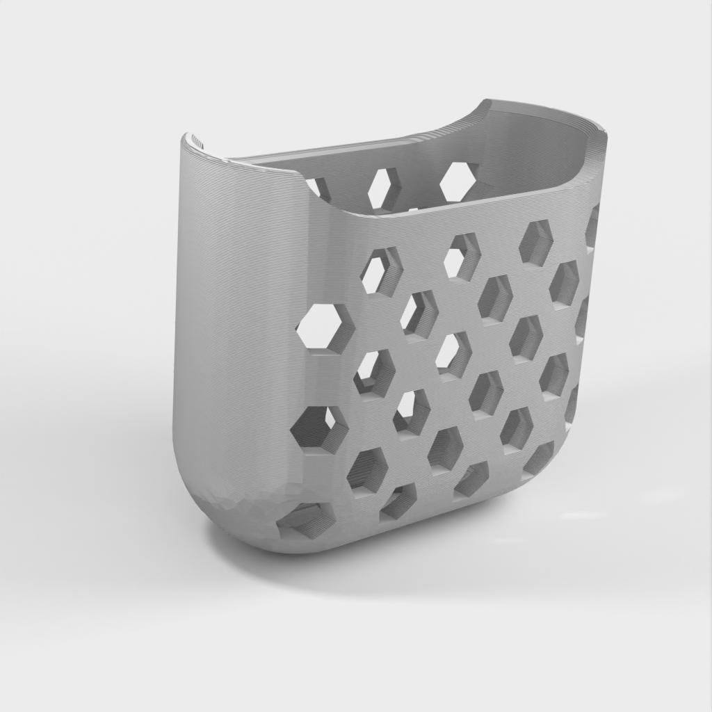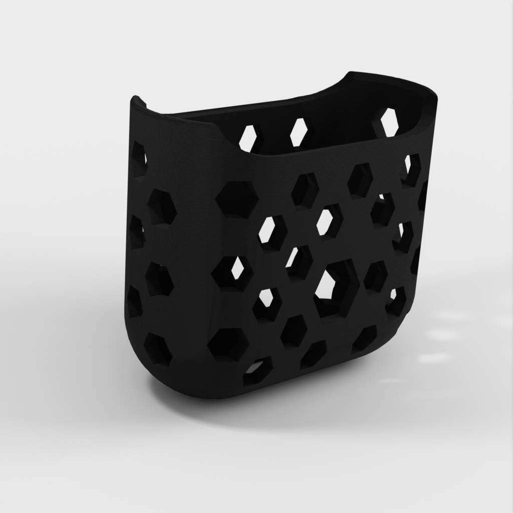 Rediger. Bag hexagon hul, der passer med Airpods' bagknap. Den første version trykker på knappen og nulstiller den.