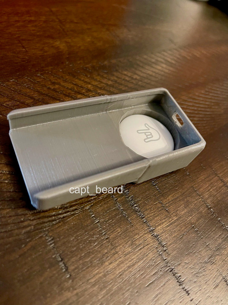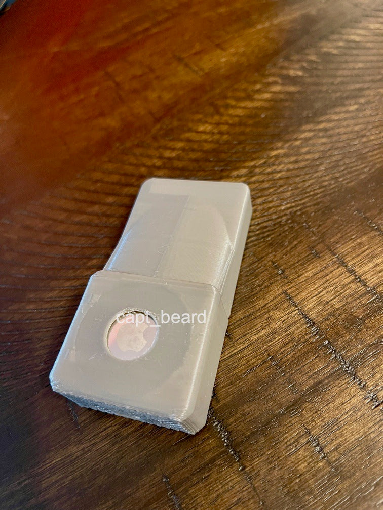 Apple TV Remote AirTag Case er en særligt designet AirTag-holder til den nye (2021) Siri Remote for Apple TV. AirTag passer perfekt ind i den runde del ved basen. Der er et hul på bagsiden for at let fjerne AirTag. Fjernbetjeningen glider ind og holdes på plads ved friktion.