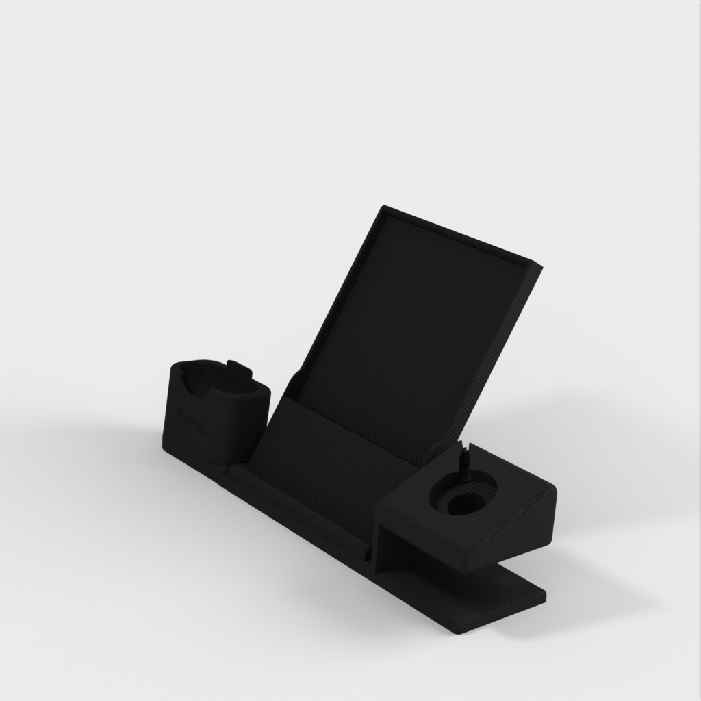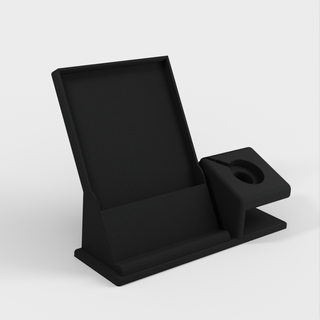 Urstøtten giver dig mulighed for altid at se tiden, mens din Apple Watch oplades, og gør det muligt at bruge uret som en alarm. Telefonholderen holder din smartphone oprejst, og basen til AirPods giver dig mulighed for nemt at oplade dine AirPods. Denne dock er designet til at være kompatibel med de fleste trådløse opladere.