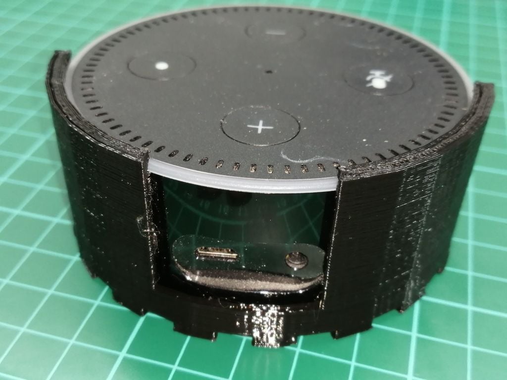 Amazon Echo Dot Version 2 vægholder er en enkel og elegant løsning til at montere din Echo Dot på væggen. Den er designet til at holde Echo Dot på plads med let friktion og en forreste læbe. Den har huller på bagsiden for ophængning med en skrue. På bagsiden er der også luft-/lydventiler, som sikrer en ren lydkvalitet. Med en åbning nederst kan kablerne organiseres pænt og uden rod.