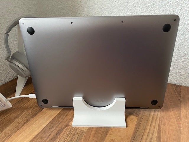 Dette er en skrivebordsstander til MacBook Pro 13" M1. Passer til alle MacBooks med en maksimal tykkelse på 16mm. Den er perfekt til at organiserede dit skrivebord, og give din MacBook en sikker og stabil plads, når den ikke er i brug.