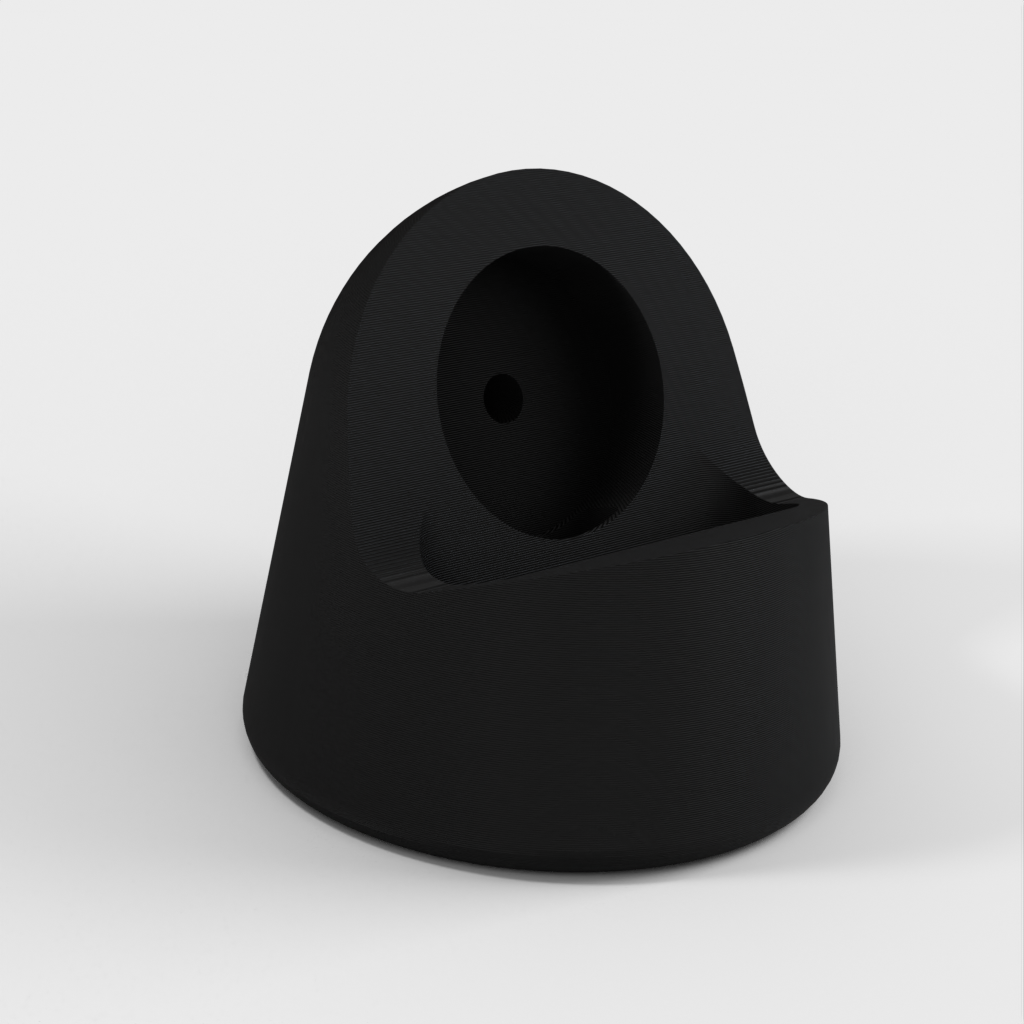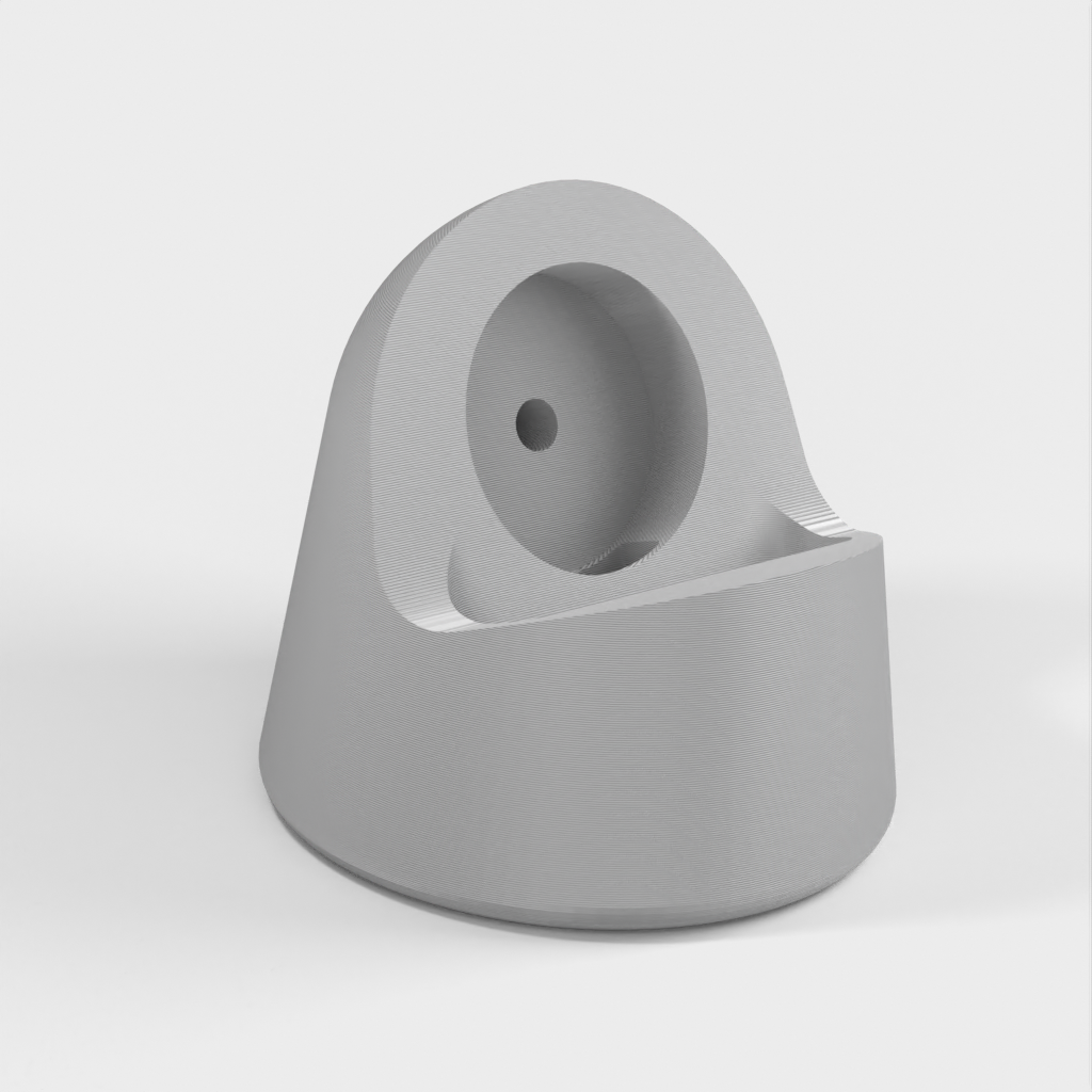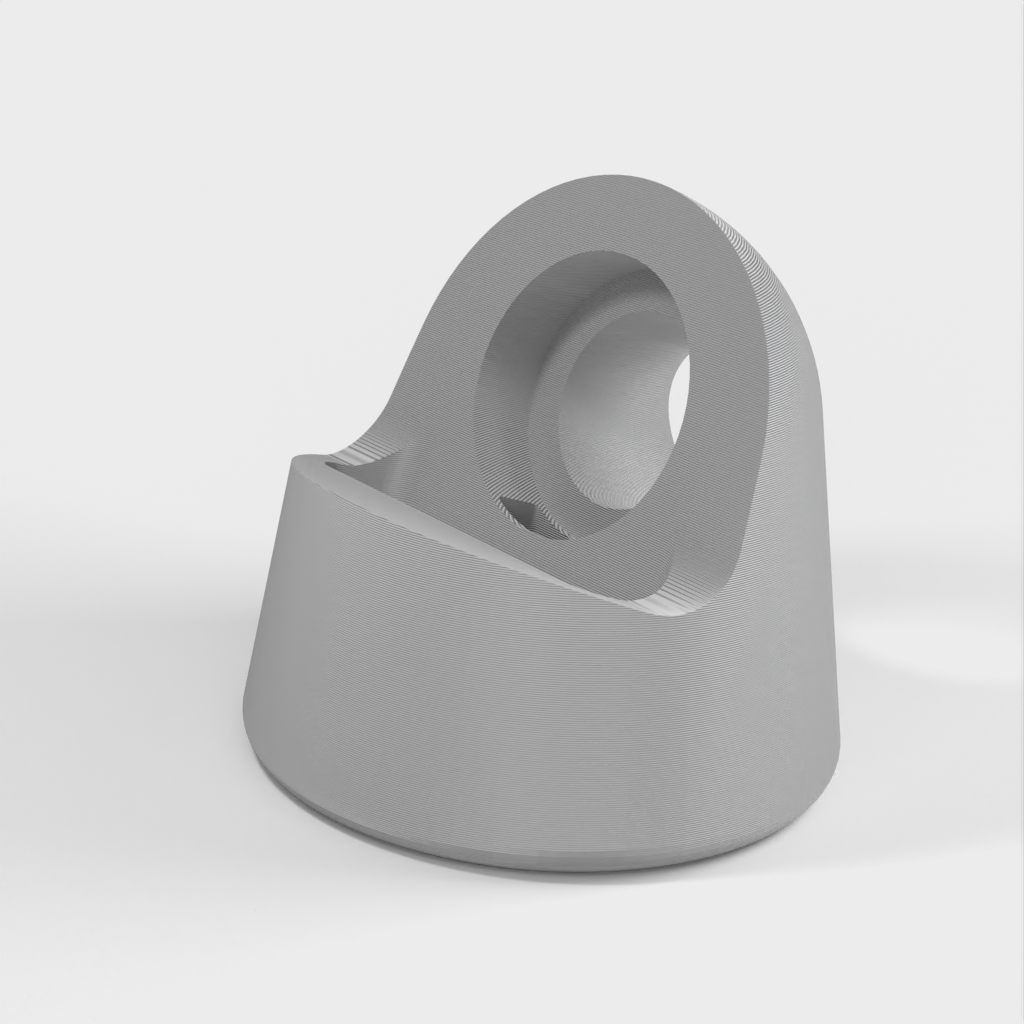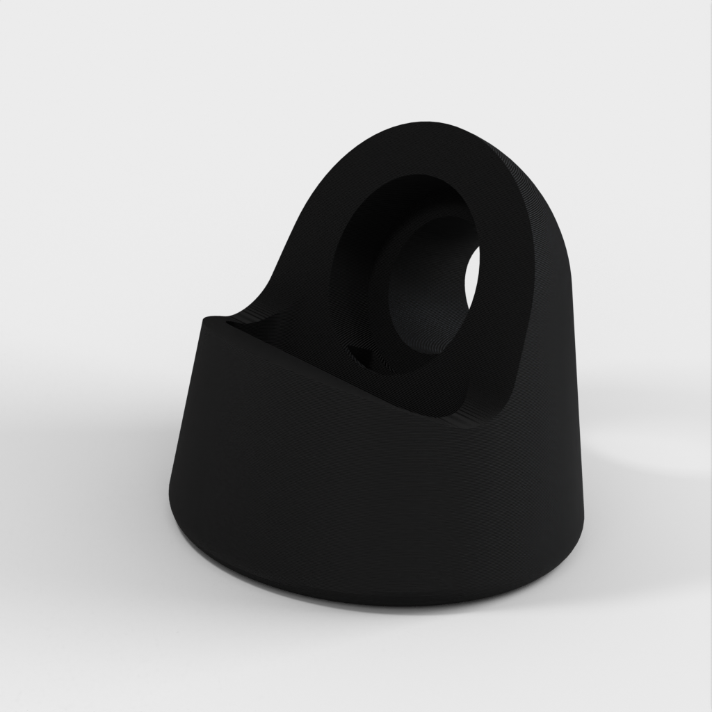 Dette er en dock til opladning af dit Apple Watch. Den er konstrueret således, at hovedkurven er lidt off tangent, og opladercylinderen er 0,5 mm større for at tillade en løsere pasform. Docken har kun en enkelt kabelkanal, der er U-formet i stedet for tre fjerdedele rund. Derudover er der et 5mm hul i bagsiden, så du nemt kan fjerne opladeren. Der er også tilføjet en version med en dybere kabelkanal og et 20mm baghul baseret på feedback. "Big USB"-versionen passer til Apple Watch version 6-kabler.