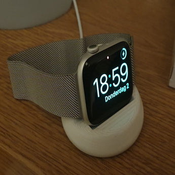 Denne enkle opladningsstander er designet til at give dit Apple Watch et fast og sikkert sted under opladning. Standen holder dit ur i en optimal vinkel, så du nemt kan se skærmen, mens det oplader. Med sit minimalistiske design passer oplader docken diskret ind i ethvert rum, hvad enten det er på natbordet eller skrivebordet. Det er en praktisk og stilfuld opløsning for at holde dit Apple Watch organiseret og klar til brug.