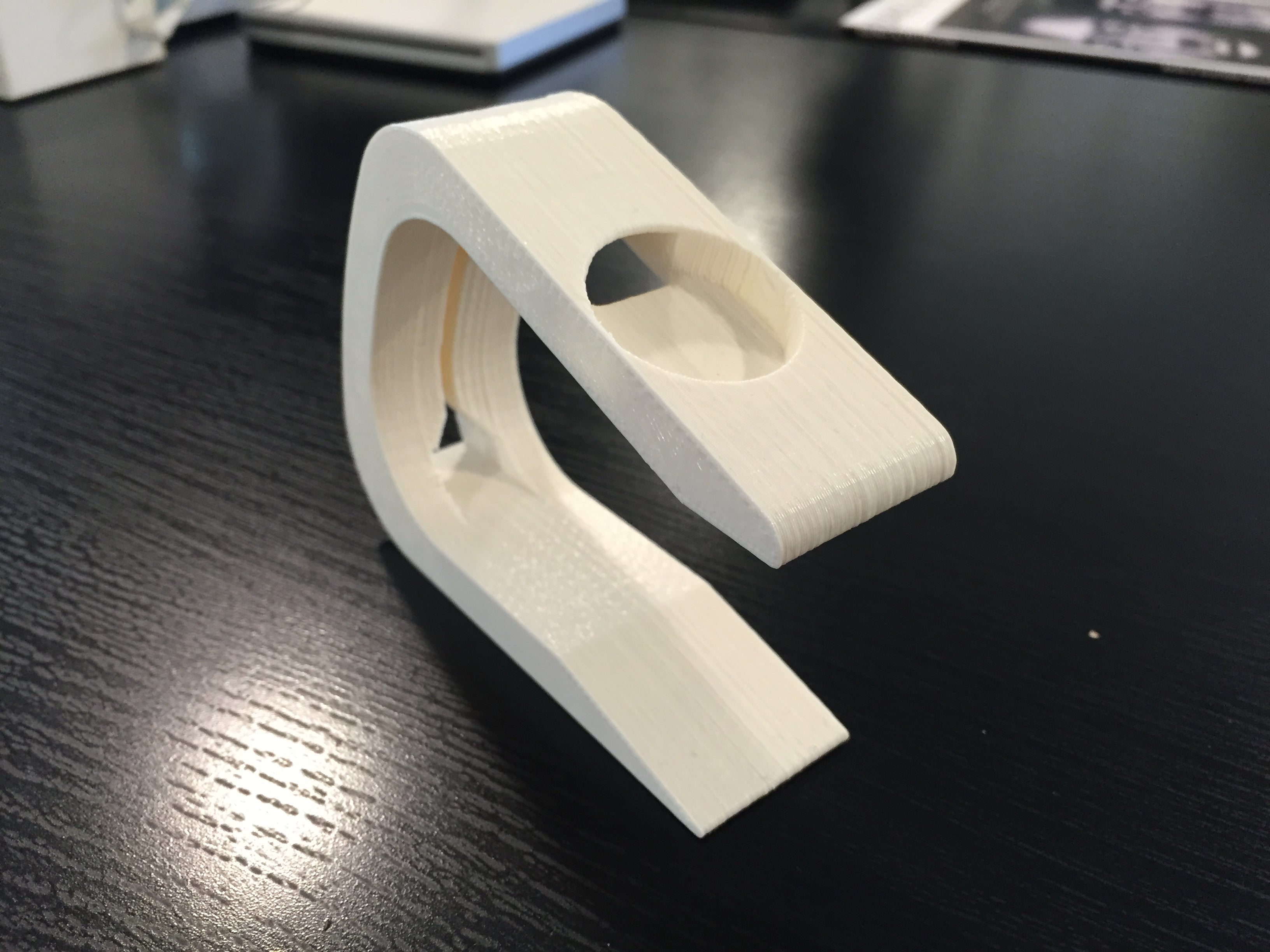 En simpel opladningsstand til Apple Watch, der passer til den magnetiske oplader og pænt gemmer USB-kablet væk. Der er en lomme i bunden, hvis du ønsker at veje det ned med nogle blyskud eller fastgøre en magnet.