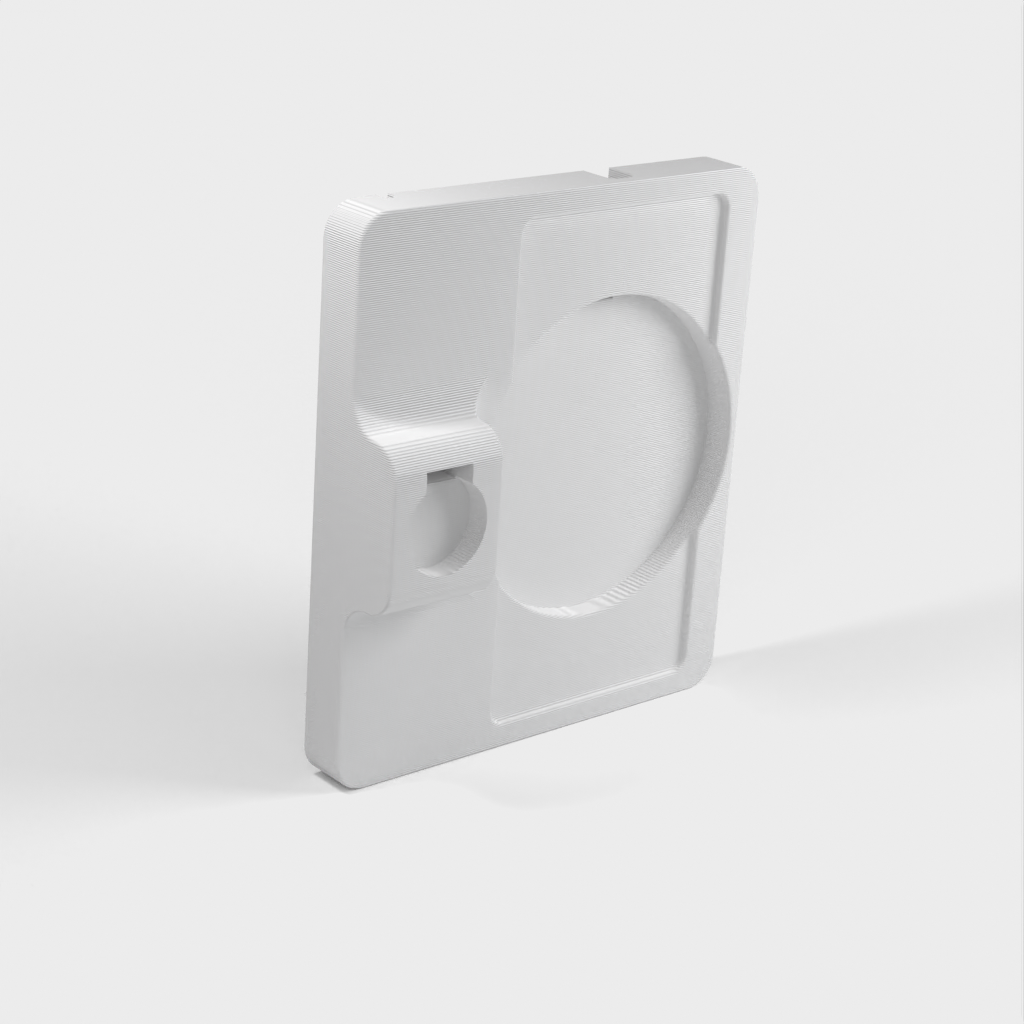Dette produkt kan bruges som en dockingstation til Apple Watch oplader, kombineret med en Qi trådløs oplader. Den understøtter opladere med en diamenter på op til 100mm, og er udstyret med indbyggede kabelguides. Skal printes med støtte på grund af overhæng i kabelguideområdet.