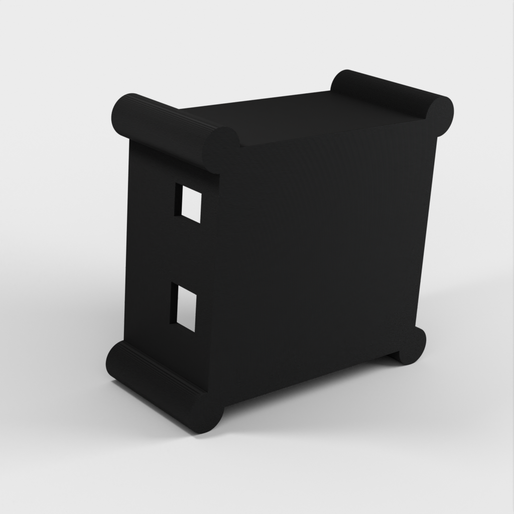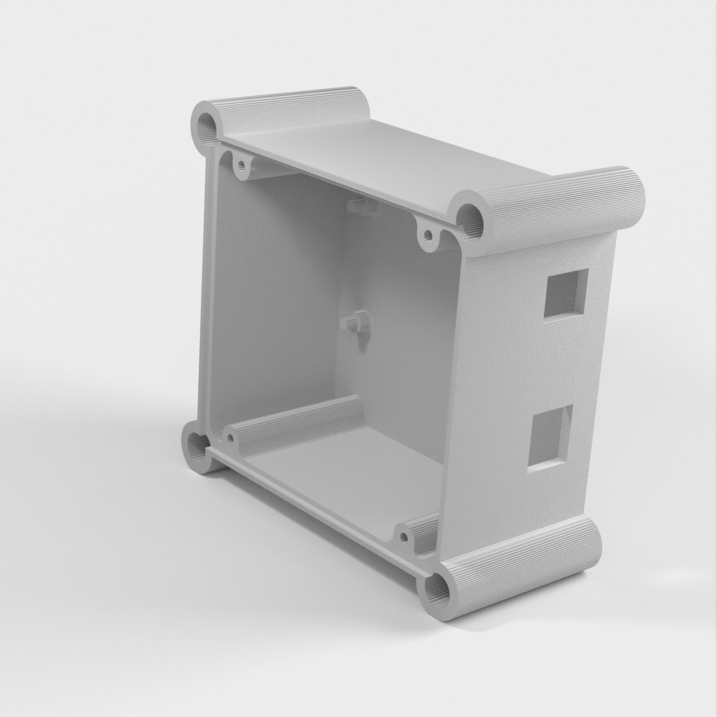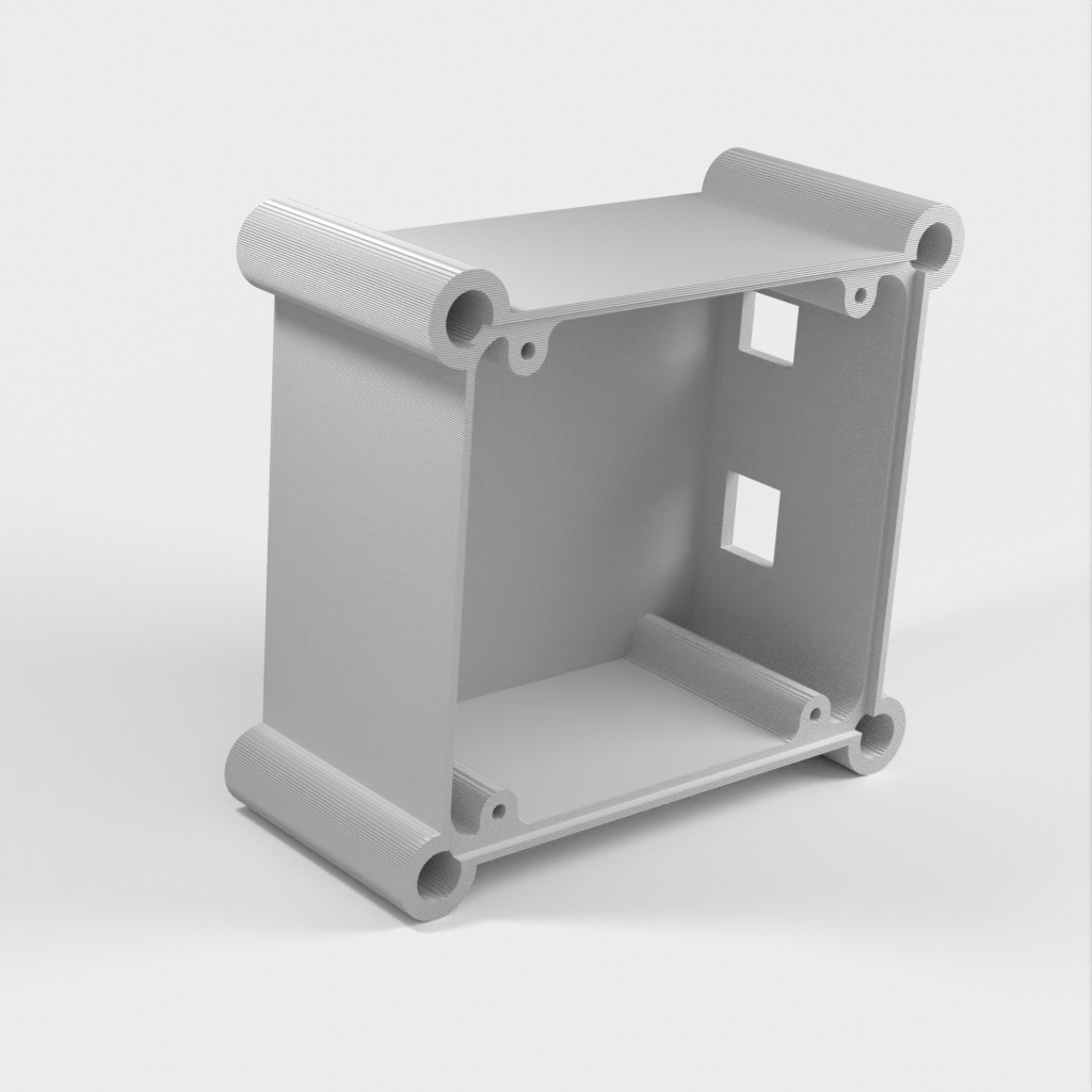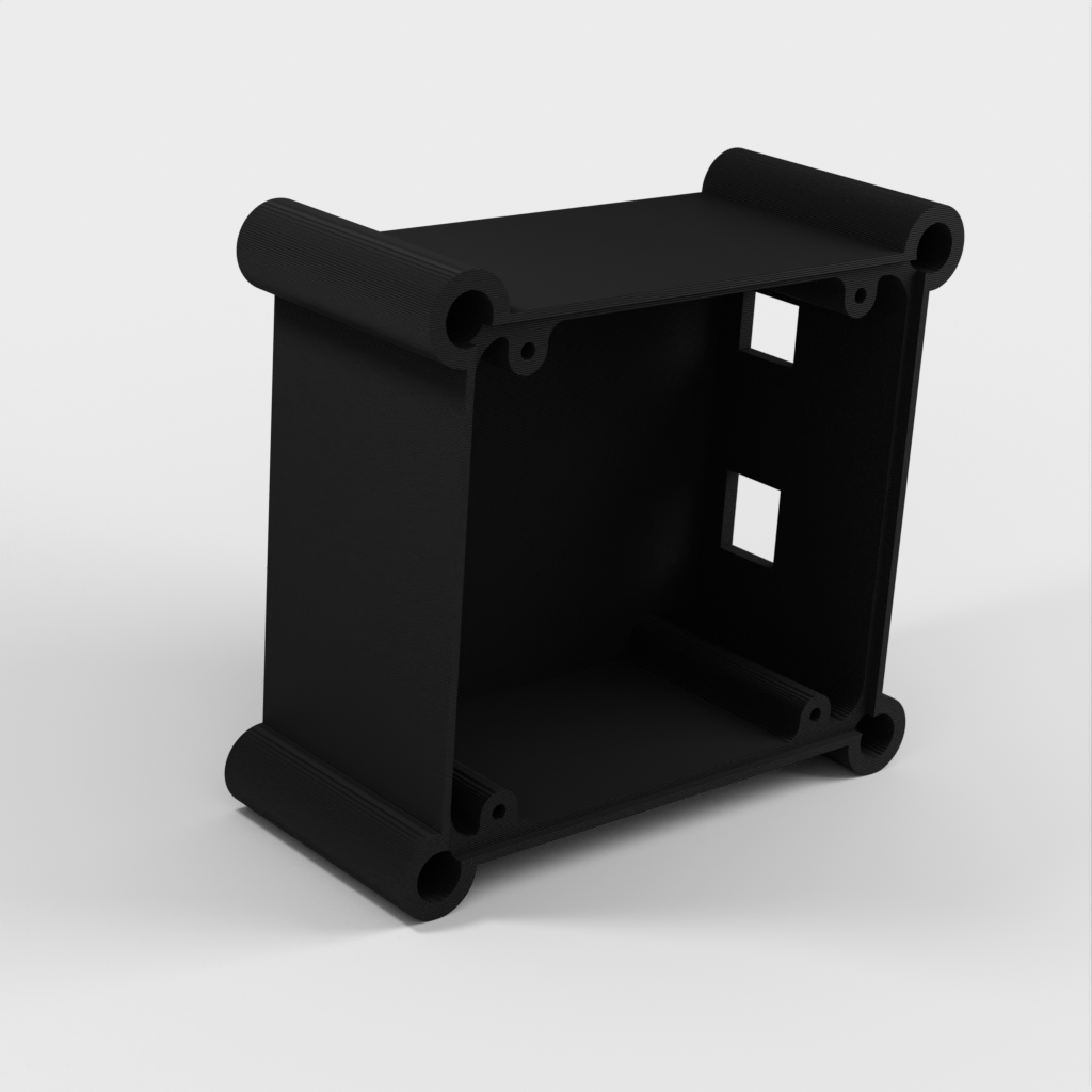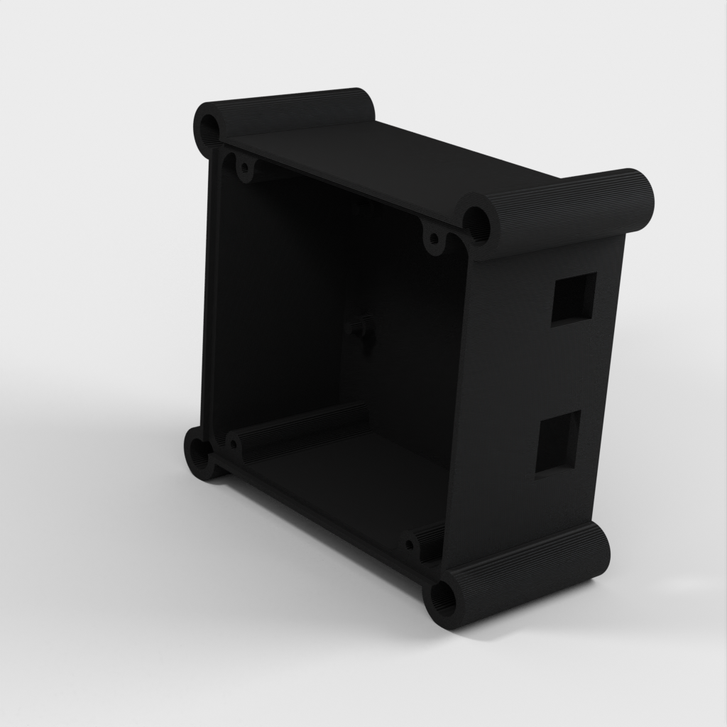 Arduino Uno projektboks designet til at rumme en Arduino Uno og et skjold (eller to, afhængig af tykkelsen). Billedet viser en version med et aluminiumslåg, men der er inkluderet et printet låg, hvis du ikke har brug for at lede varme væk.