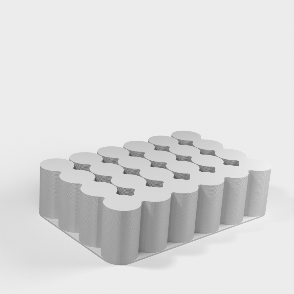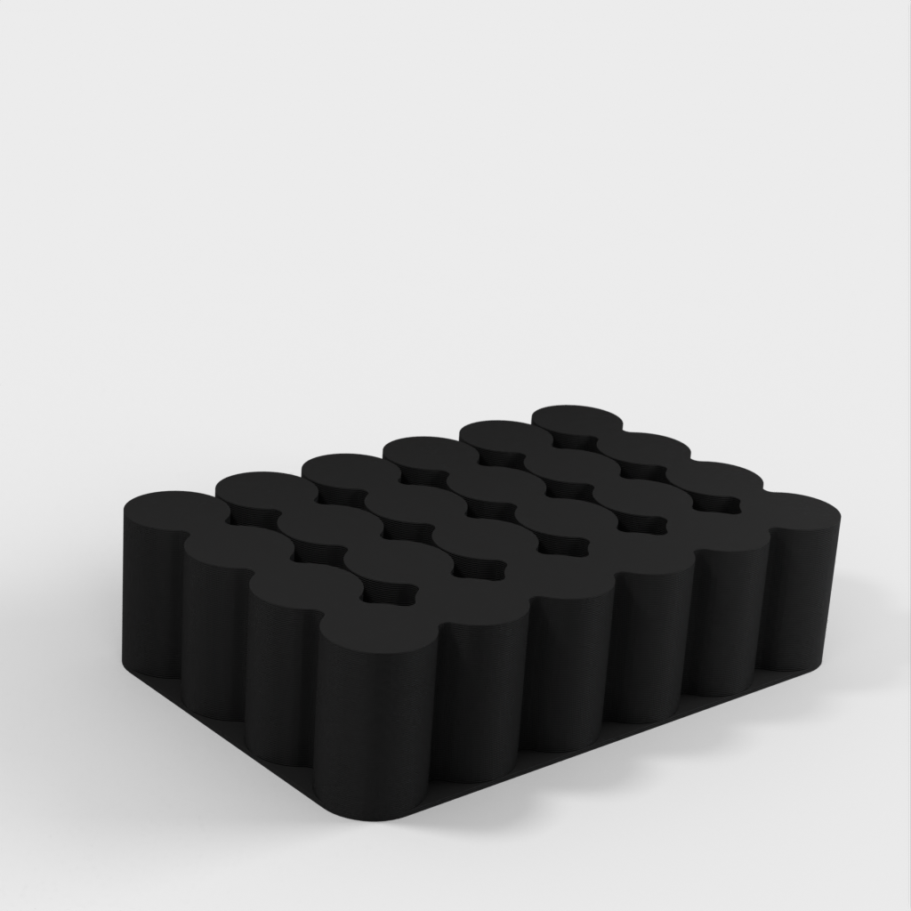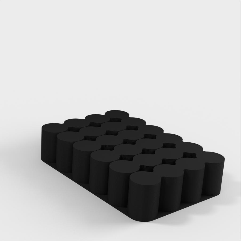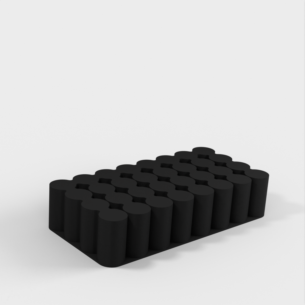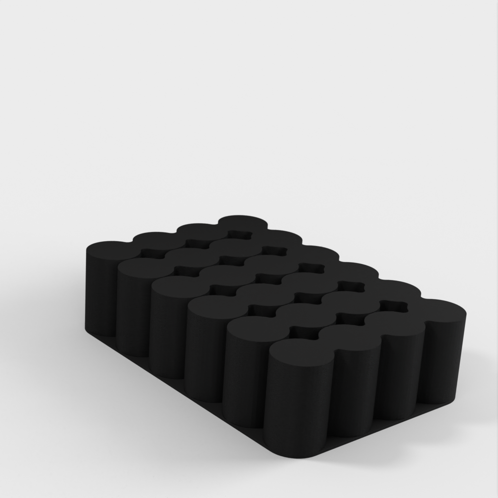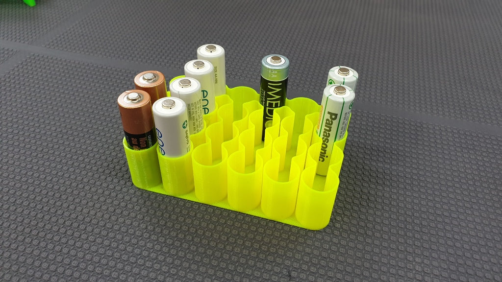 Hold styr på dine batterier med denne batteriholder til AA, AAA, 18650 og 9V batterier. AA-beholderen har plads til 24 batterier, AAA til 32, 18650 til 24 og 9V til 10. Du kan printe dem i ethvert materiale, men i dette tilfælde er de printet i PLA. Skulle du have brug for en holder til forskellig størrelse batterier eller med flere pladser, så efterlad en kommentar, og der vil blive uploaded en ny version.