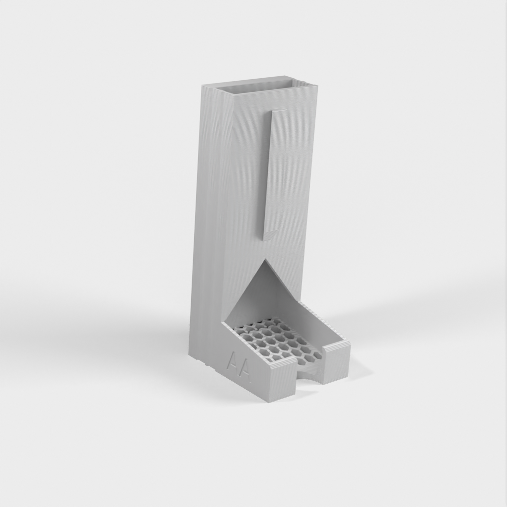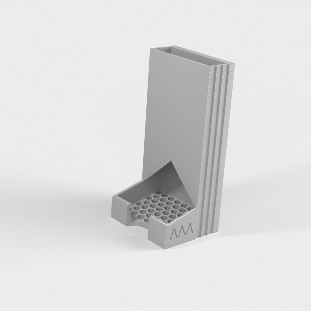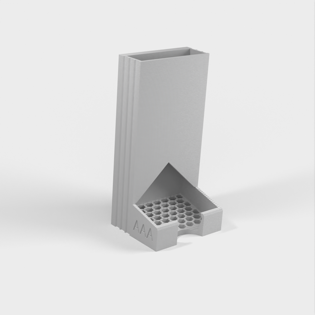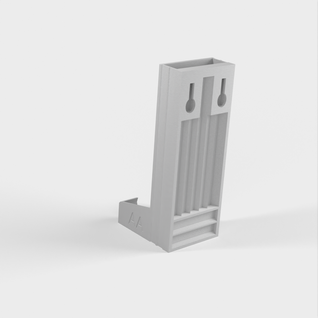 Batteriholder til AA og AAA batterier. Holdere kan sammensættes, og der er en vægmontering til rådighed. Det er et praktisk og rummeligt system til opbevaring af dine batterier og holder dit område organiseret og ryddeligt.