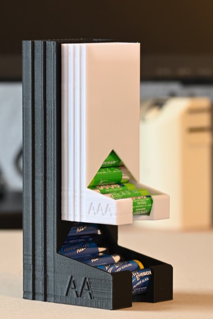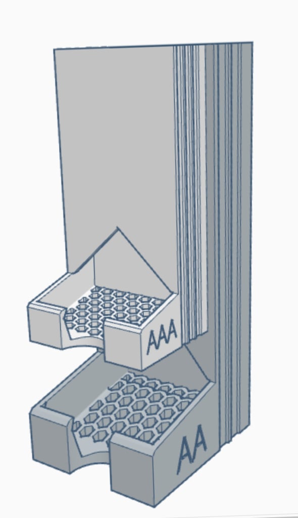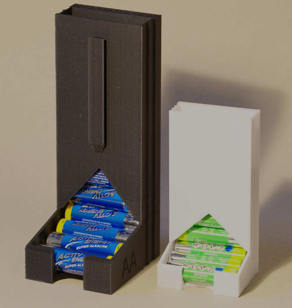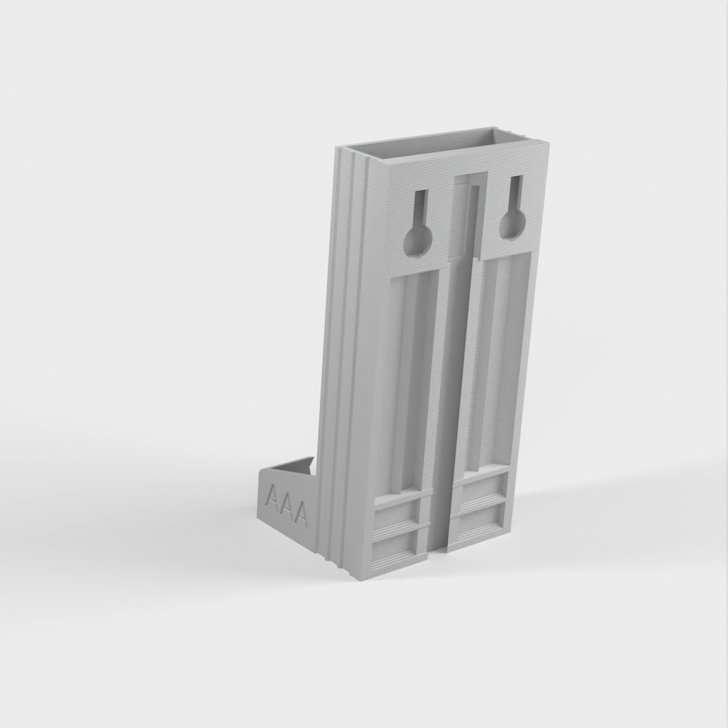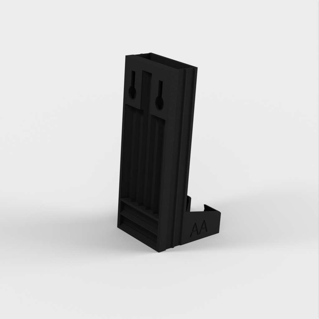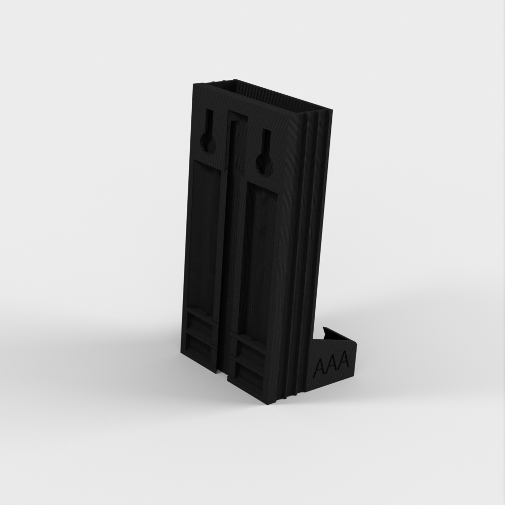 Batteriholder til AA og AAA batterier. Holdere kan sammensættes, og der er en vægmontering til rådighed. Det er et praktisk og rummeligt system til opbevaring af dine batterier og holder dit område organiseret og ryddeligt.