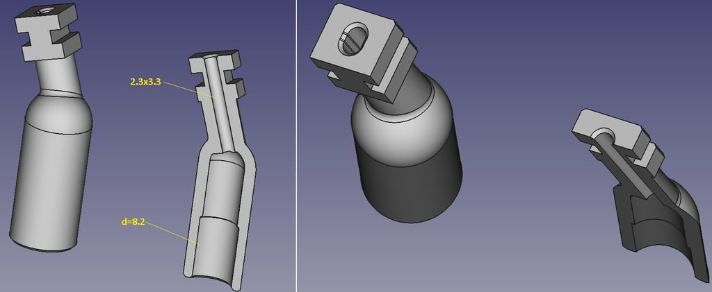 Beslaget er præcist dimensioneret; hullet til ledningerne gennem beslaget er elliptisk (2,3 x 3,3 mm), og hullet til jackstikket har en diameter på 8,2 mm. For at sikre en optimal pasform kan det være nødvendigt at foretage mindre tilpasninger på hovedtelefonens originale hus.