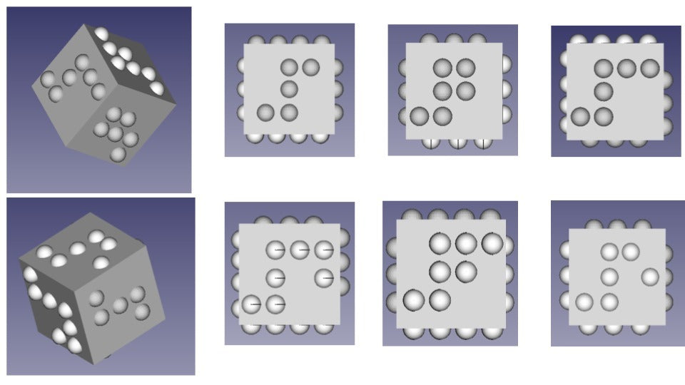Dette er et spil terning designet af elever fra gymnasiet IES Menéndez Pidal i A Coruña, skabt for at hjælpe blinde personer med at deltage i terningespil.