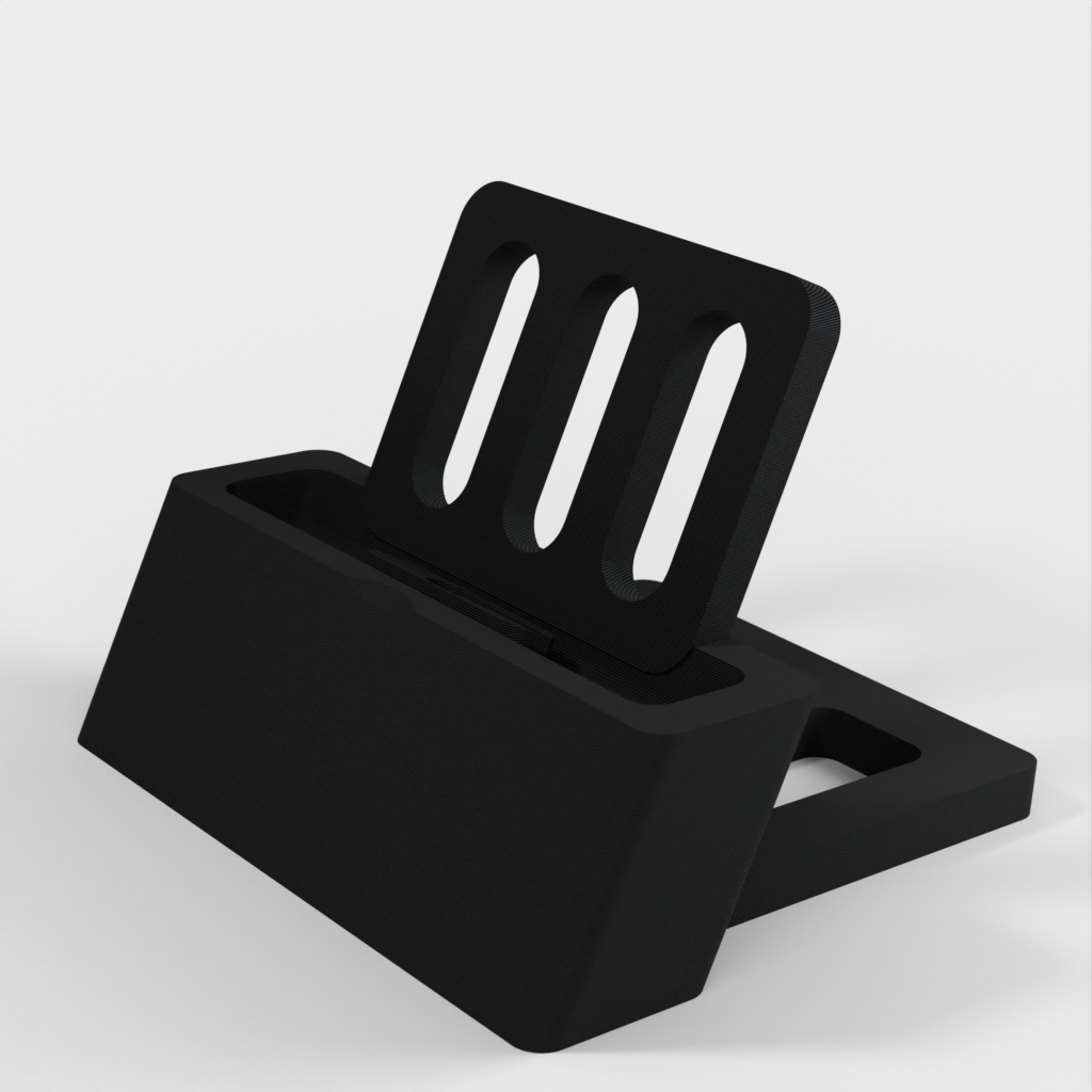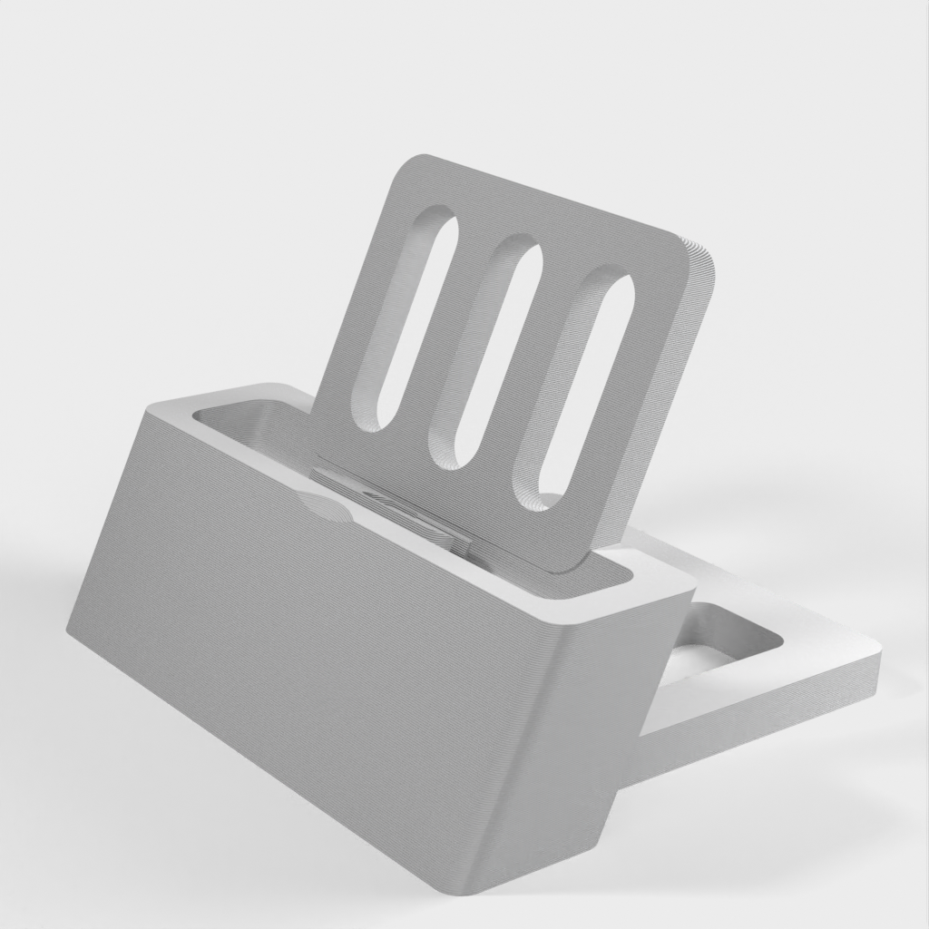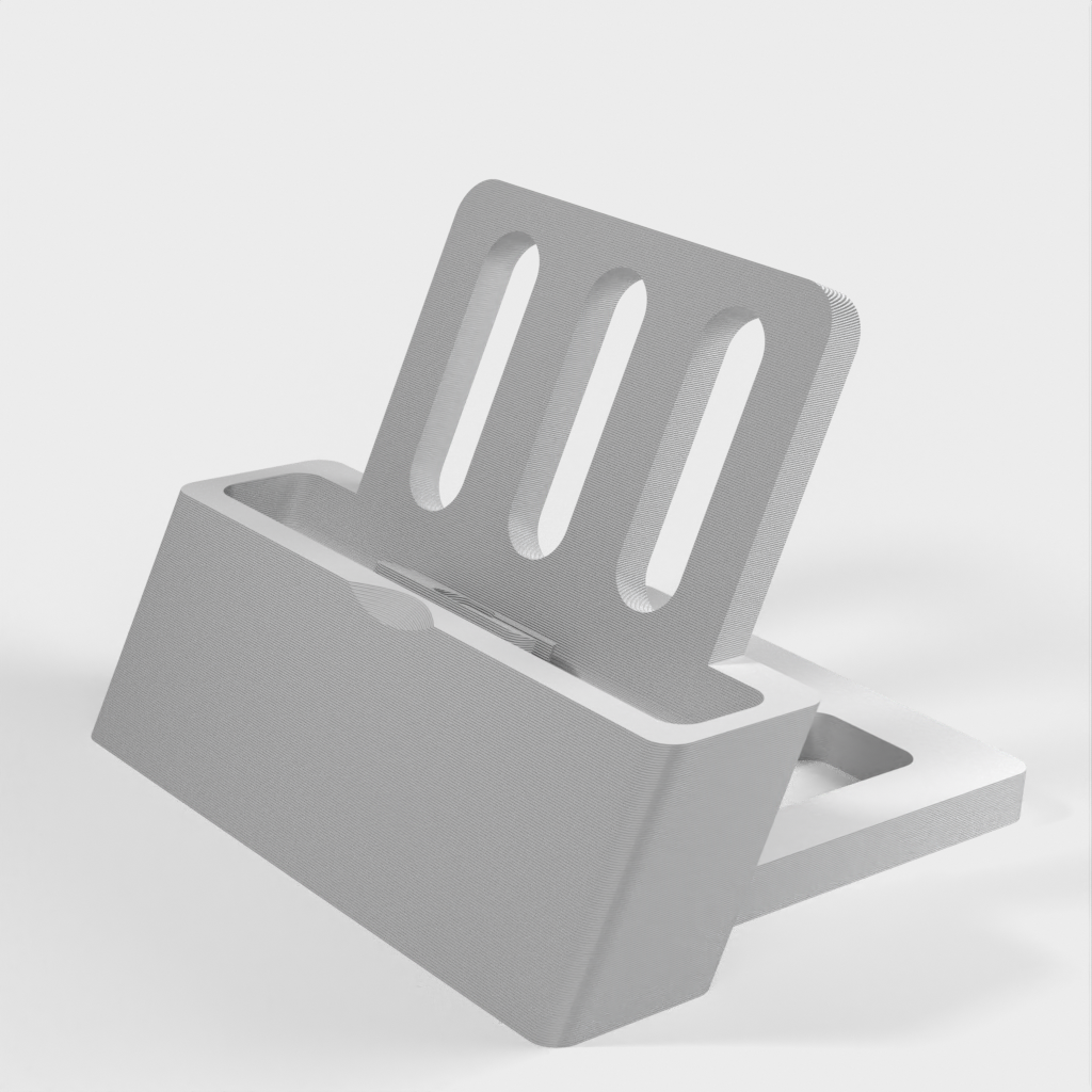 iPhone 5/6 Dock v3 er en stand til din iPhone, selv når den er i etui. Standen understøtter også bagsiden af etuiet. Denne version er fortsat kompatibel med iPhone 5 og har nu tilføjet understøttelse til iPhone 6.