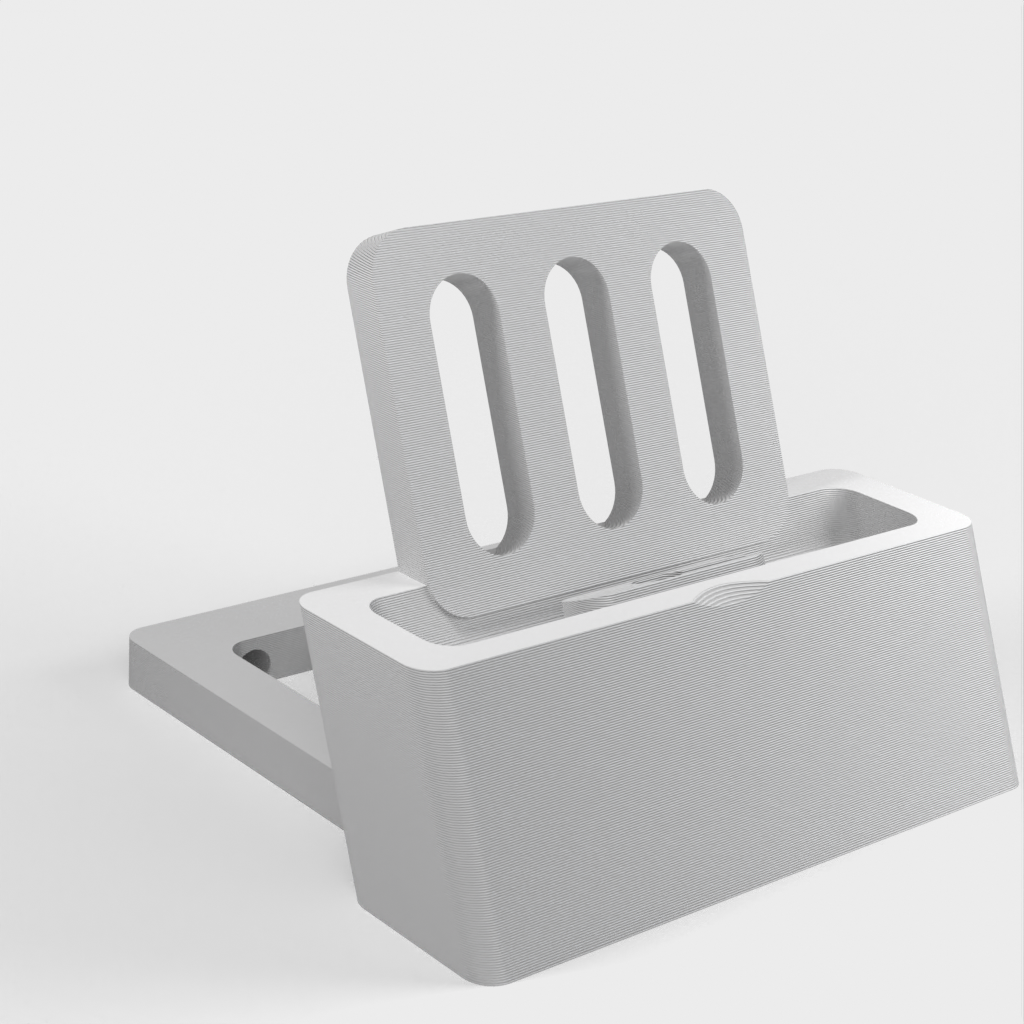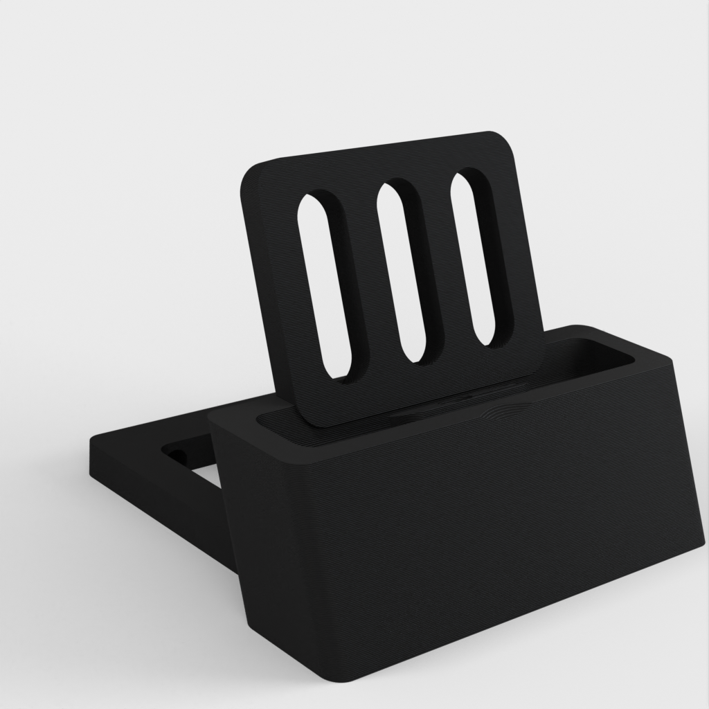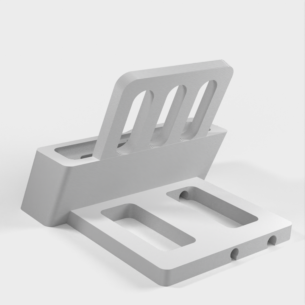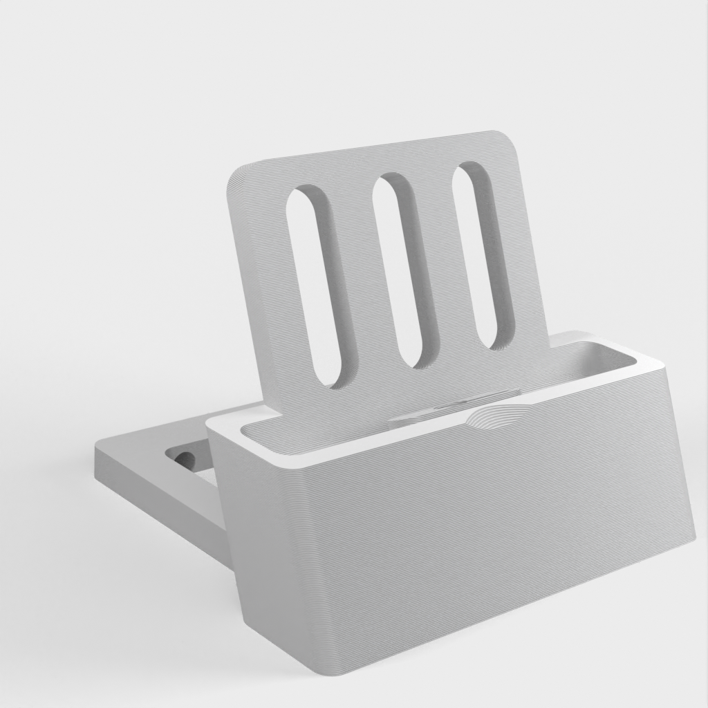 iPhone 5/6 Dock v3 er en stand til din iPhone, selv når den er i etui. Standen understøtter også bagsiden af etuiet. Denne version er fortsat kompatibel med iPhone 5 og har nu tilføjet understøttelse til iPhone 6.