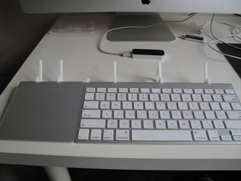 Denne praktiske stander er designet til at skabe en mere samlet og ryddelig arbejdsplads, når du anvender din iPhone og iPad. Den holder dine enheder i en optimal vinkel for både visning og interaktion, hvilket gør det lettere at arbejde eller nyde medier. Standeren er specielt udviklet til at forbinde sømløst med dit Apple trådløse tastatur og trackpad, så du kan forvandle dine mobile enheder til en effektiv desktop-lignende opsætning. Den bidrager til at reducere rod på skrivebordet og giver en elegant løsning til at holde din Apple-enhed og dit tilbehør organiseret og let tilgængeligt.