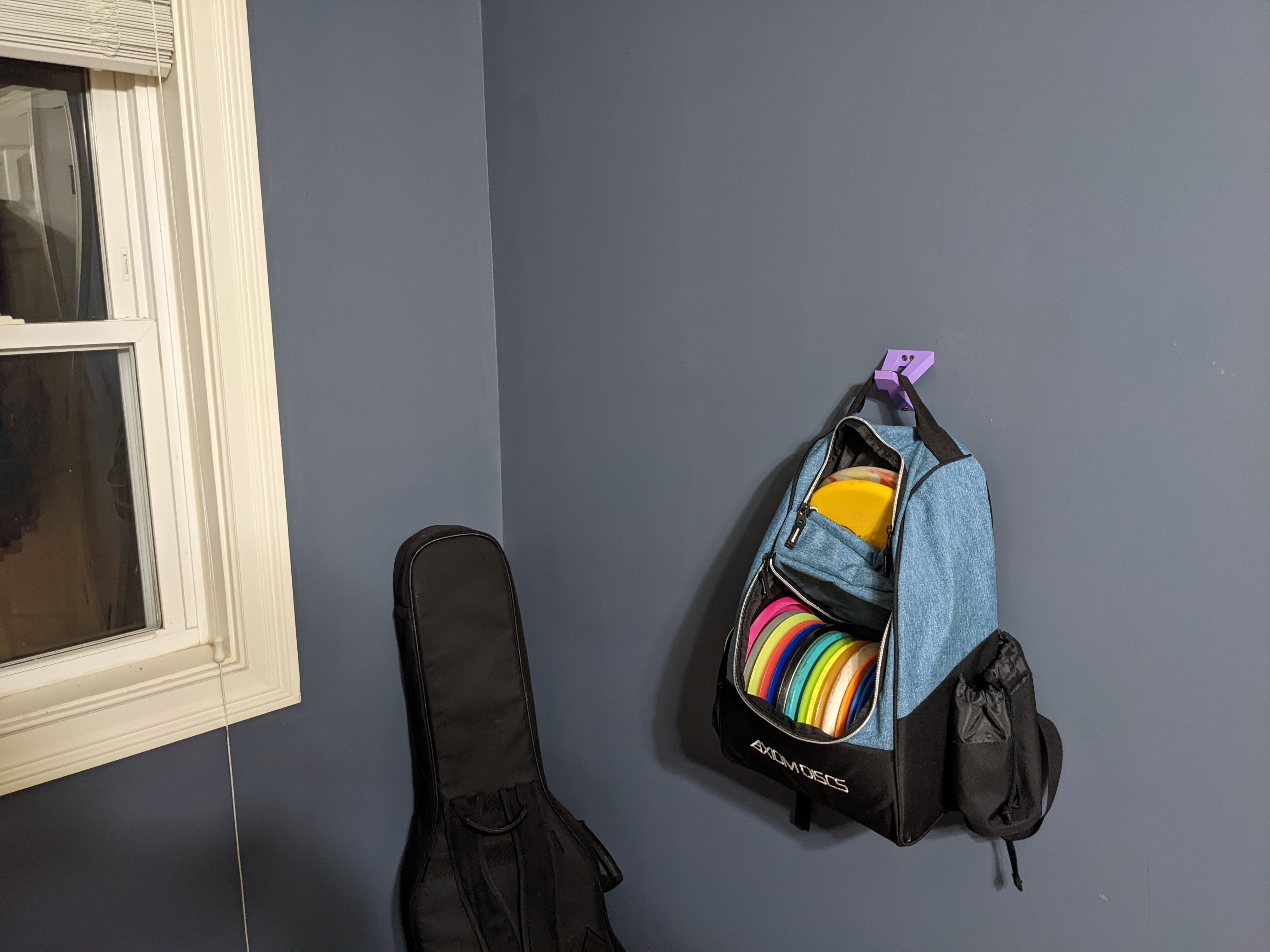 Dette er en vægkrog, der er designet til nemt og effektivt at holde tasker, rygsække eller andre genstande. Denne krog kan monteres på enhver væg ved hjælp af tre standard træskruer. Den er ideel til at organisere dit rum og holde tingene inden for nem rækkevidde.