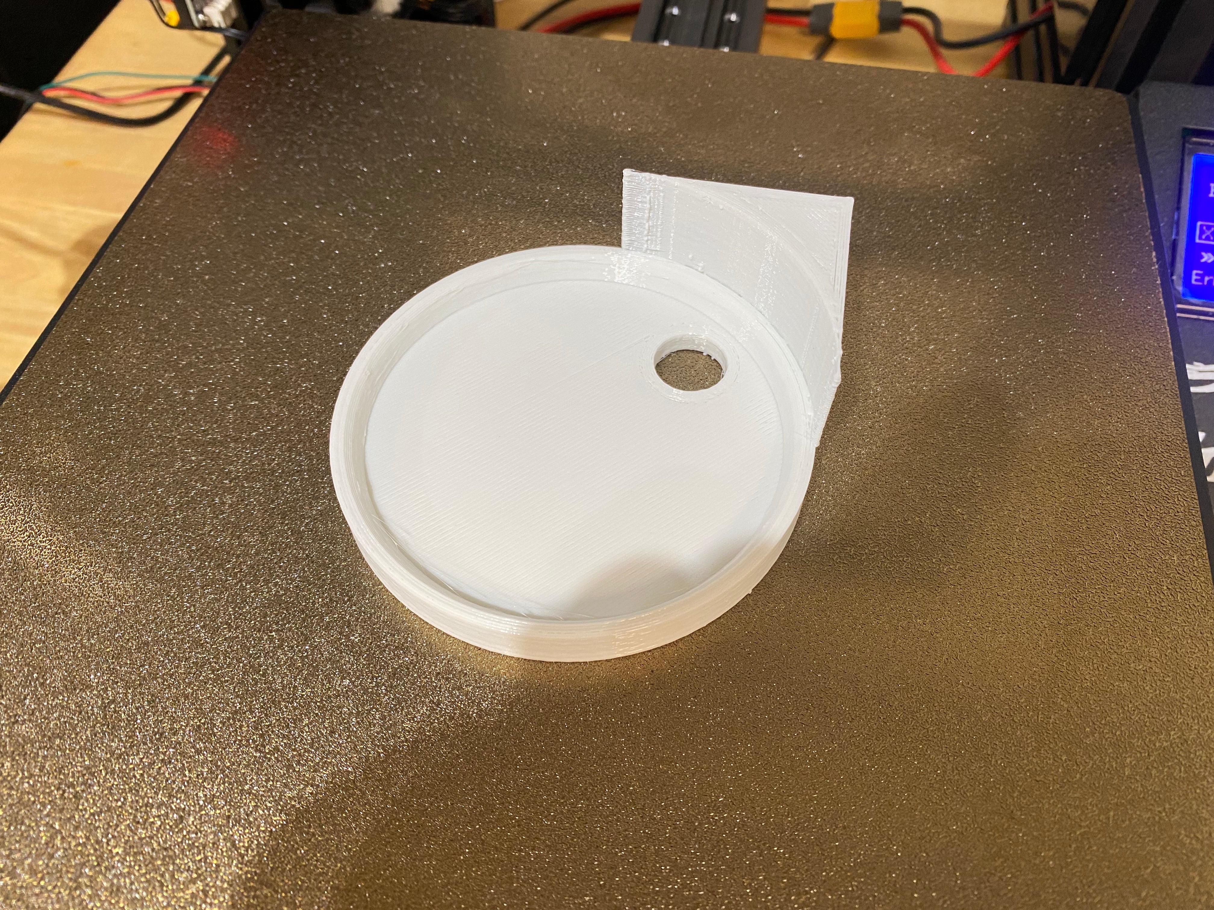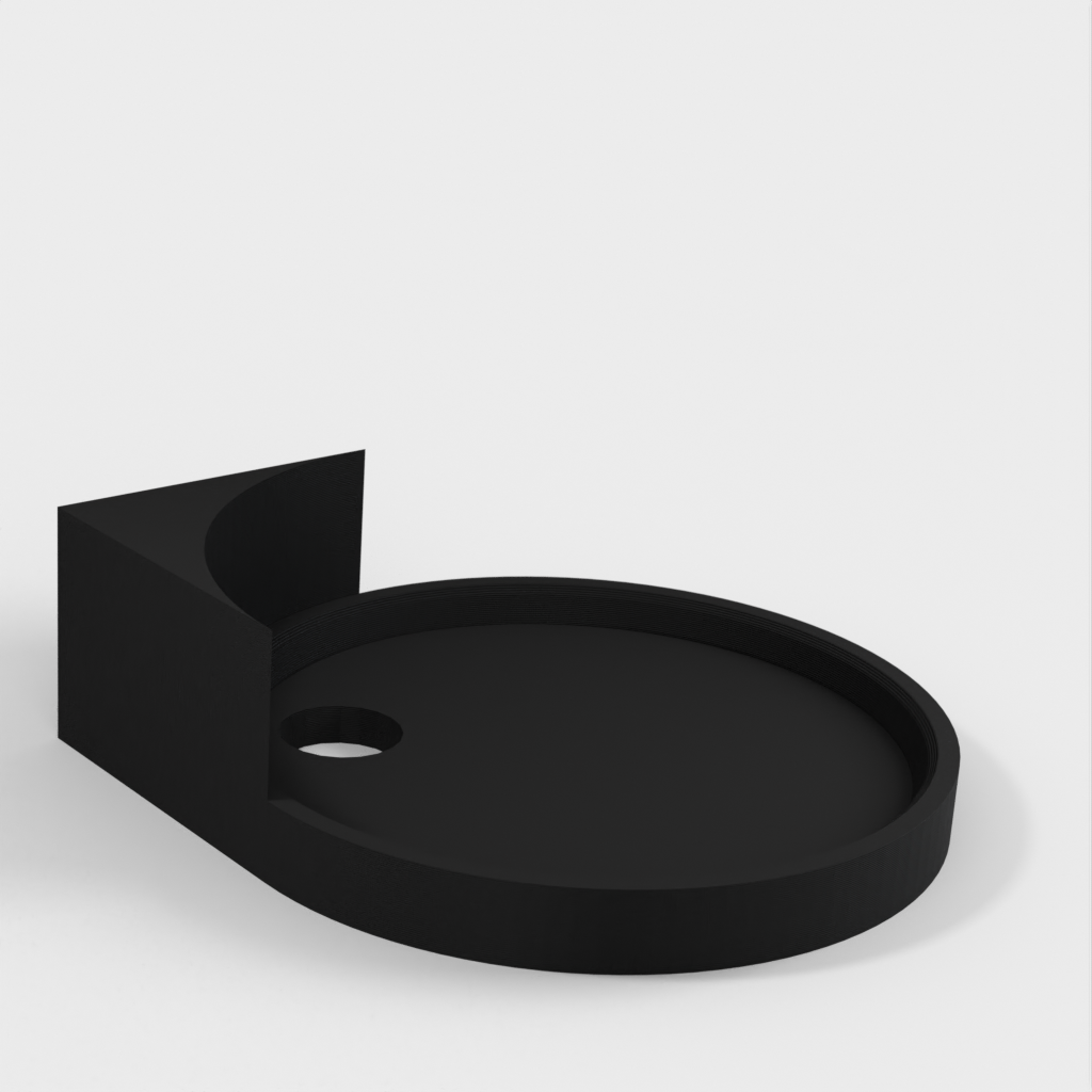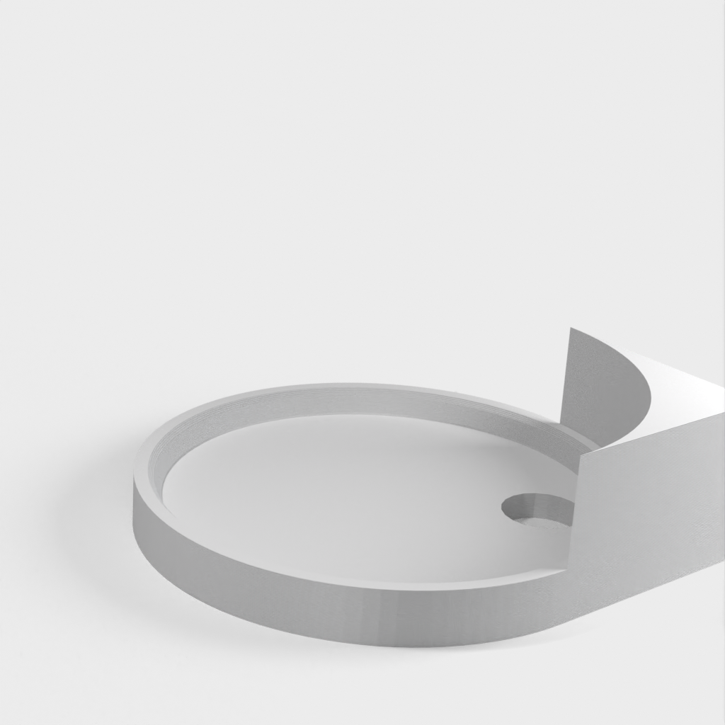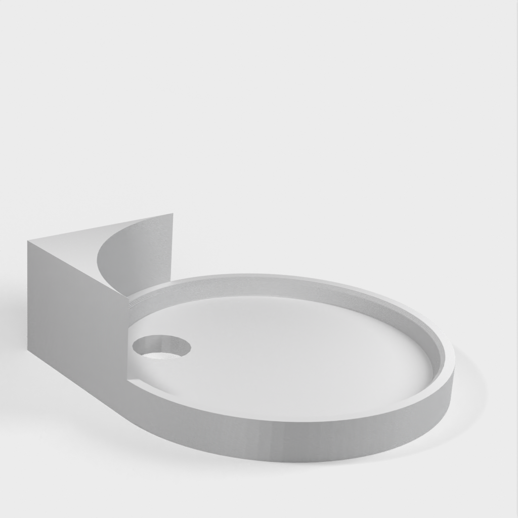 Et hjørnehylde med en lille hul til ruting af en strømkabel til et kamera. Denne hjørnehylde er designet til nem montering og perfekt til at holde dit kamera i højde, mens det holder kablerne organiseret og ude af syne.