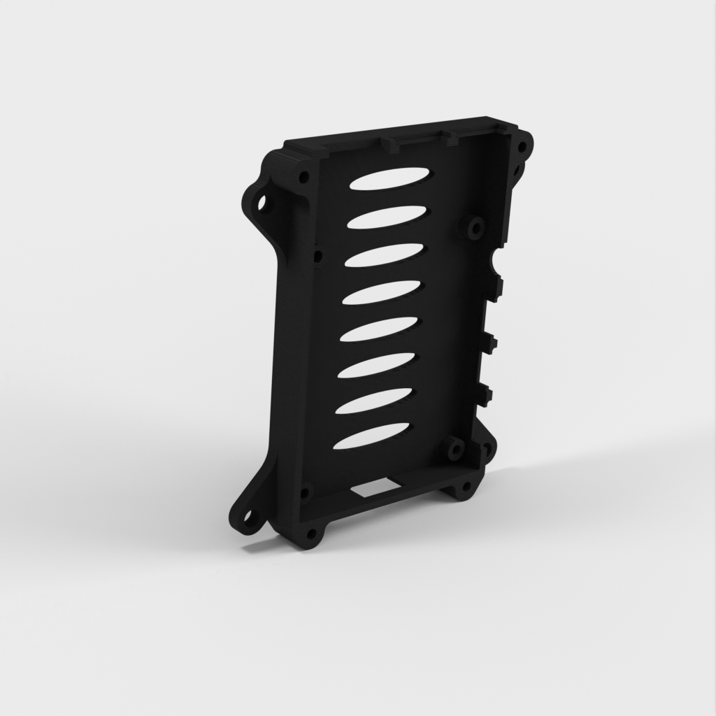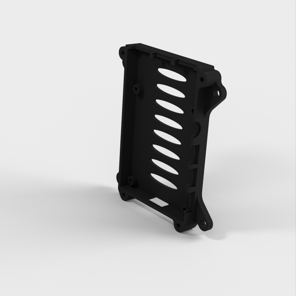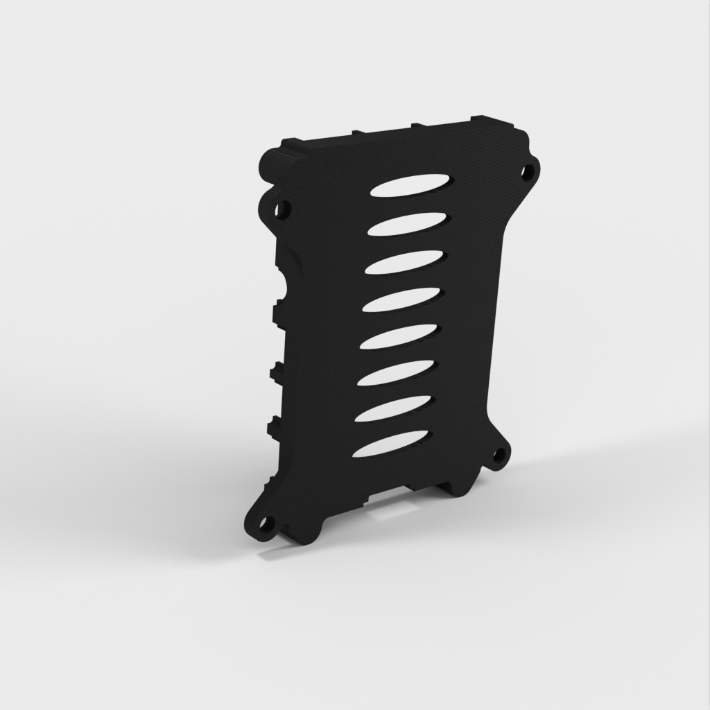 Dette er en modificeret version af Patrick Lammer's etui til Raspberry Pi 4, tilpasset for at rumme en Ice Tower-køler. Kølerens afstandsholdere er vendt og skruet fast til etuiet, nødderne bruges ikke længere. Oprettet ved at modificere den øverste del af etuiet, mens bunden er den originale udformning af Patrick.