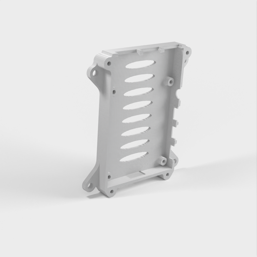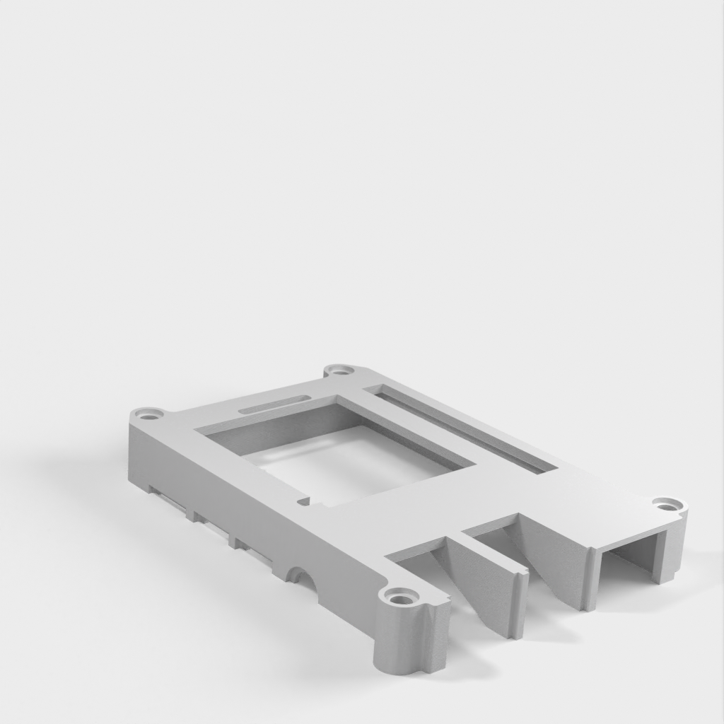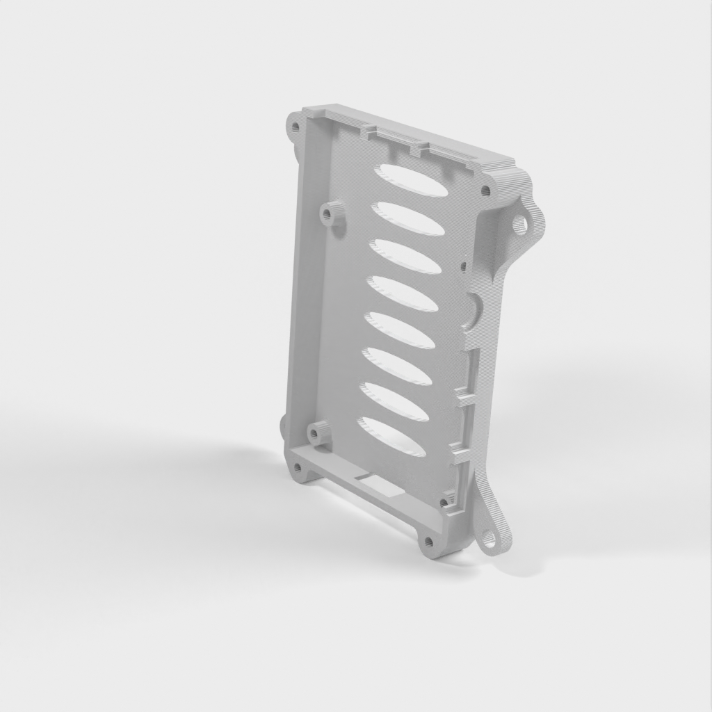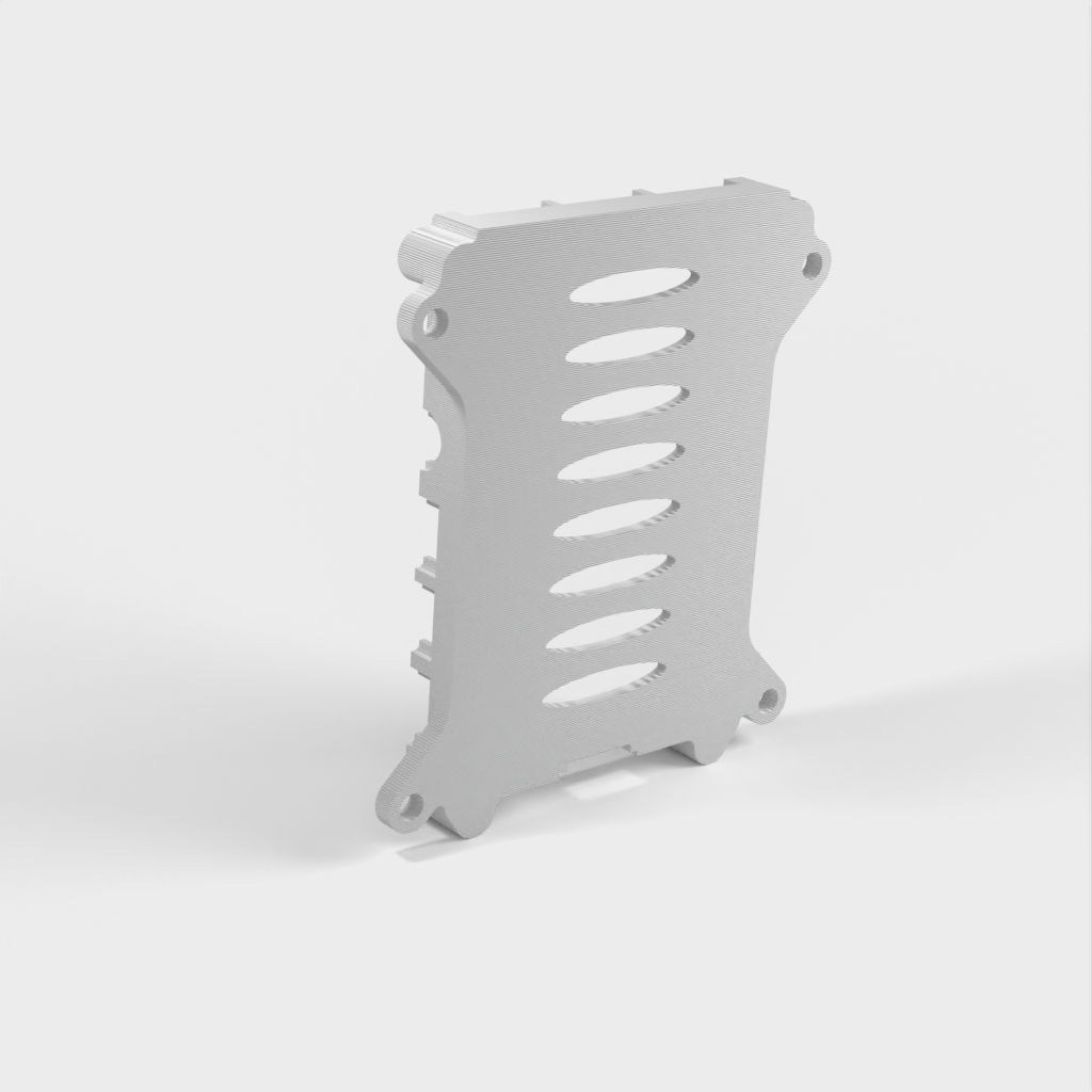 Dette er en modificeret version af Patrick Lammer's etui til Raspberry Pi 4, tilpasset for at rumme en Ice Tower-køler. Kølerens afstandsholdere er vendt og skruet fast til etuiet, nødderne bruges ikke længere. Oprettet ved at modificere den øverste del af etuiet, mens bunden er den originale udformning af Patrick.