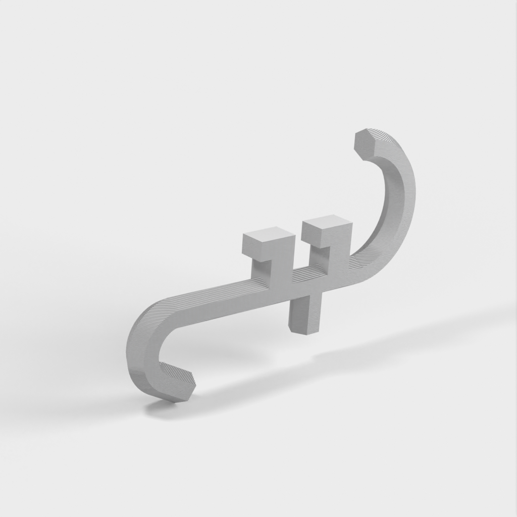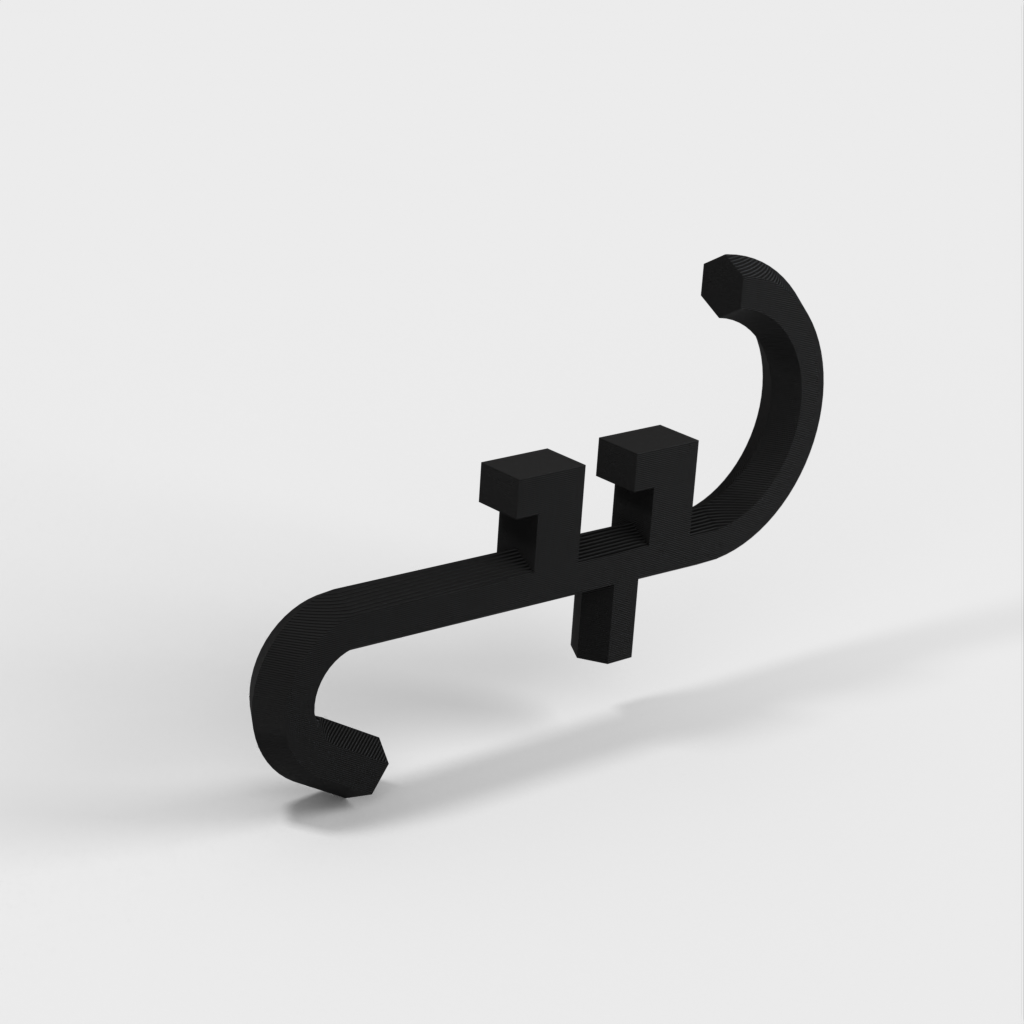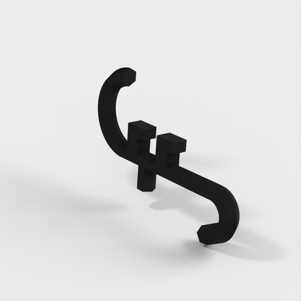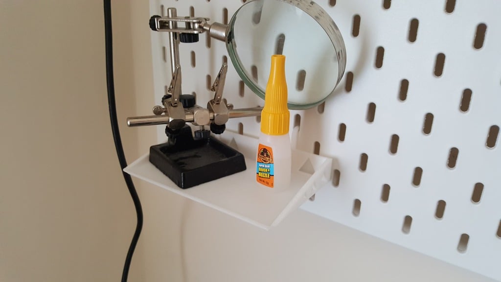 En hylde og hyldekrogspakke til IKEA SKÅDIS Pegboard system. Designet så krogene kan fjernes, men det anbefales at lime dem fast for ekstra sikkerhed. Med denne pakke kan du let organisere og lagre dine genstande på en effektiv og sikker måde.