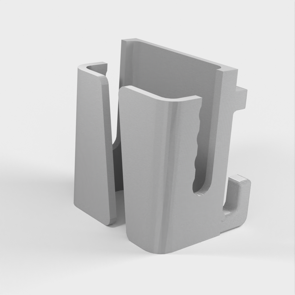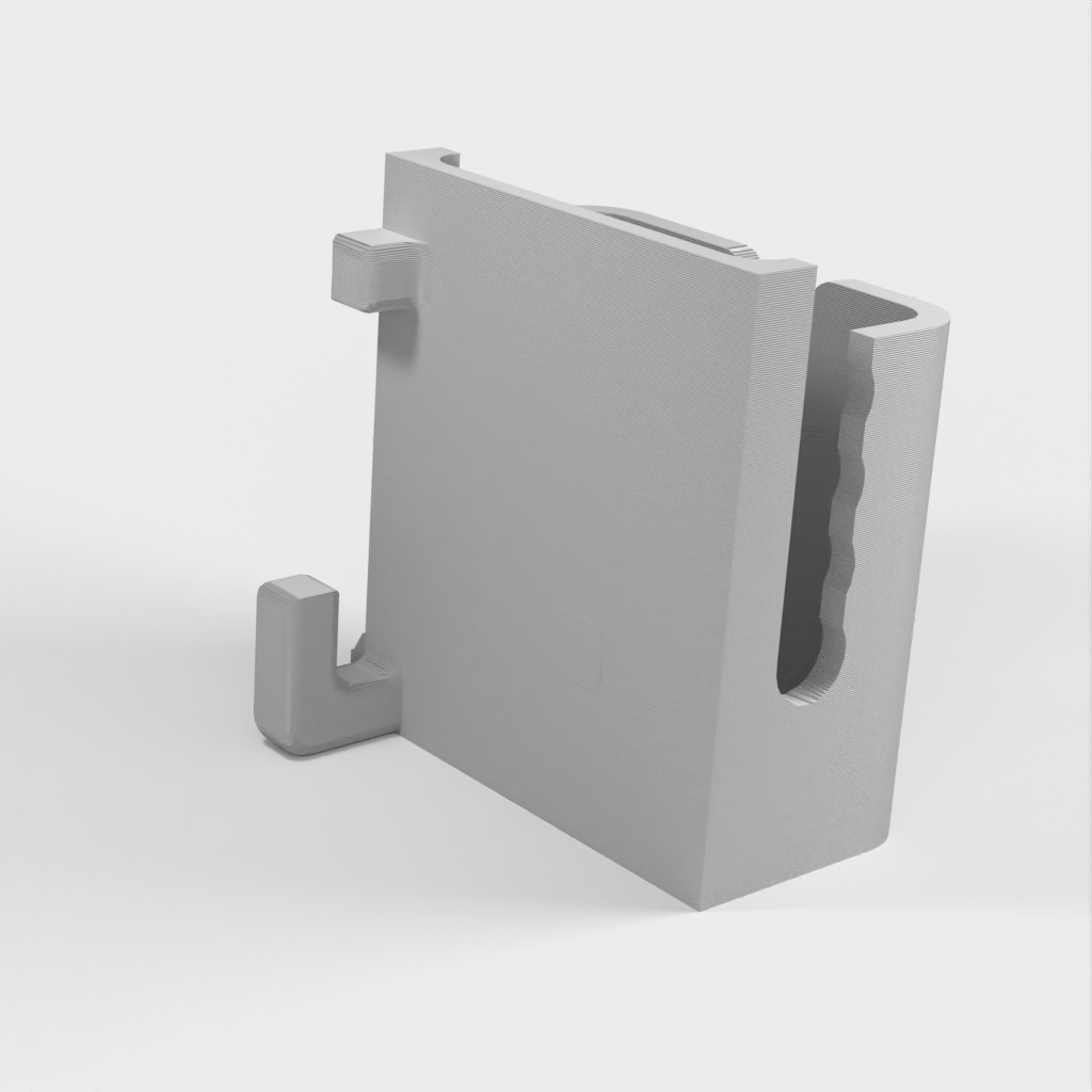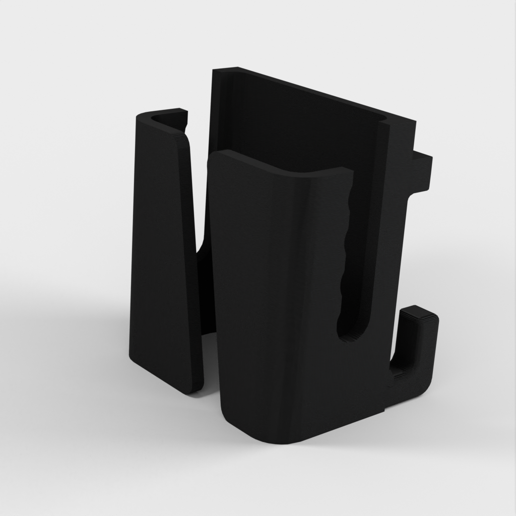 En universel kabelholder til Skadis Pegboard fra Ikea. Denne holder kan både anvendes horisontalt og vertikalt for at organisere dine kabler på en let og overskuelig måde. Holderen kan nemt remikses til dit specifikke behov, og vi byder enhver forbedring eller anbefaling velkommen, så vi sammen kan skabe det bedste produkt. Nyd din nye orden i kablerne.