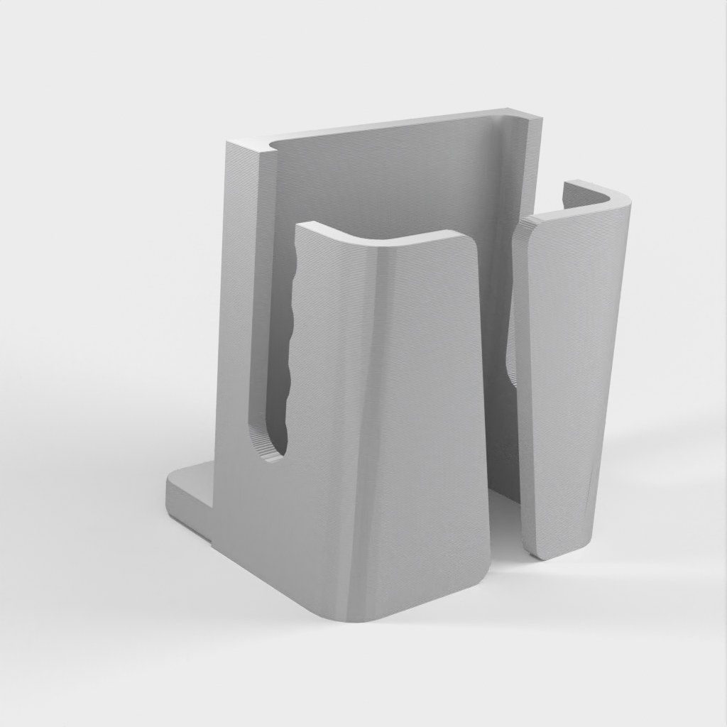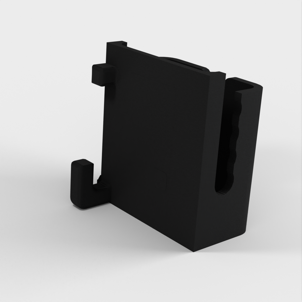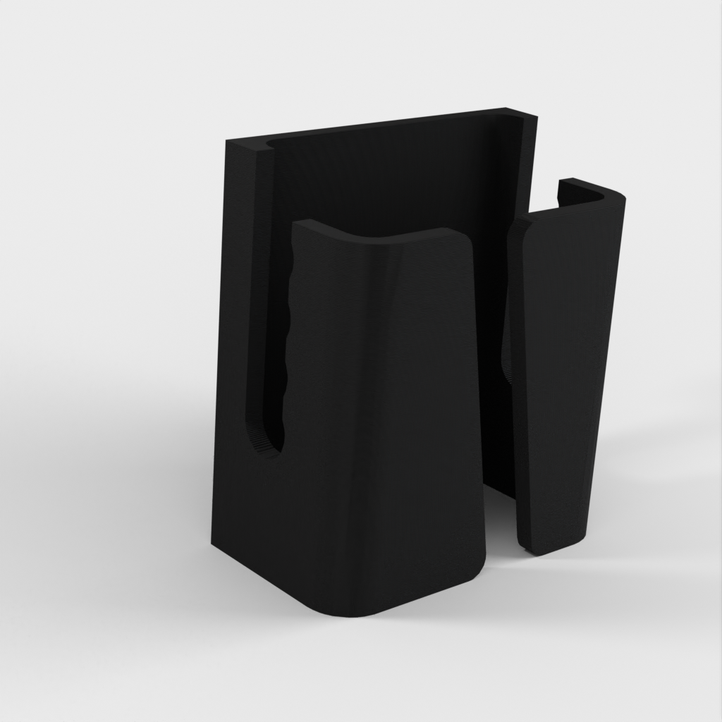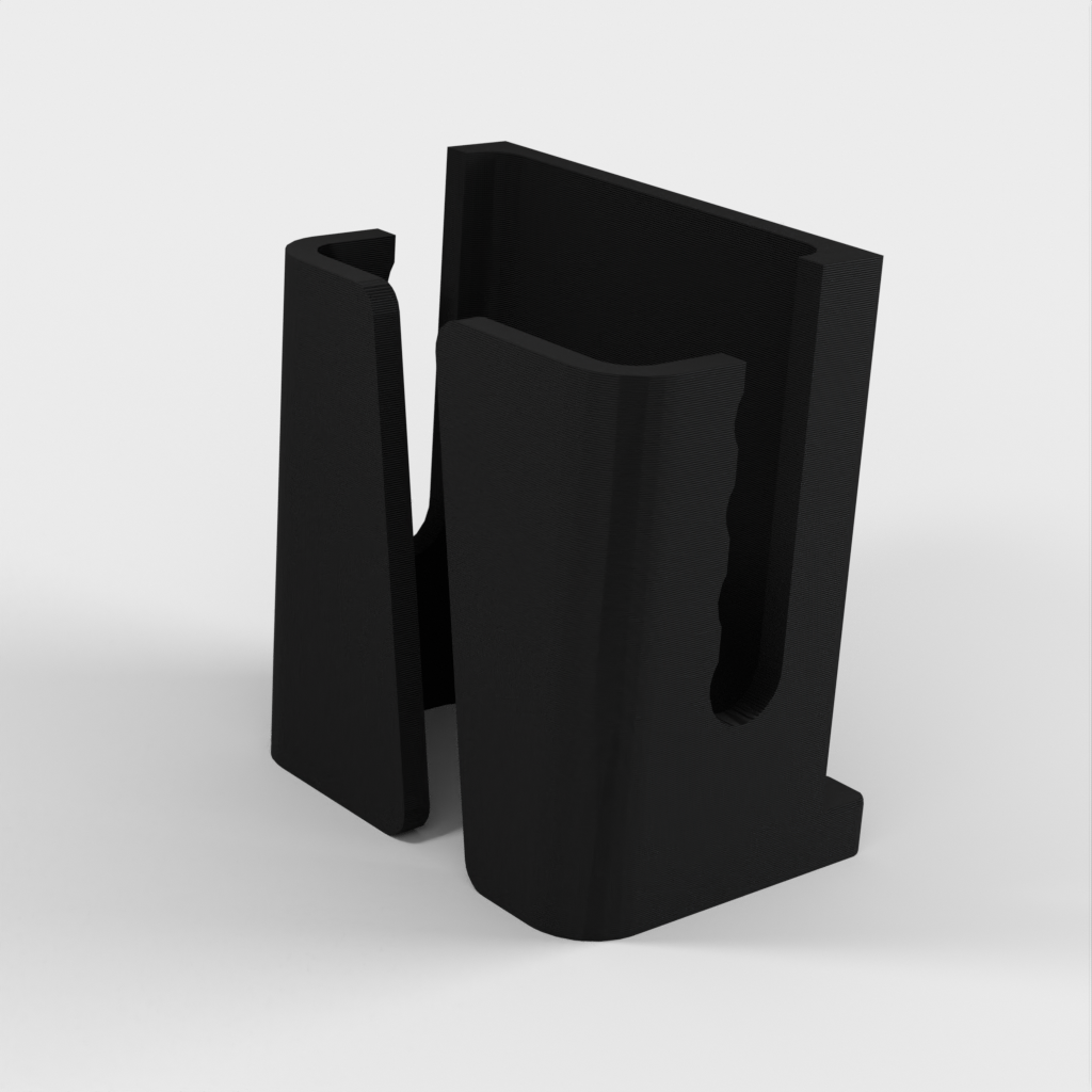 En universel kabelholder til Skadis Pegboard fra Ikea. Denne holder kan både anvendes horisontalt og vertikalt for at organisere dine kabler på en let og overskuelig måde. Holderen kan nemt remikses til dit specifikke behov, og vi byder enhver forbedring eller anbefaling velkommen, så vi sammen kan skabe det bedste produkt. Nyd din nye orden i kablerne.