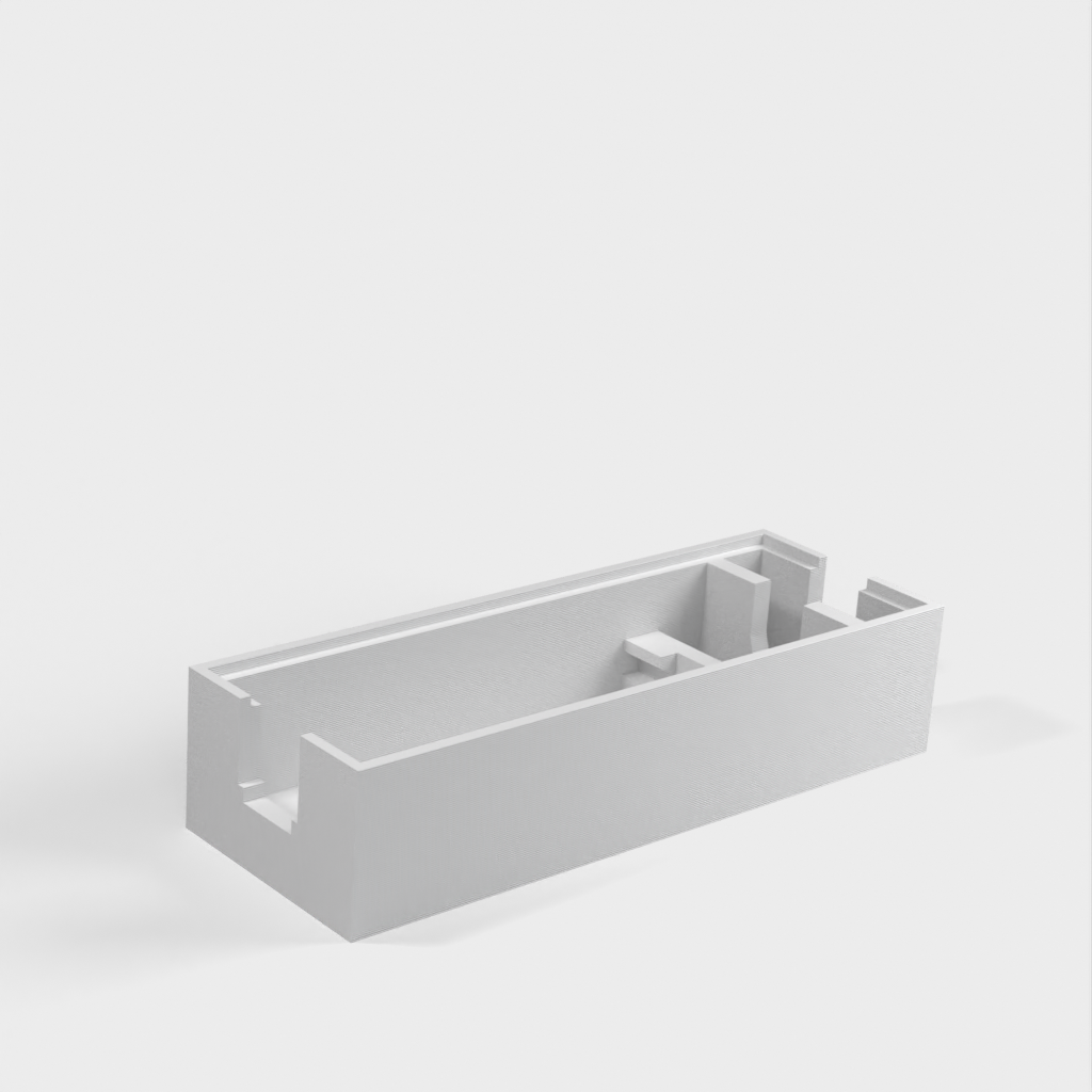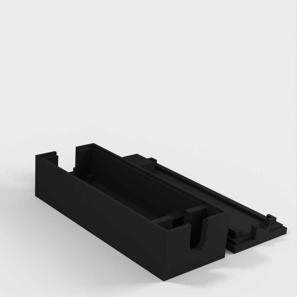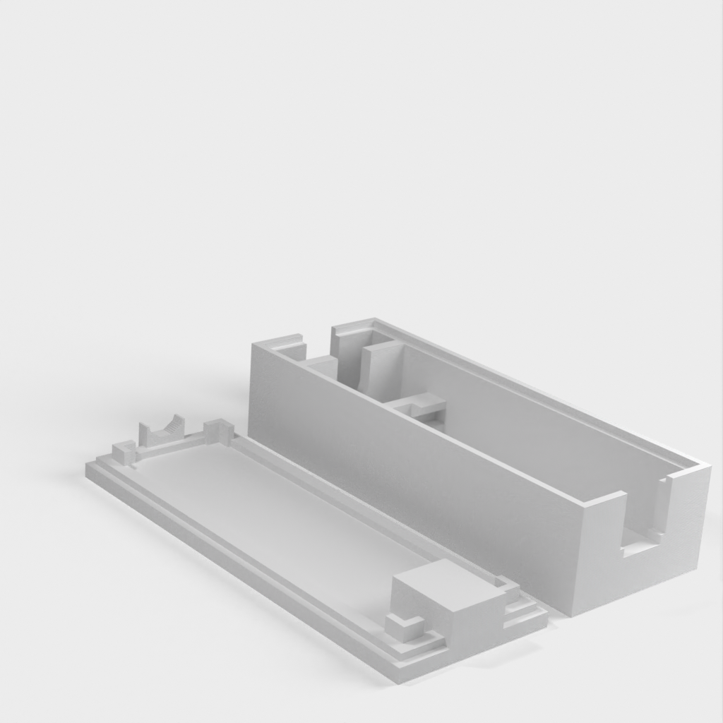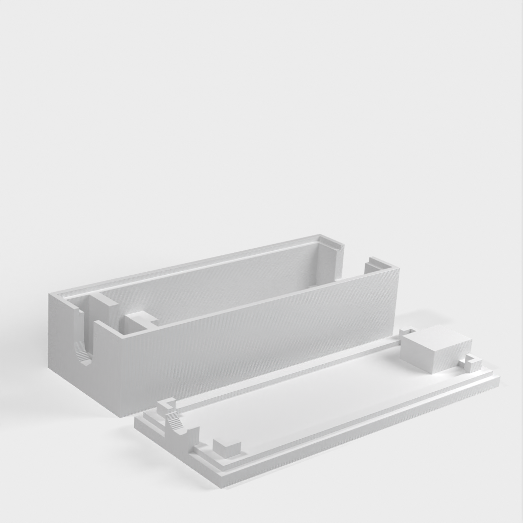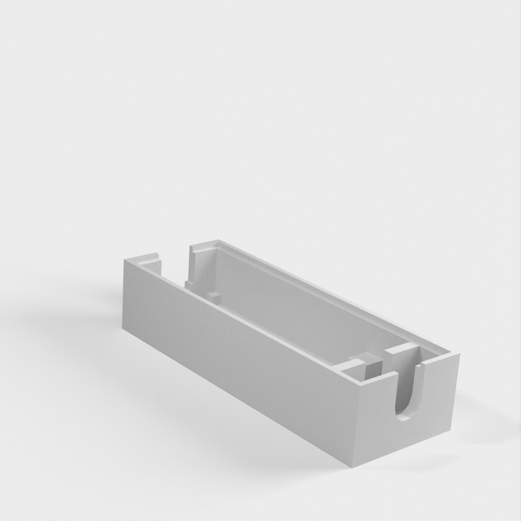 Simpel indkapsling til Arduino Nano, som anbefales til brug. Denne model har plads til en 6mm I/O kabel, samt en kabelholder.