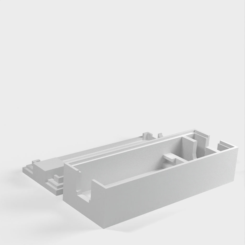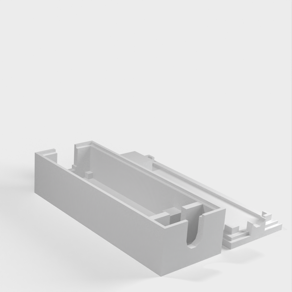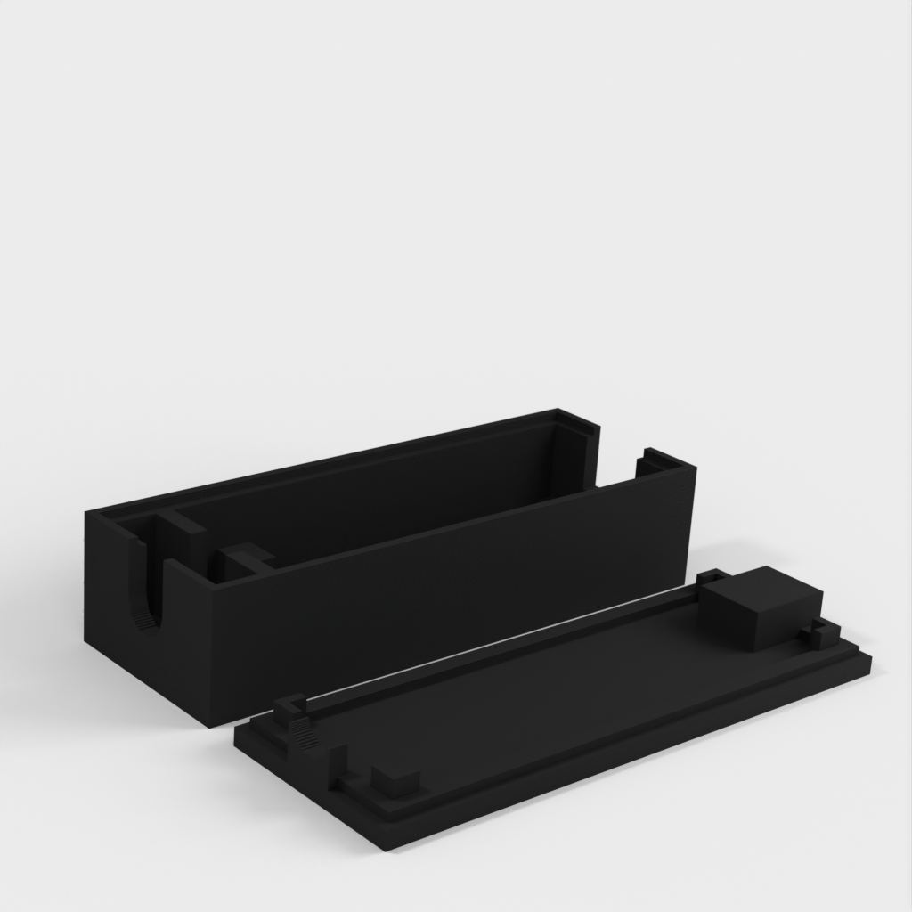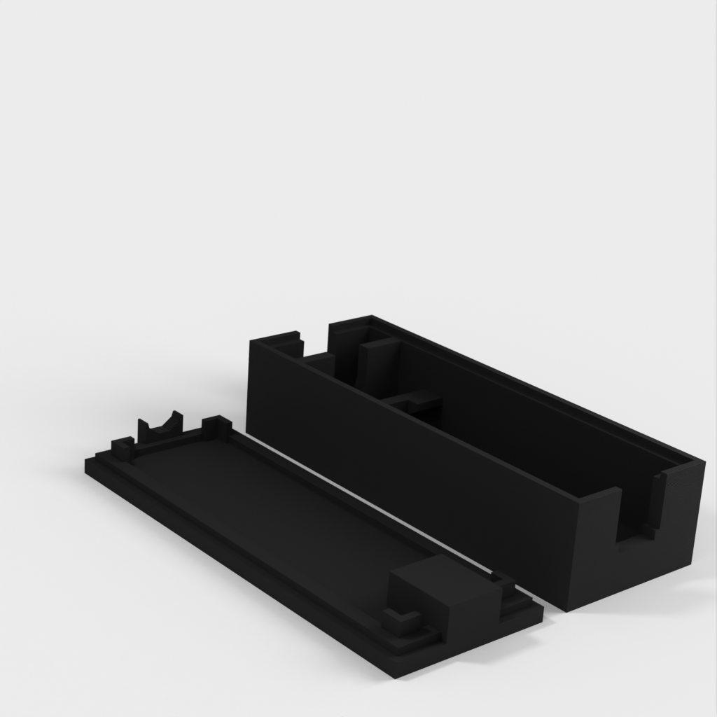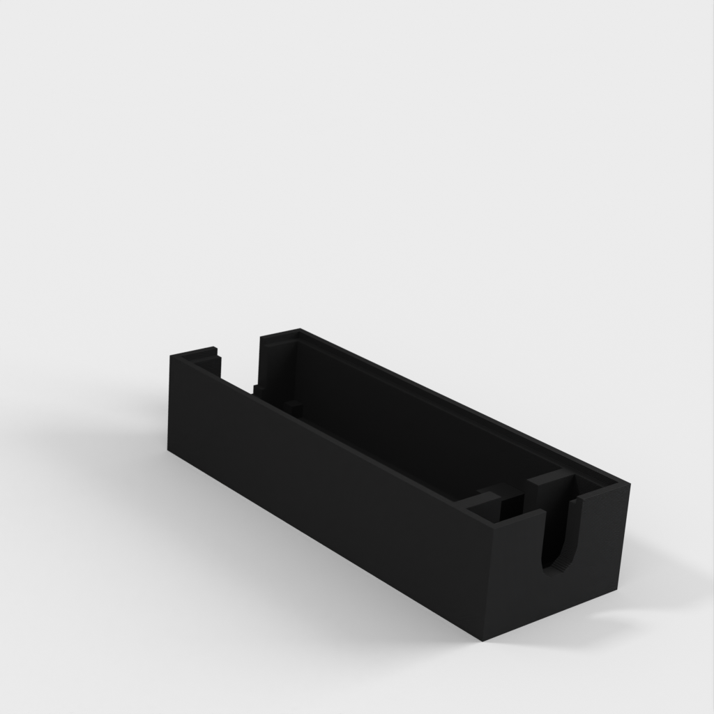 Simpel indkapsling til Arduino Nano, som anbefales til brug. Denne model har plads til en 6mm I/O kabel, samt en kabelholder.