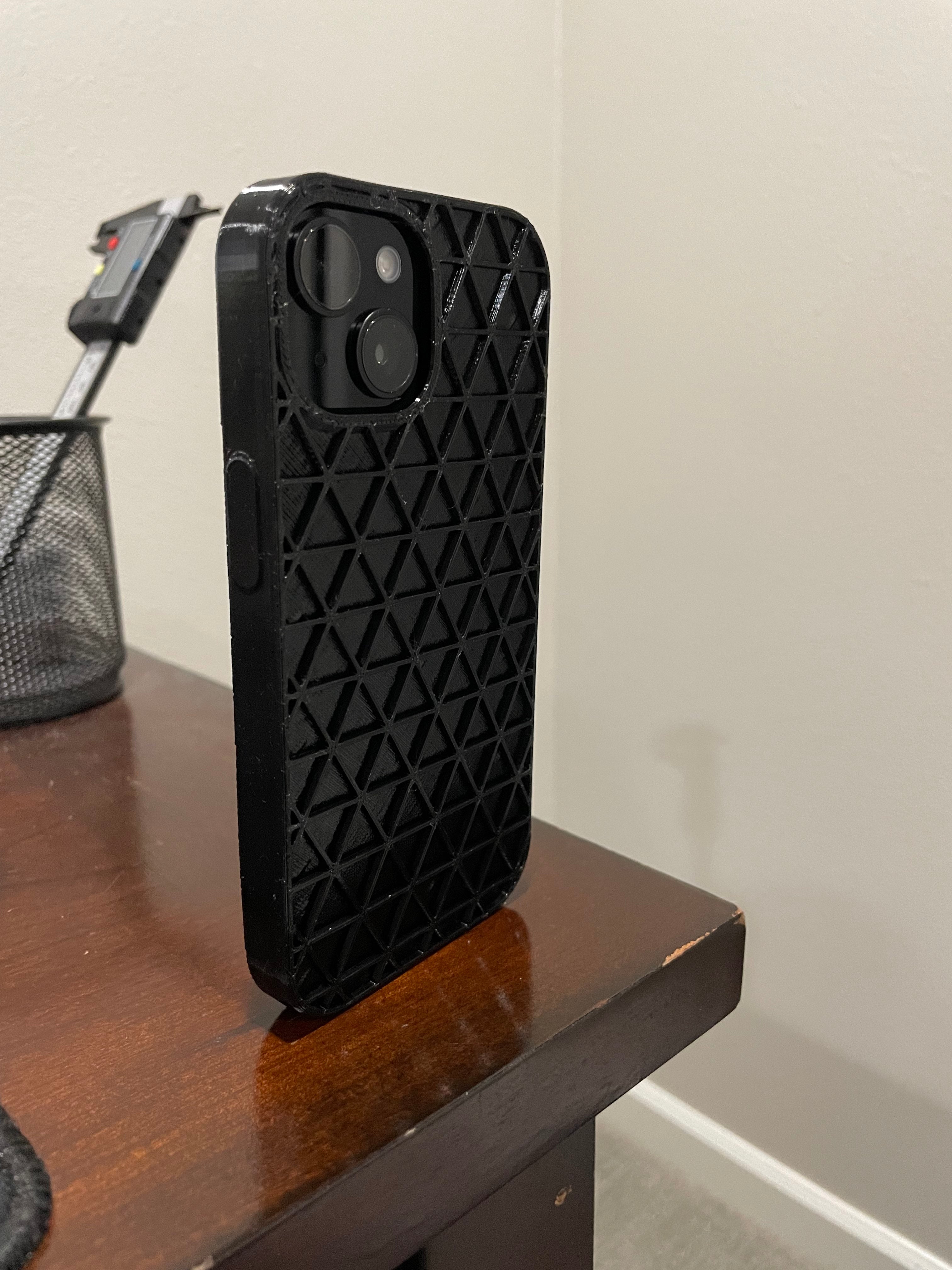 Giv din iPhone 15 optimal beskyttelse og funktionalitet med dette stilfulde etui, designet til hverdagsbrug. Etuiet har et unikt trekantet mønster på bagsiden, der ikke kun tilføjer et moderne æstetisk præg, men også forbedrer grebet, så din telefon ligger sikkert i hånden.