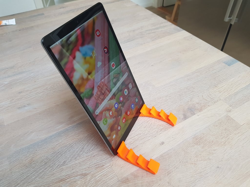 Denne alsidige holder er designet til at forbedre din oplevelse med både iPad og andre tablets. Med fem forskellige justerbare vinkler kan du nemt finde den perfekte position, uanset om du ser film, følger en opskrift i køkkenet, deltager i et videoopkald eller læser en e-bog. Holderen understøtter både liggende (landskab) og stående (portræt) tilstand, hvilket giver dig fuld fleksibilitet. Dens robuste design sikrer, at din tablet står stabilt og sikkert uden behov for bevægelige dele, hvilket bidrager til en enkel og problemfri brug. Nyd en mere komfortabel og ergonomisk placering af din tablet, uanset hvor du befinder dig.