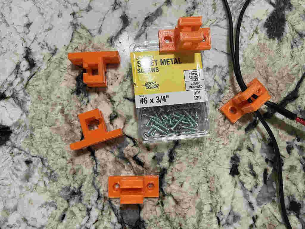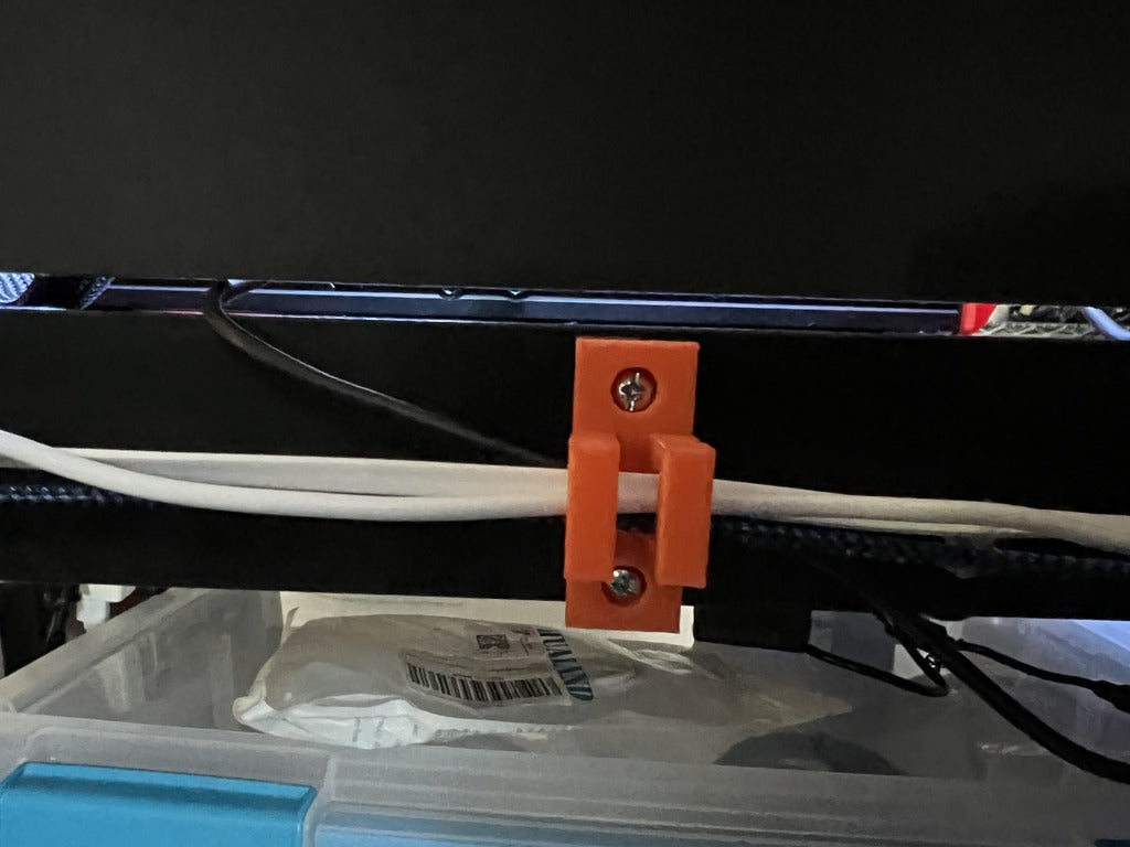Dette er en kabelklip til styring af kabler, der er dimensioneret til at passe på siden af en IKEA LACK bordplade eller ben. Den bidrager til at holde dine kabler organiserede og reducerer kabelrod ved dit arbejdsområde.