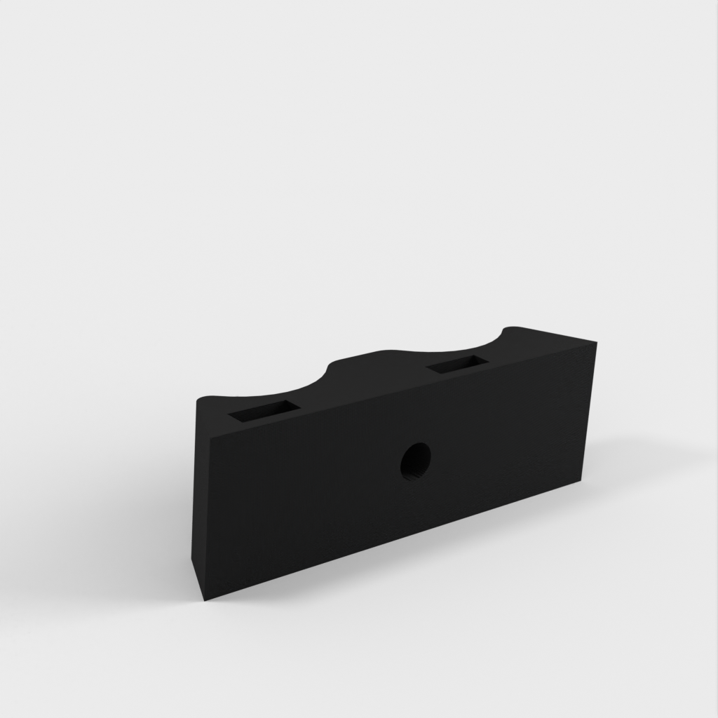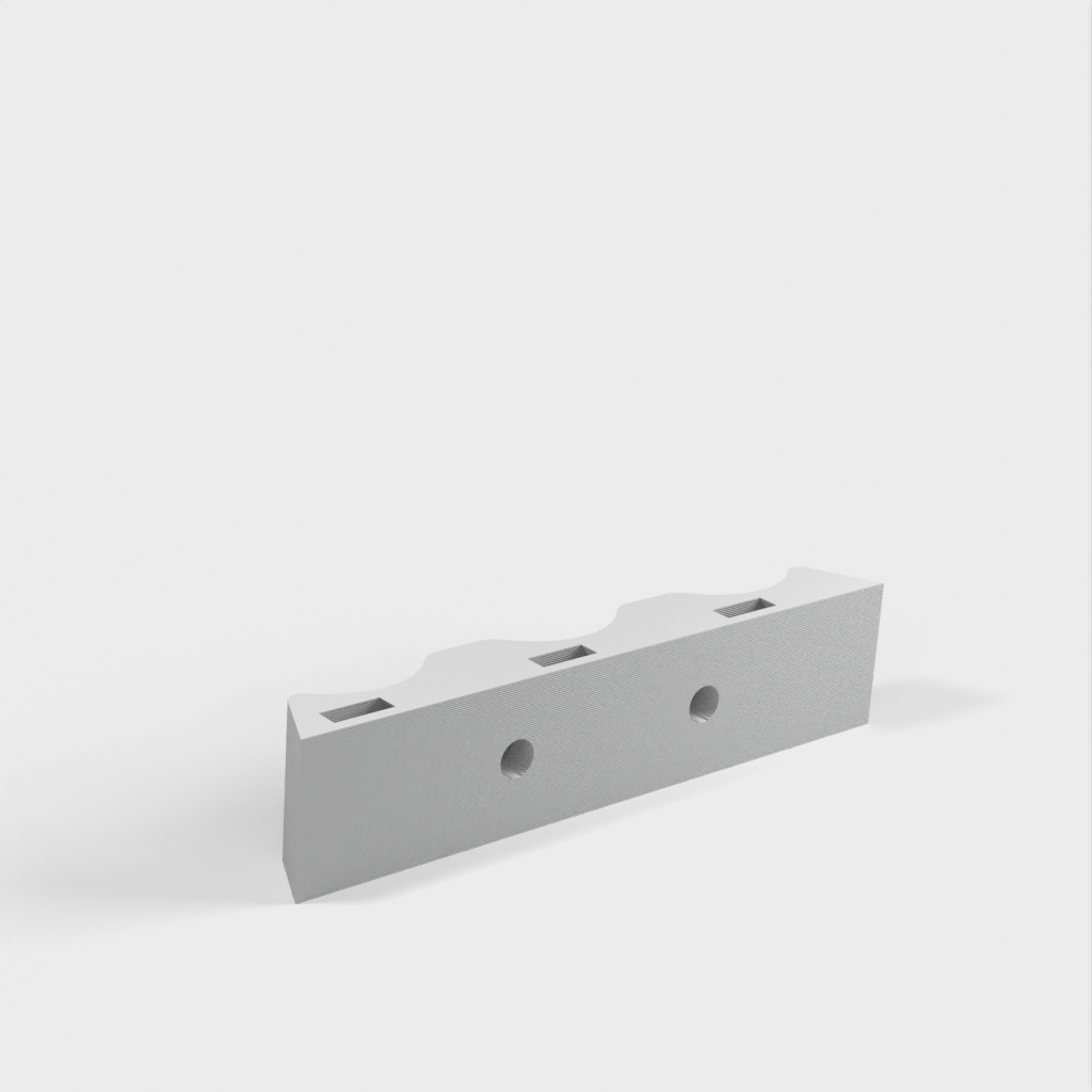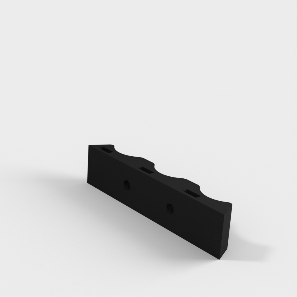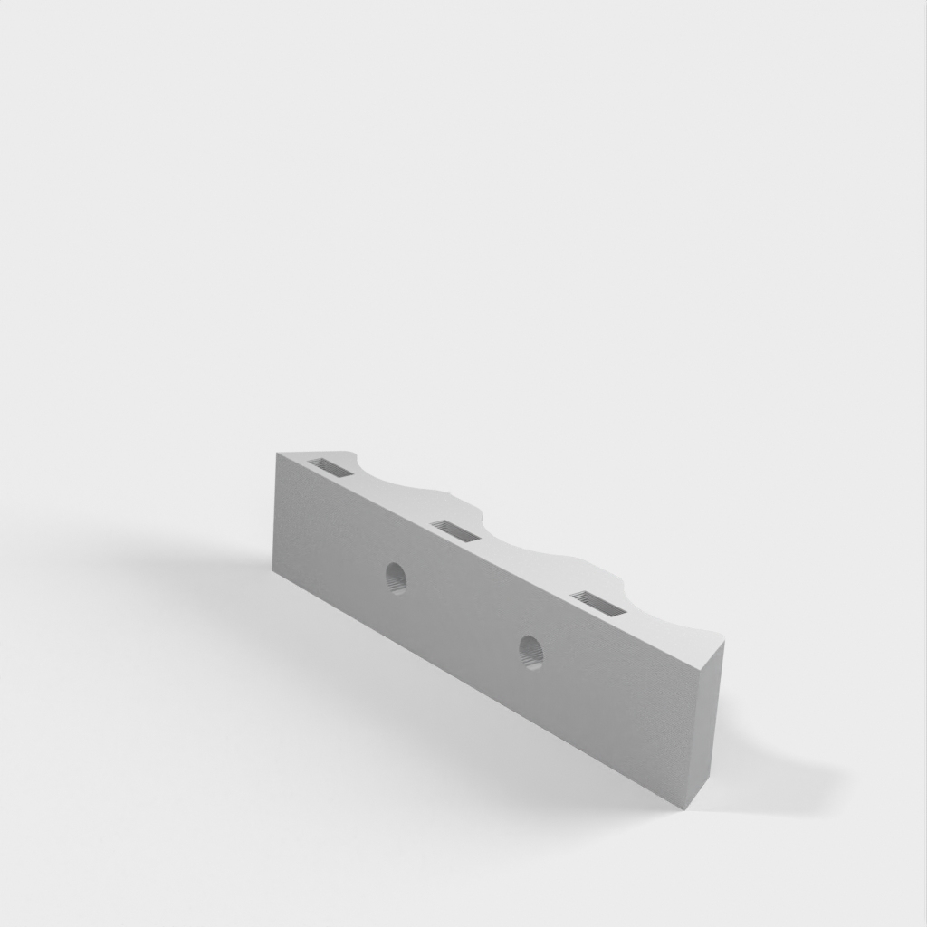 Denne kabelorganisator er designet til at holde 2, 3, eller 5 kabler på plads. Den kan fastgøres til enhver overflade med skruer eller klæbende strimler. For at organisere dine kabler i slots, skal du bruge kabelbånd, som vist på billedet.