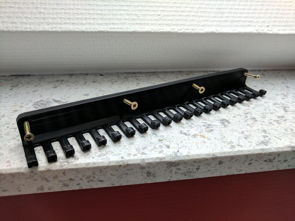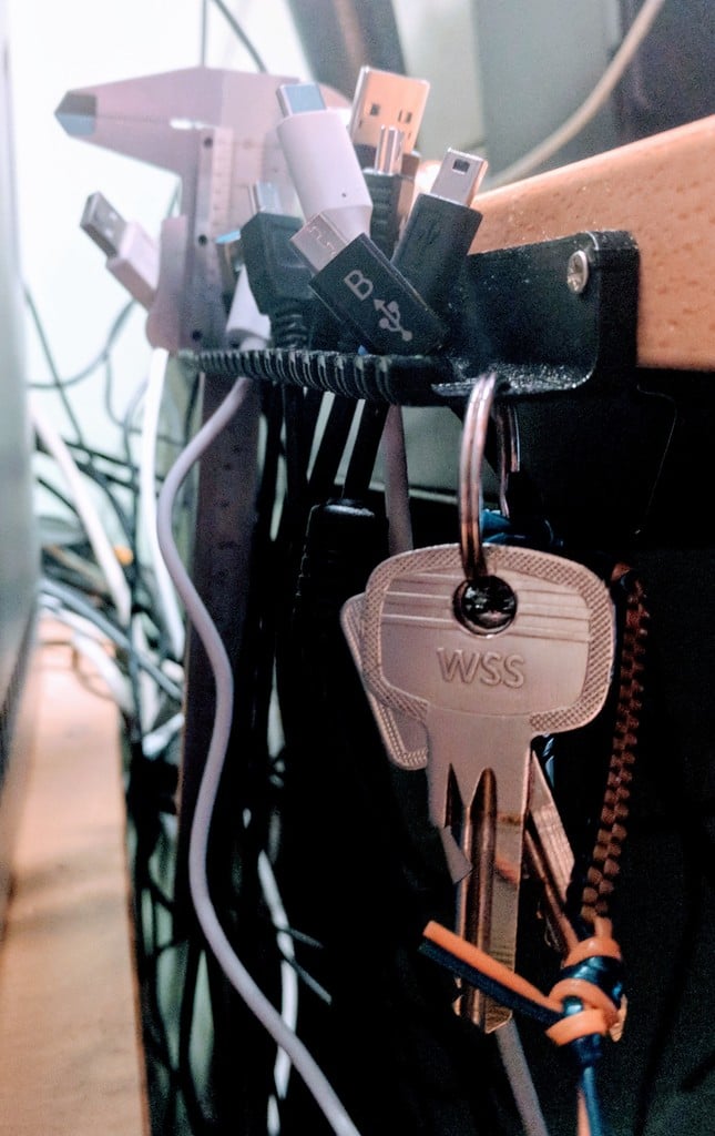 Et kabelholder til skrivebordet. Cable Management holderen tillader dig nemt at organisere og skjule ledninger for en mere ordentlig arbejdsstation. Den hjælper dig med at holde dit skrivebordsområde frit for rod og forbedrer din effektivitet.