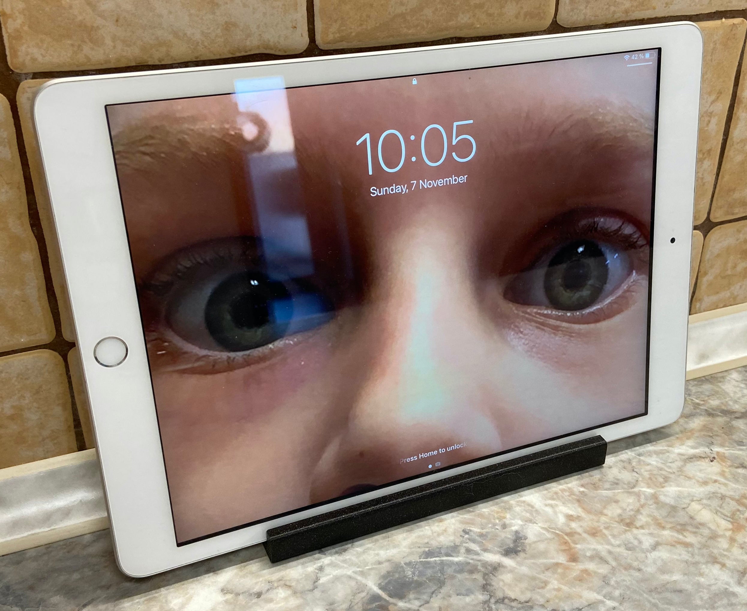 Dette er en iPad-holder, designet til at minimere pladsforbruget i køkkenet takket være sin høje hældning. Holderen kan printes uden understøttelse og er specielt designet til at være pladsbesparende. Den er ideel for dem, der gerne vil have deres iPad opbevaret sikkert og praktisk, mens de laver mad eller i andre sammenhænge, hvor det er nødvendigt at være håndfri.