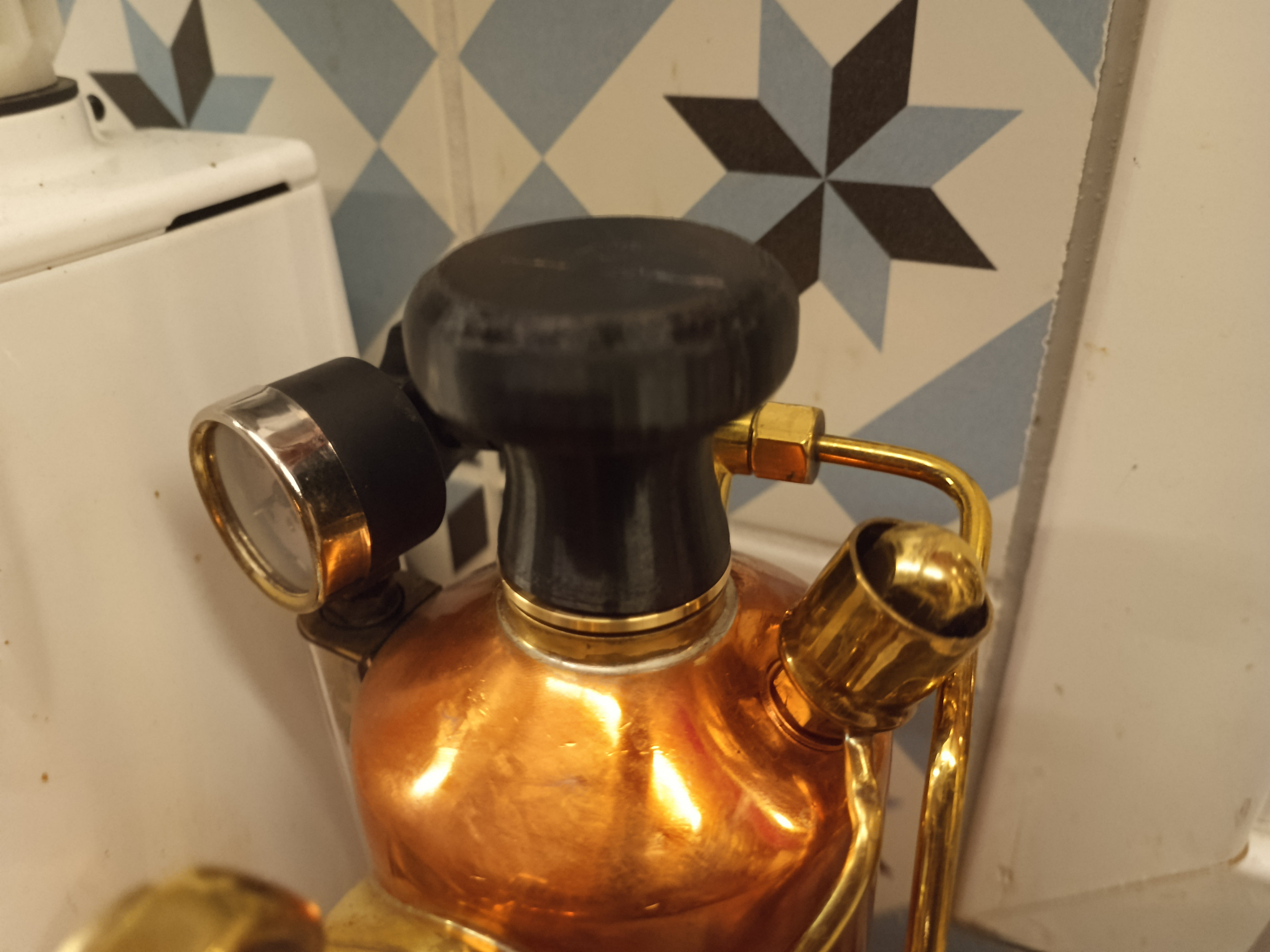 For at samle denne kedelhætte skal du anvende en messingbase (købes separat), der sikrer en solid og holdbar forbindelse. Akslen, som tåler de høje temperaturer på op til ca. 120°C i kedlen, er fremstillet til at modstå varmen og garantere lang levetid. Dens design muliggør en sikker fastgørelse med en M12 møtrik, og der er indbyggede funktioner, der forhindrer akslen i at rotere under brug. Kedelhætten passer til alle variationer af håndtag, hvilket giver fleksibilitet og nem installation.