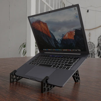 Simpel laptop/bærbar stander der passer til langt størstedelen af laptops. Den passer til både MacBook pro's samt MacBook Air. Den er lavet i et såkaldt honeycomb design og de 4 dele klikkes let sammen uden brug af skruer eller andet.