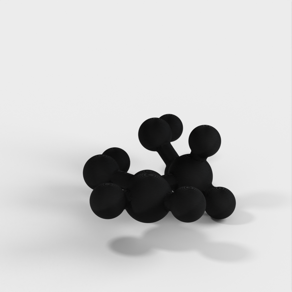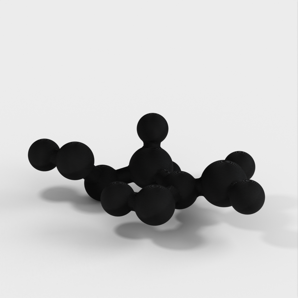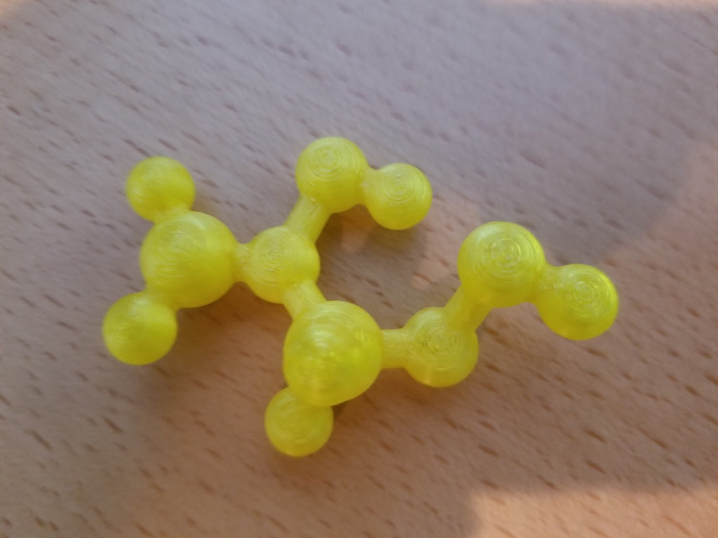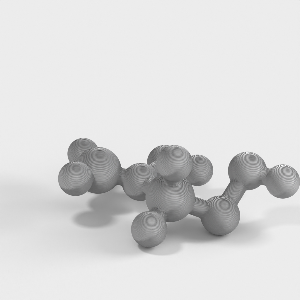 Dette er en molekylær model af Vinyl Acetate. Modellen bruges til at undervise børn i kemi, specifikt Polyvinyl Acetate (PVA), som er den hvide lim, der bruges til at lave slime i folkeskolen. Denne model giver et visuelt billede af, hvad der er i slim.