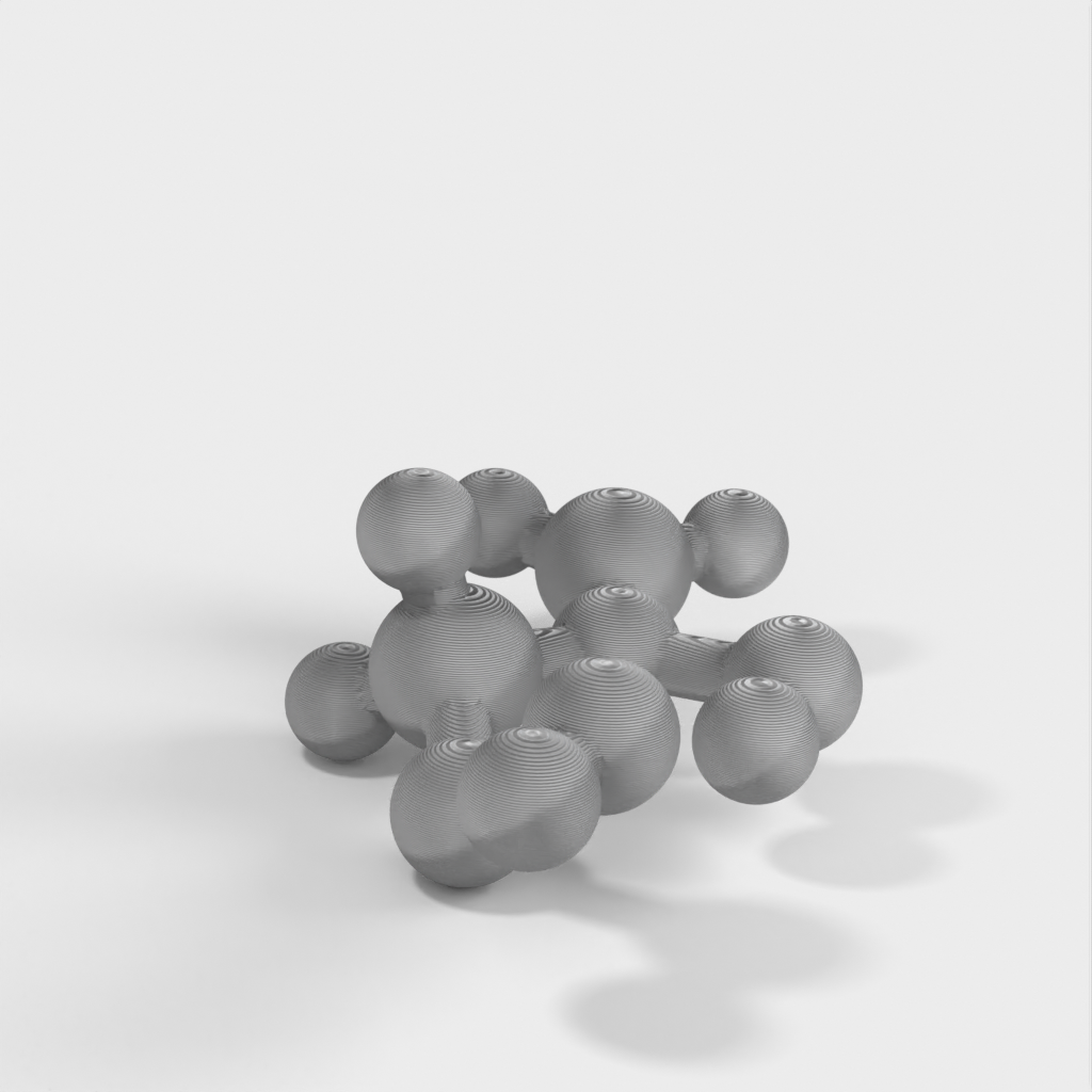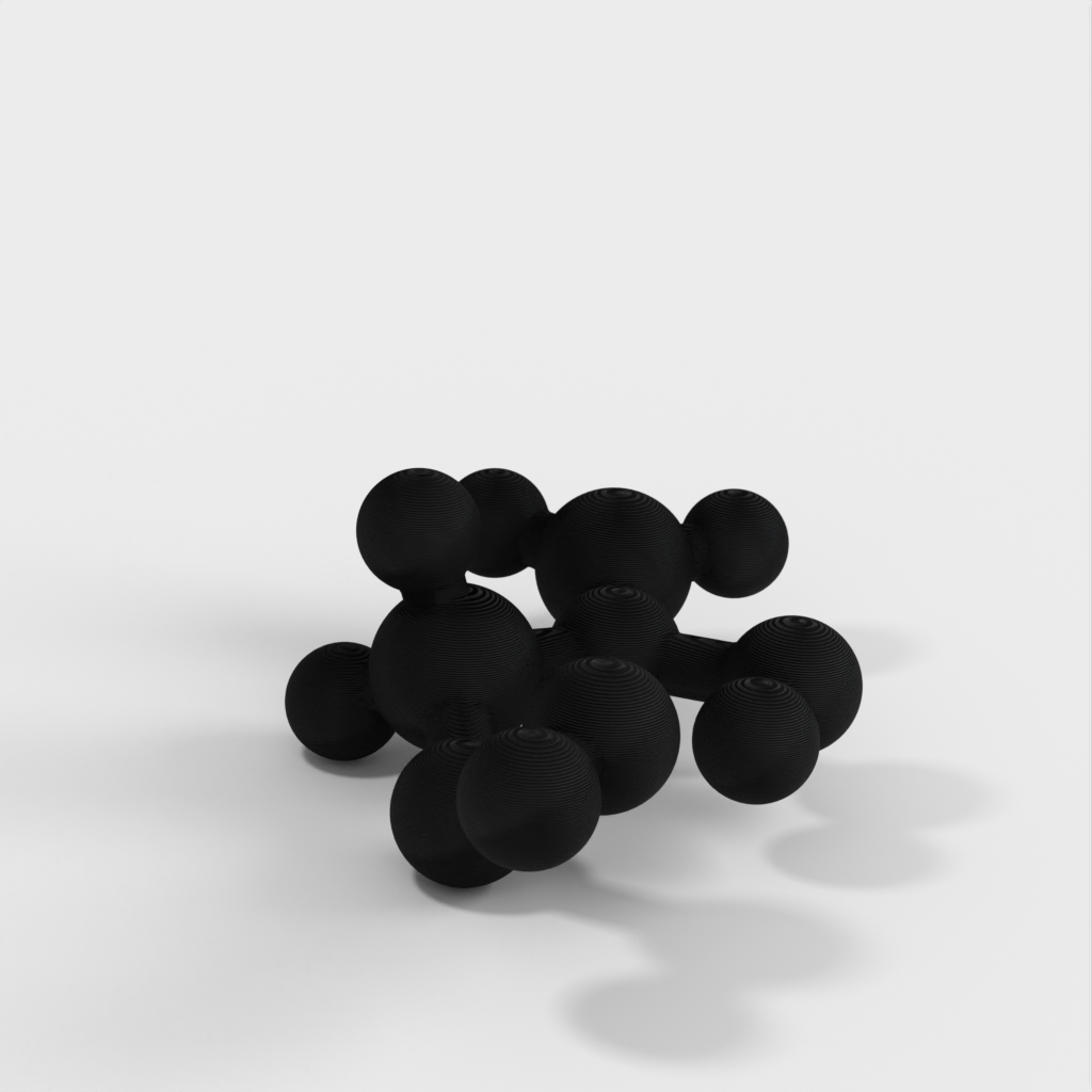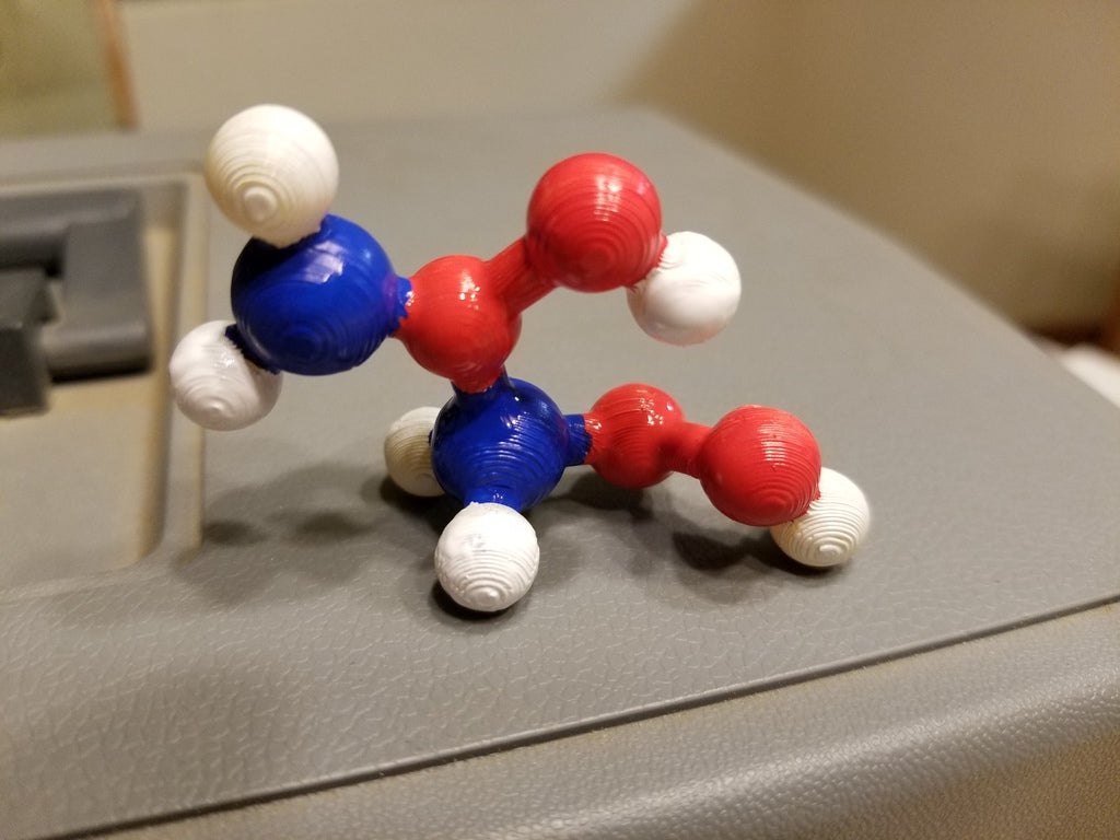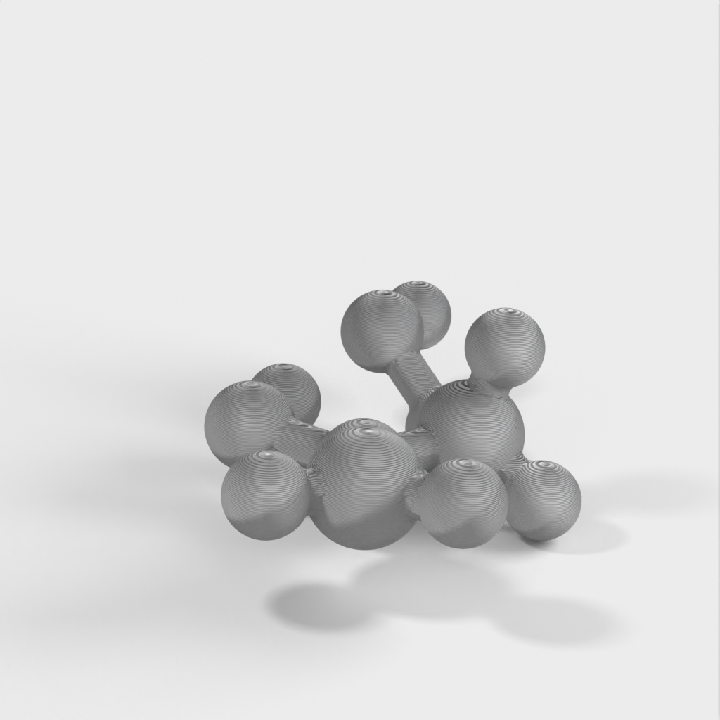 Dette er en molekylær model af Vinyl Acetate. Modellen bruges til at undervise børn i kemi, specifikt Polyvinyl Acetate (PVA), som er den hvide lim, der bruges til at lave slime i folkeskolen. Denne model giver et visuelt billede af, hvad der er i slim.