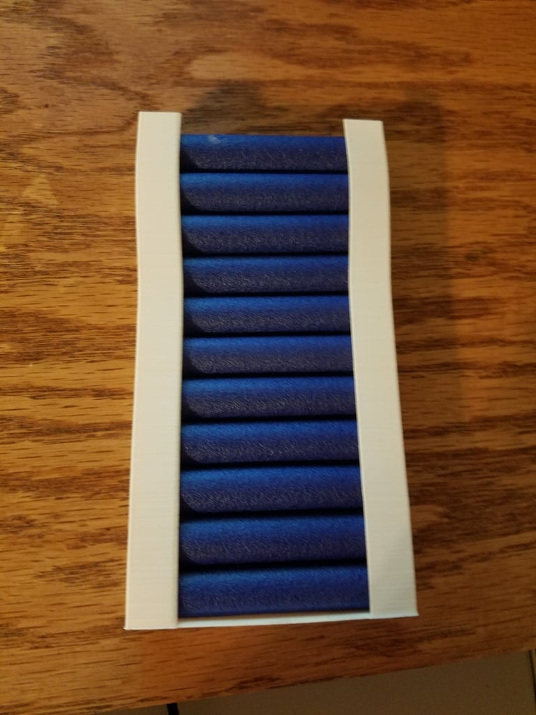 Optimer hastigheden og sjovet i dine Nerf-kampe med Nerf Dart Speed Loader til Standard Magasiner. Denne speed loader gør det muligt for dig at genopfylde standard Nerf magasiner med op til 6, 10 eller 12 skiver på én gang. Loaderen er kompatibel med større klipsystemer, der bruger Nerf-angrebskiver eller lignende, og kan tilpasses til forskellige klipsstørrelser ved hjælp af den medfølgende CAD-fil. Monter Nerf Dart Speed Loader til Standard Magasiner og gør din næste kamp på slagmarken intens og underholdende.