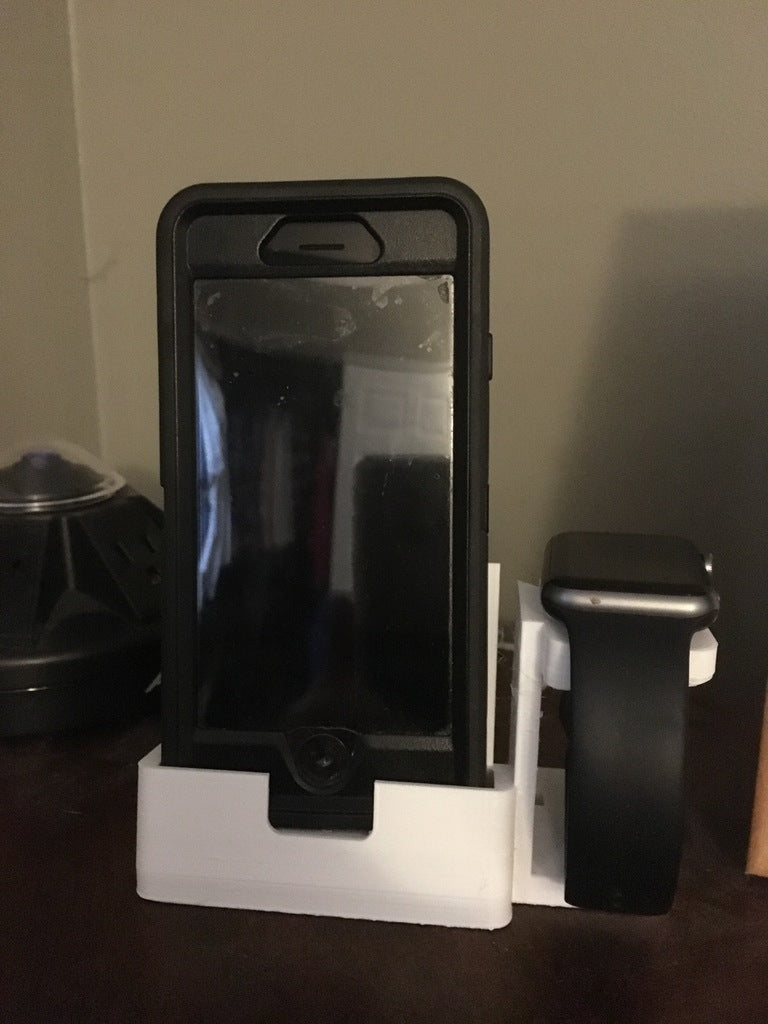 Denne praktiske opladningsstation er designet til at give en organiseret løsning for din iPhone 6 og dit Apple Watch. Den passer specifikt til en iPhone 6, selv når den er udstyret med et robust Otterbox cover, og tilbyder samtidig en dedikeret plads til dit Apple Watch.