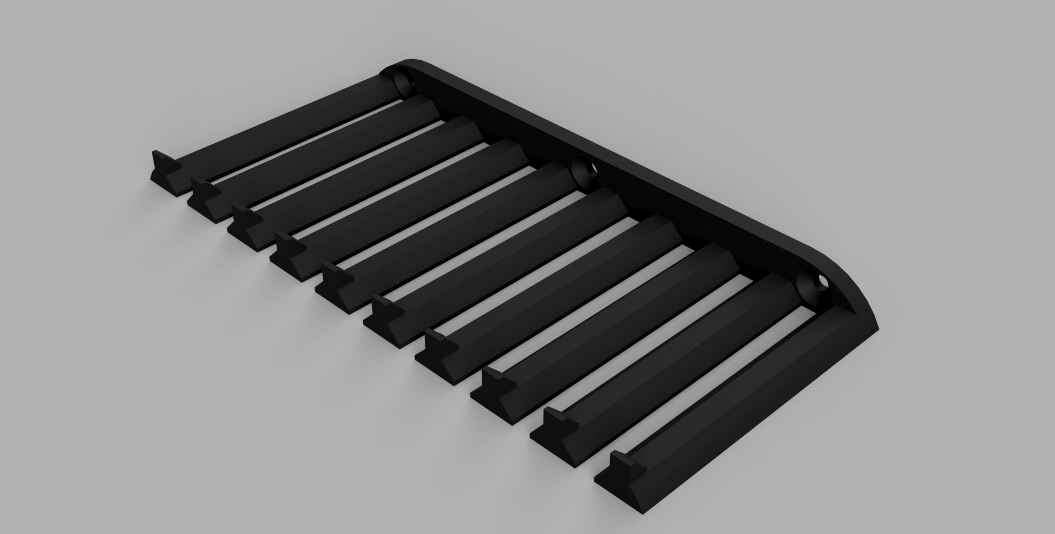 Dette er en parametrisk kabelorganisator designet til at organisere dine kabler effektivt. Med 10 arme giver det plads til 9 kabler med 4mm afstand mellem hver. Den nuværende design er forbedret med et lavere bagmonteringshøjde sammenlignet med version 1. Skruerne er konstrueret til at være lette at installere med undersænkede M4 skruer. Det er perfekt til ethvert laboratorium eller arbejdsplads, der kræver kabelorganisation.