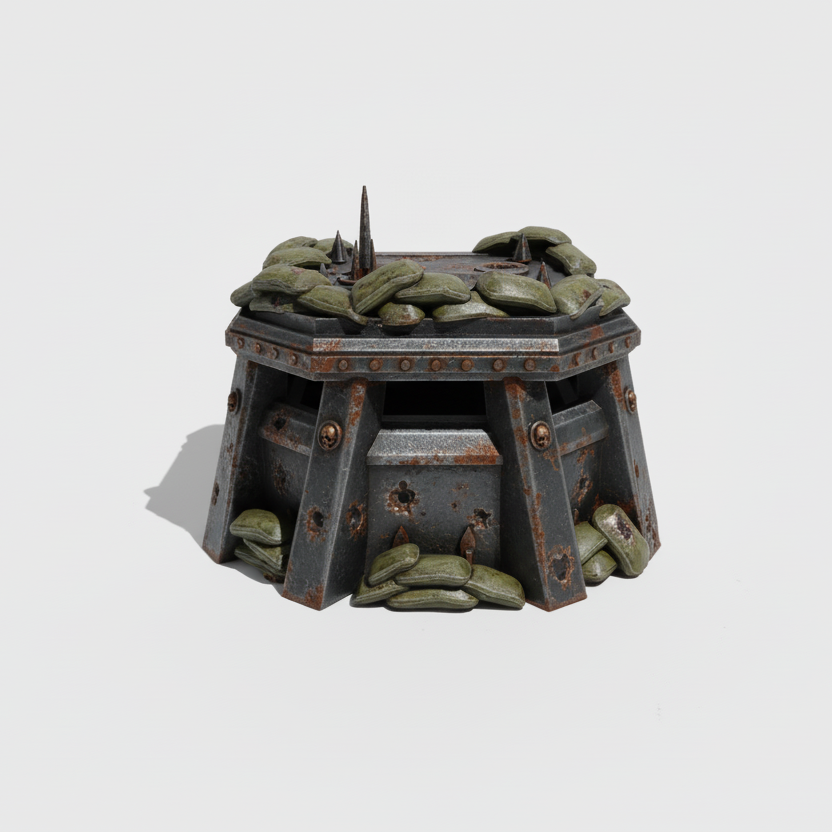 Denne Pillbox med Sandposer er designet til grimdark tabletop wargames og tilbyder strategisk dækning og beskyttelse til dine enheder. Den tilføjer realisme og visuel autenticitet til dine slagscenarier, hvilket forbedrer dybden i dit gameplay.