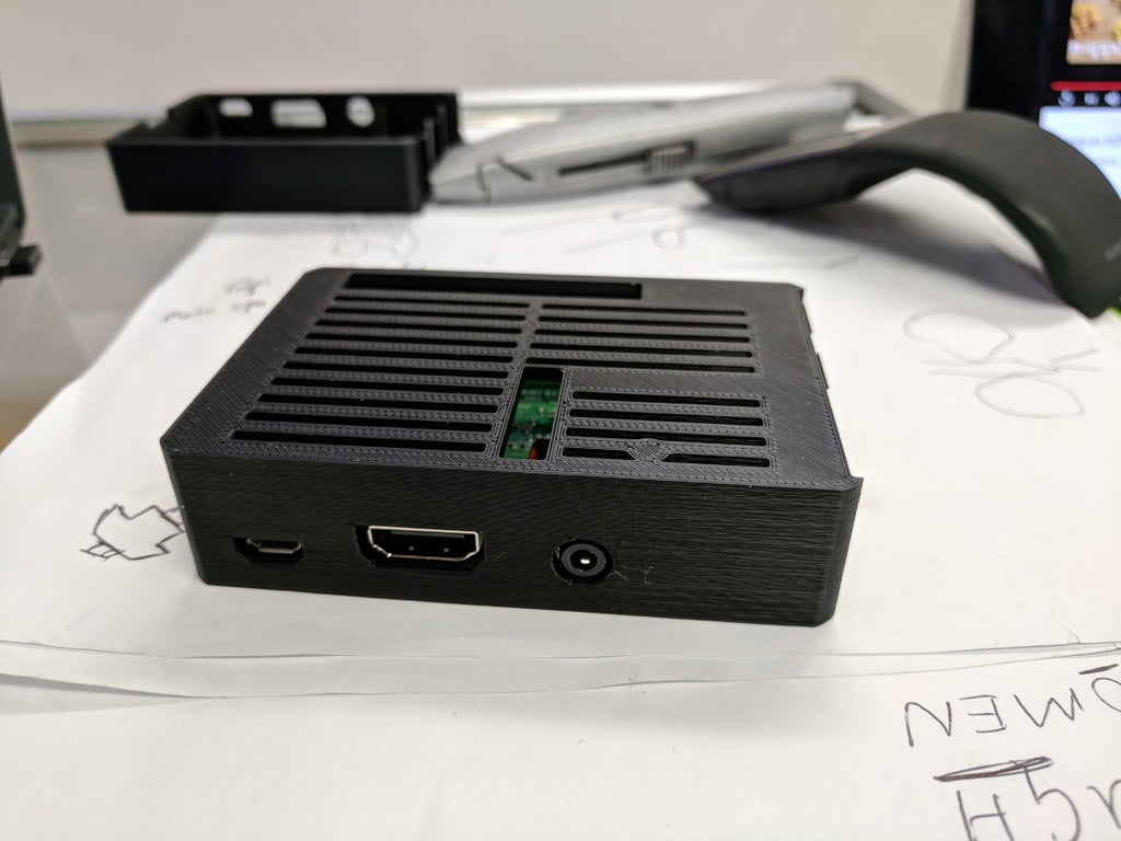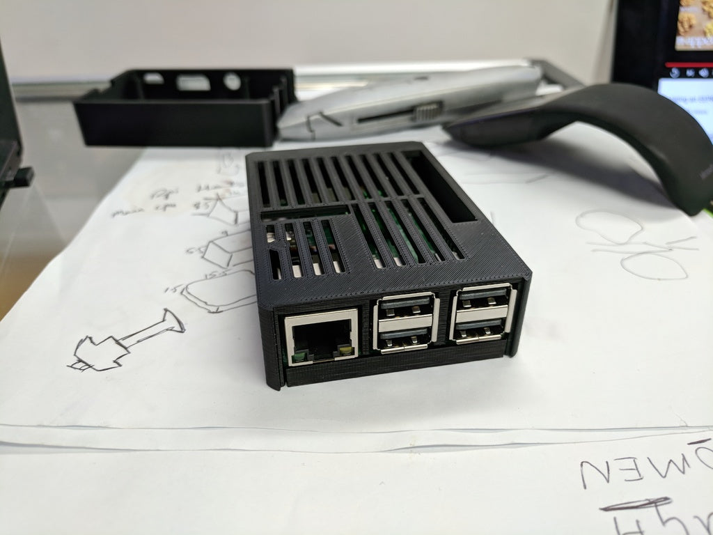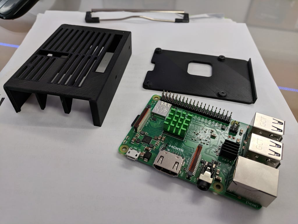 Dette er en kabinet til Raspberry Pi 3 B+, der passer perfekt med ekstra køleelementer. Kabinettet tillader let adgang til kamera og GPIO headers, og yderligere rum for de ekstra køleelementer.